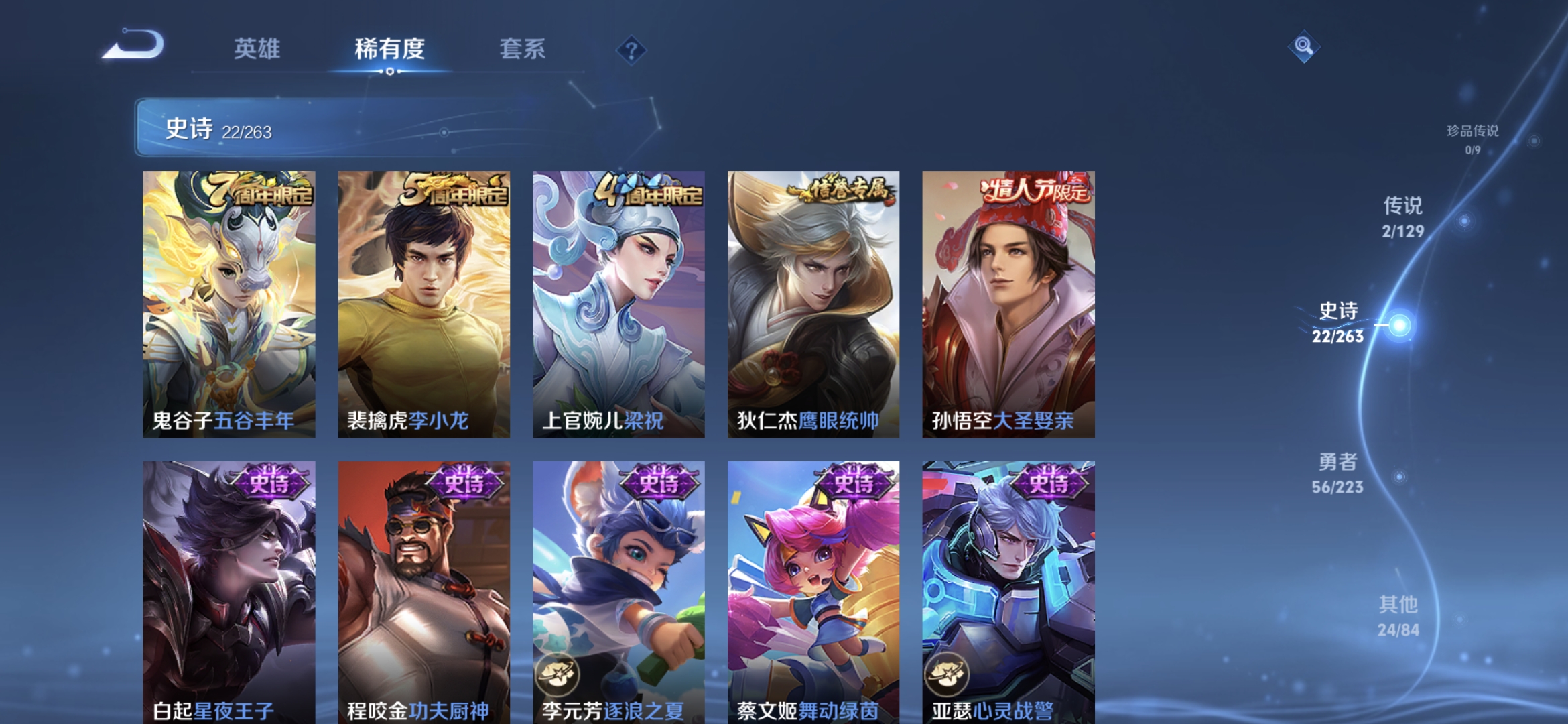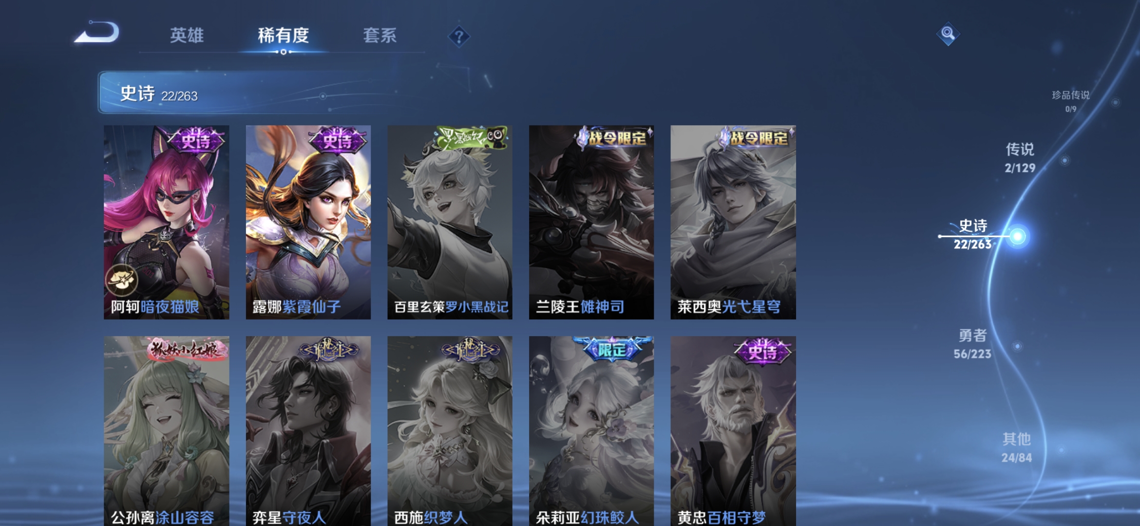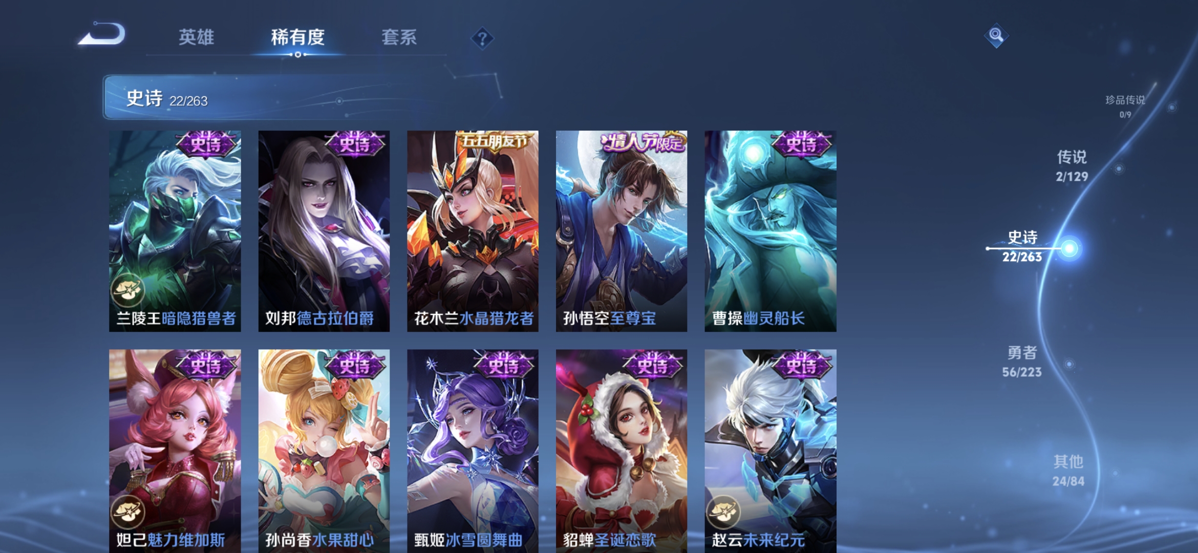 贵族等级:v4皮肤数:104情人节限定2 传说品质2 英雄数:116