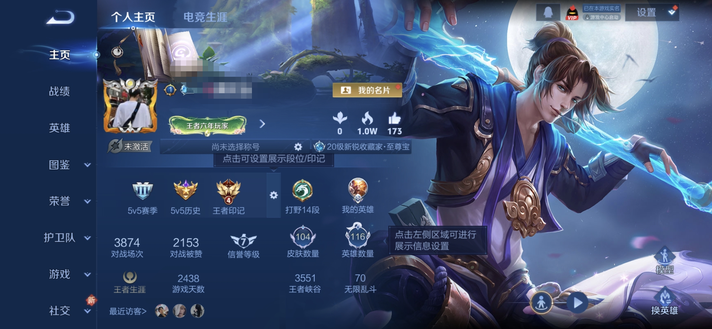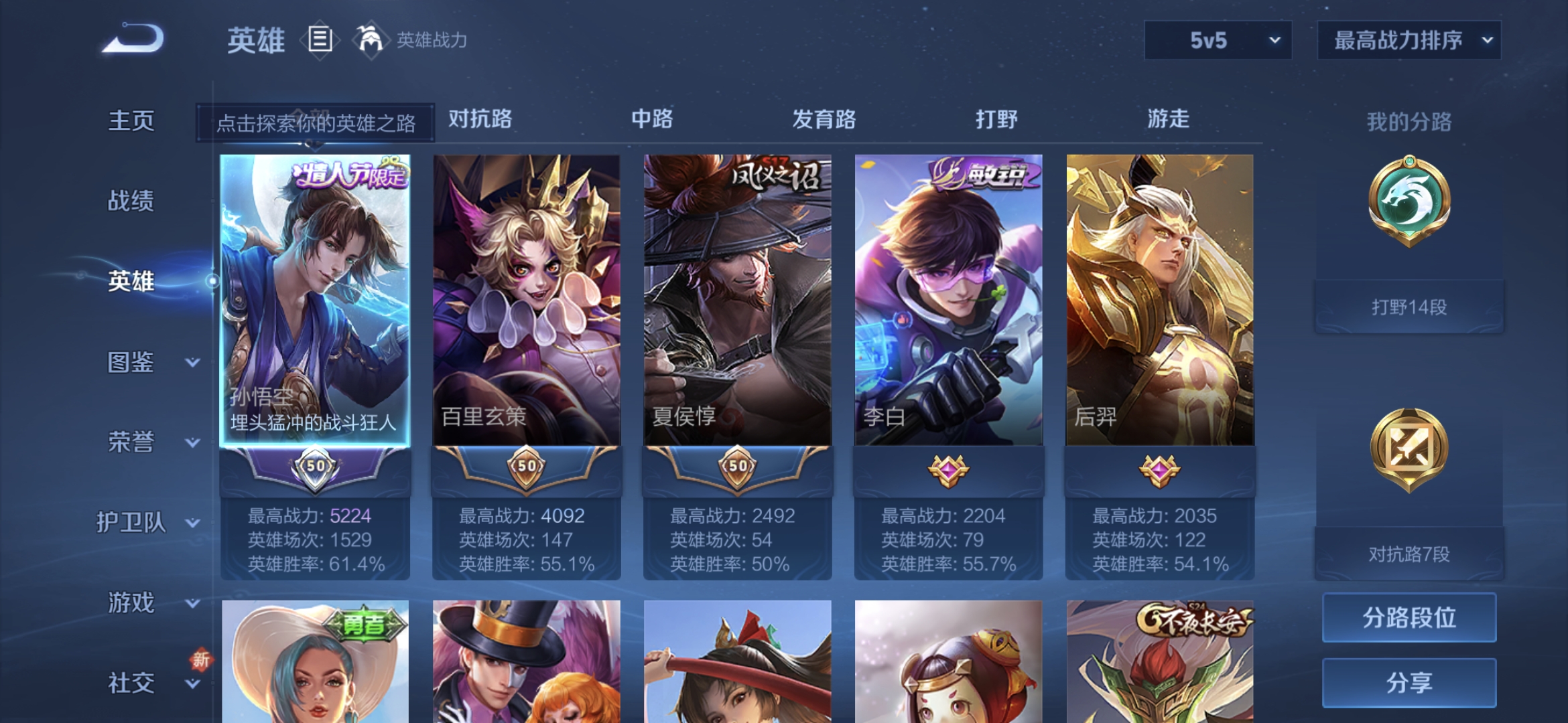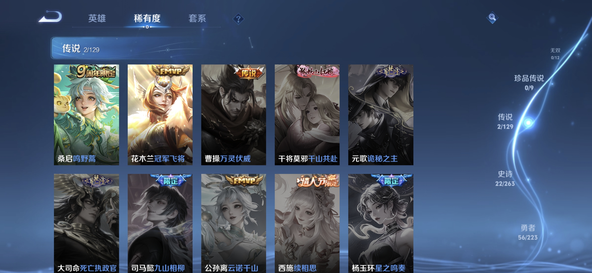 贵族等级:v4皮肤数:104情人节限定2 传说品质2 英雄数:116
