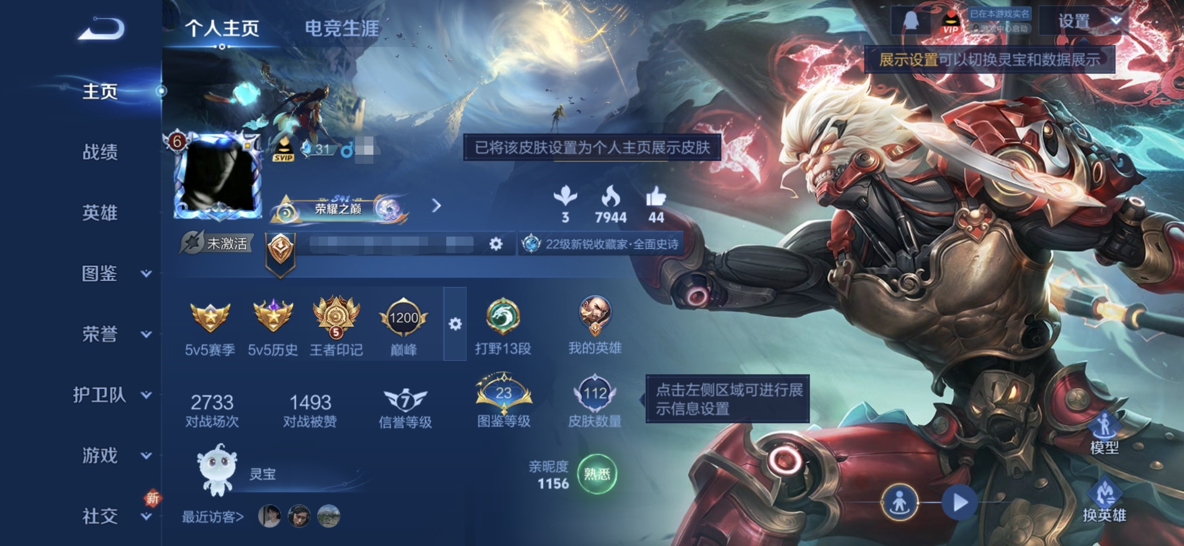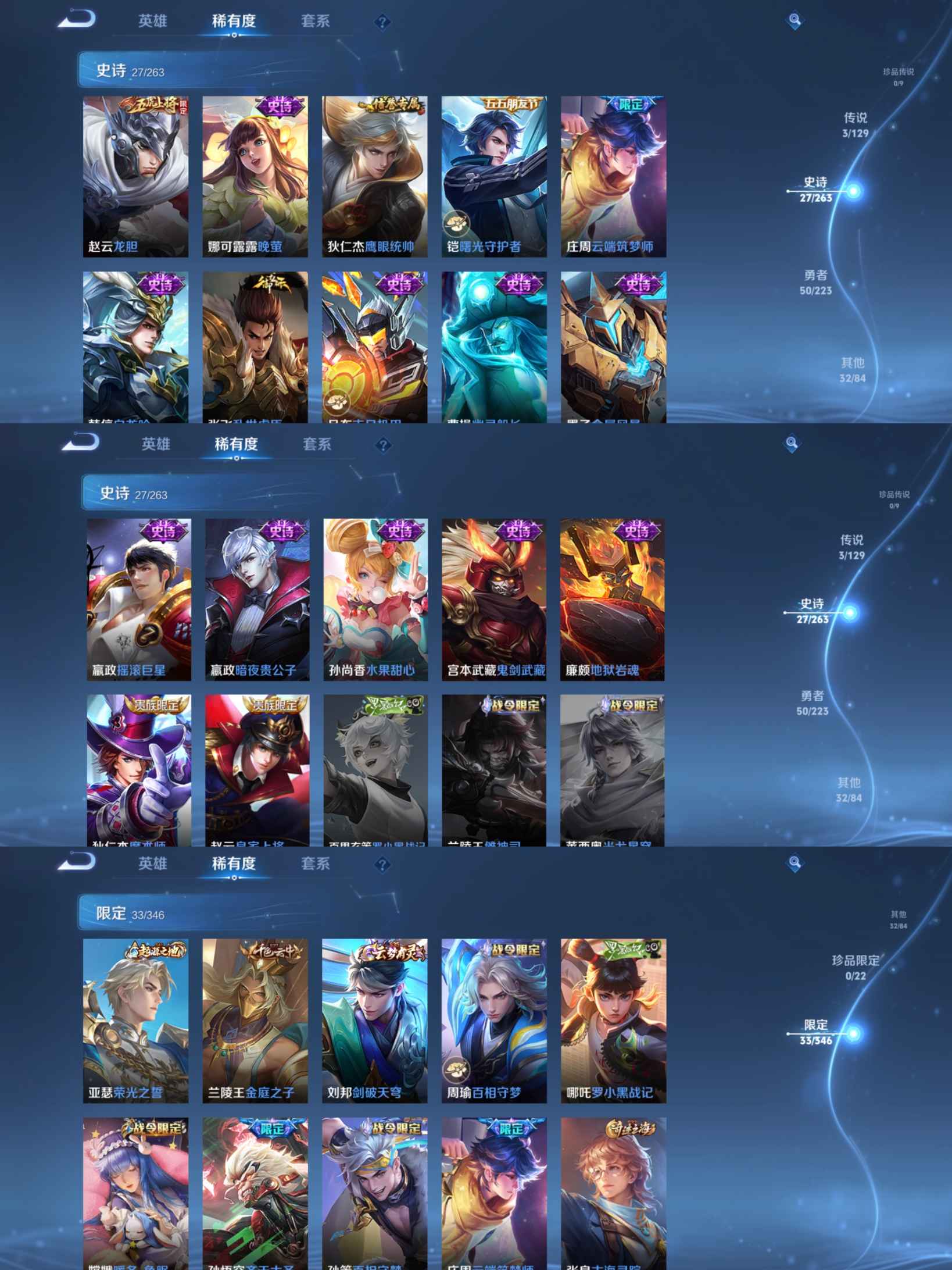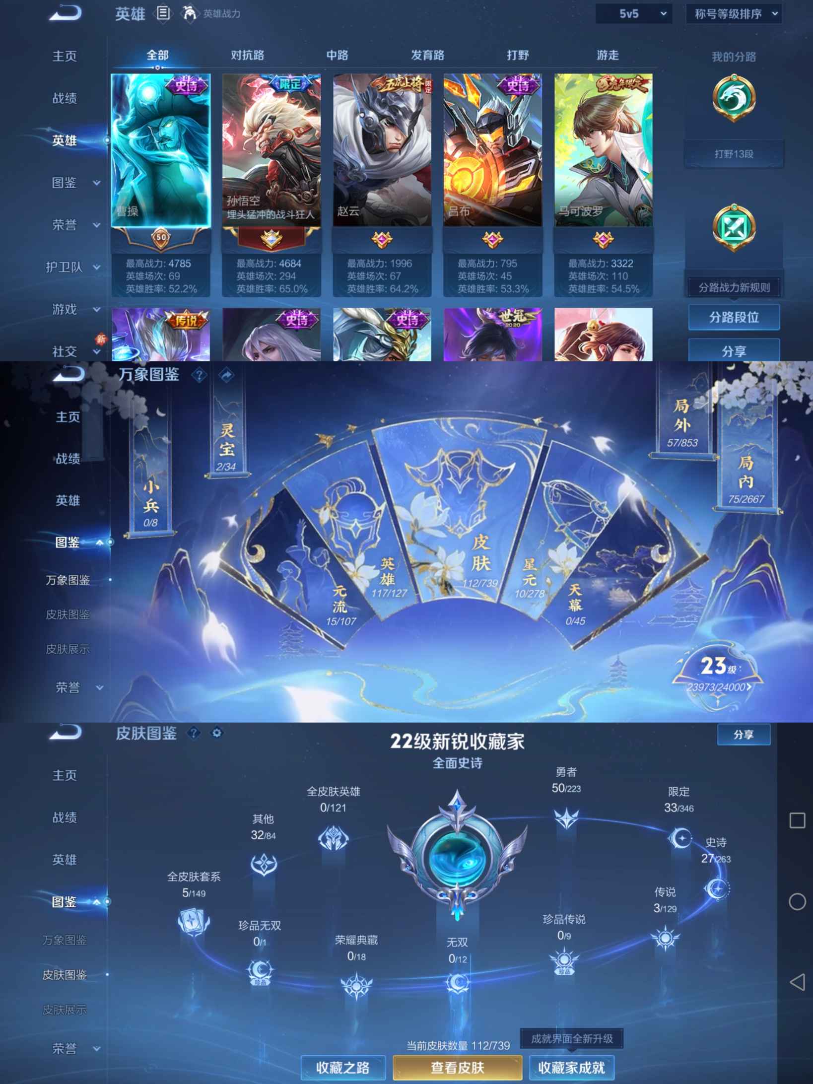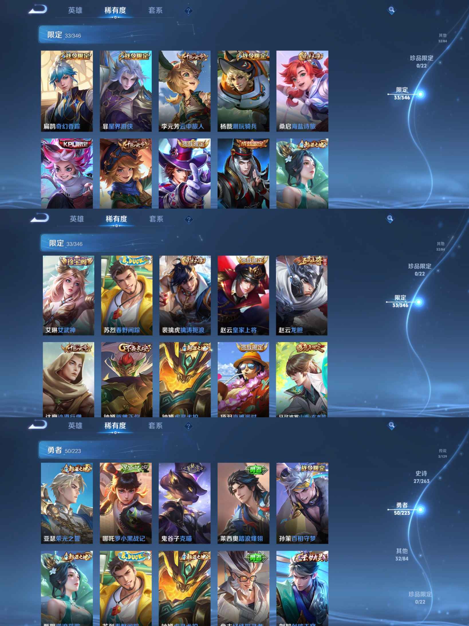 贵族等级:v5皮肤数:112生肖限定1 传说品质3 英雄数:117