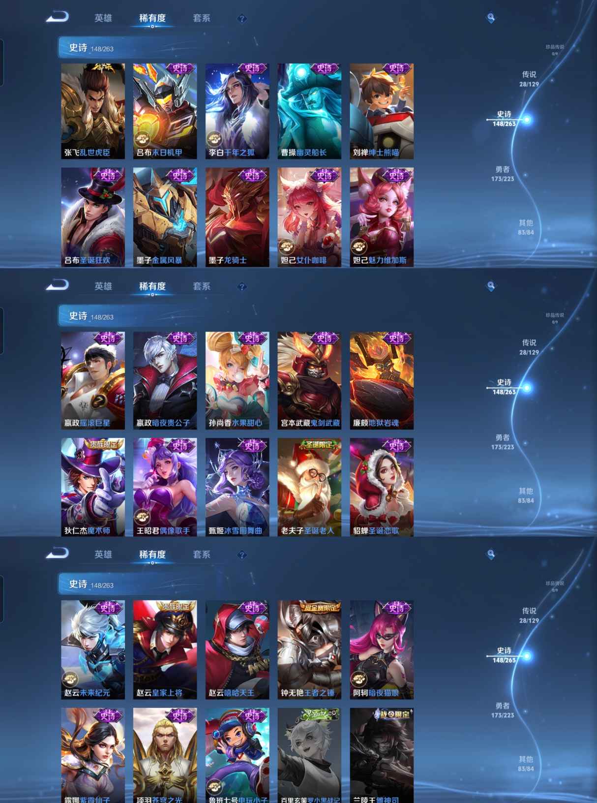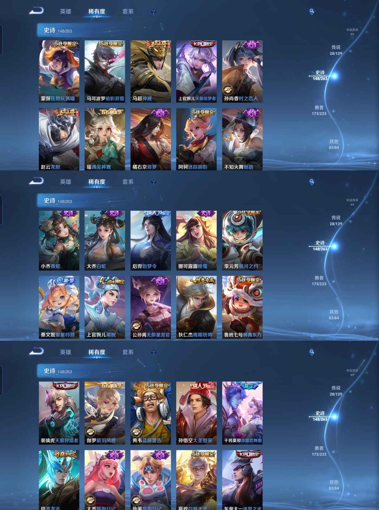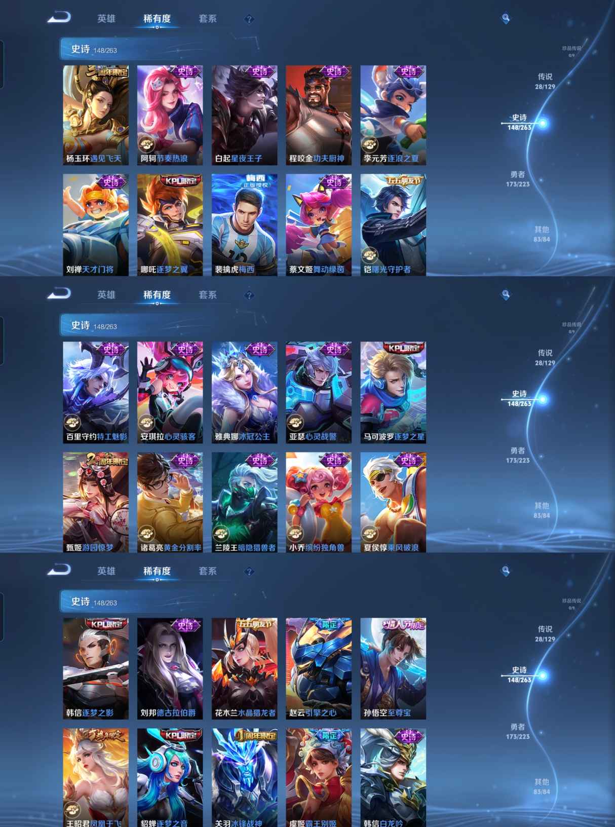 传说品质_后羿_黄金射手座传说品质_张良_黄金白羊座传说品质_艾琳_觅芳踪传说品质_澜_逐花归海传说品质_孙悟空_地狱火传说品质_李白_凤求凰传说品质_武则天_海洋之心传说品质_干将莫邪_千山共赴传说品质_宫本武藏_地狱之眼传说品质_西施_游龙清影传说品质_花木兰_冠军飞将传说品质_镜_炽阳神光传说品质_貂蝉_仲夏夜之梦传说品质_李信_一念神魔传说品质_孙尚香_末日机甲传说品质_曜_云鹰飞将传说品质_曜_山海·苍雷引传说品质_梦奇_胖达荣荣传说品质_孙策_末日机甲传说品质_孙策_乘龙·淬吴钩传说品质_达摩_黄金狮子座传说品质_狄仁杰_超时空战士传说品质_露娜_霜月吟传说品质_鲁班七号_寅虎·瑞焰传说品质_虞姬_云霓雀翎传说品质_虞姬_启明星使传说品质_百里玄策_白虎志传说品质_裴擒虎_寅虎·赤拳