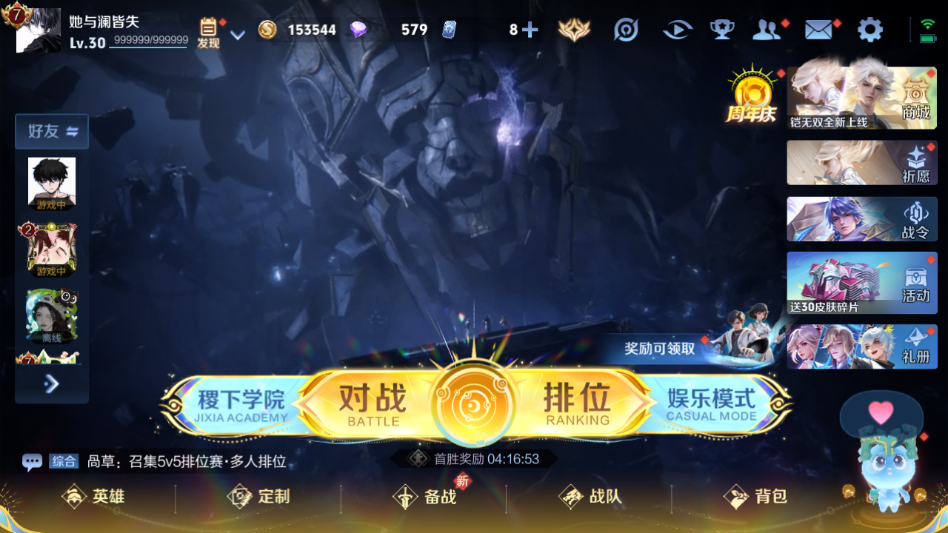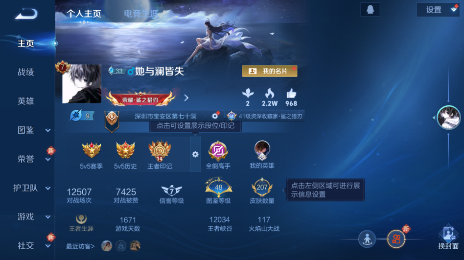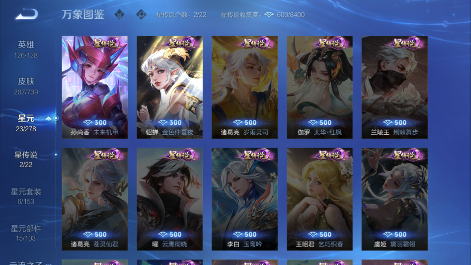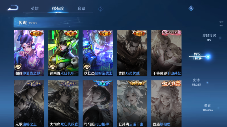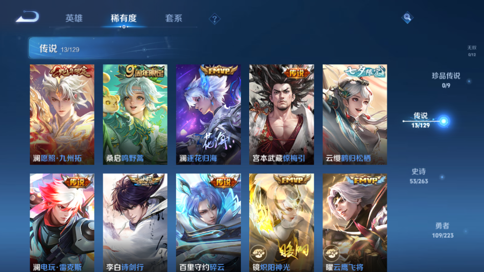 贵族等级:v7皮肤数:207传说品质13 生肖限定1 英雄数:126