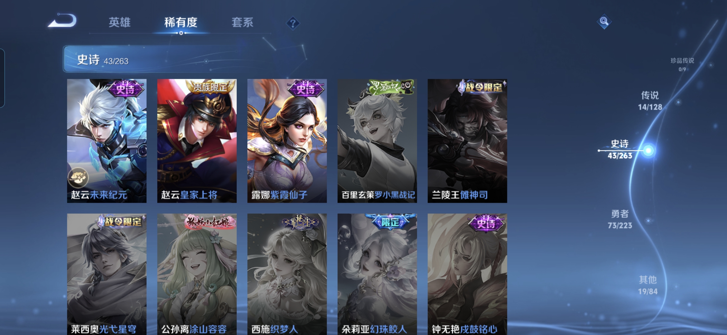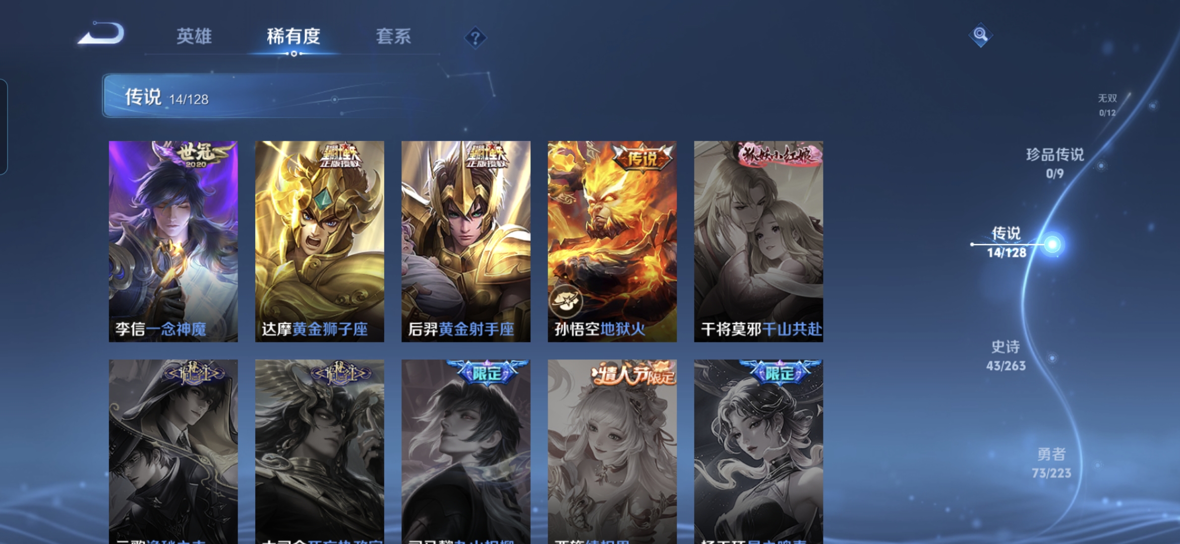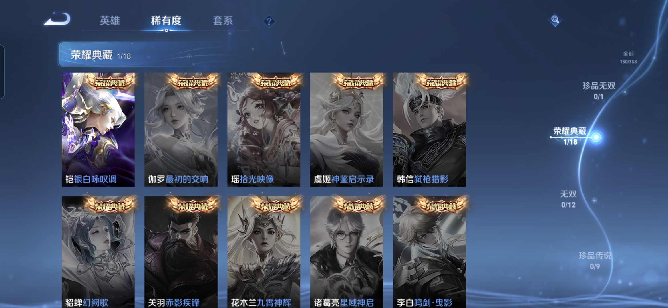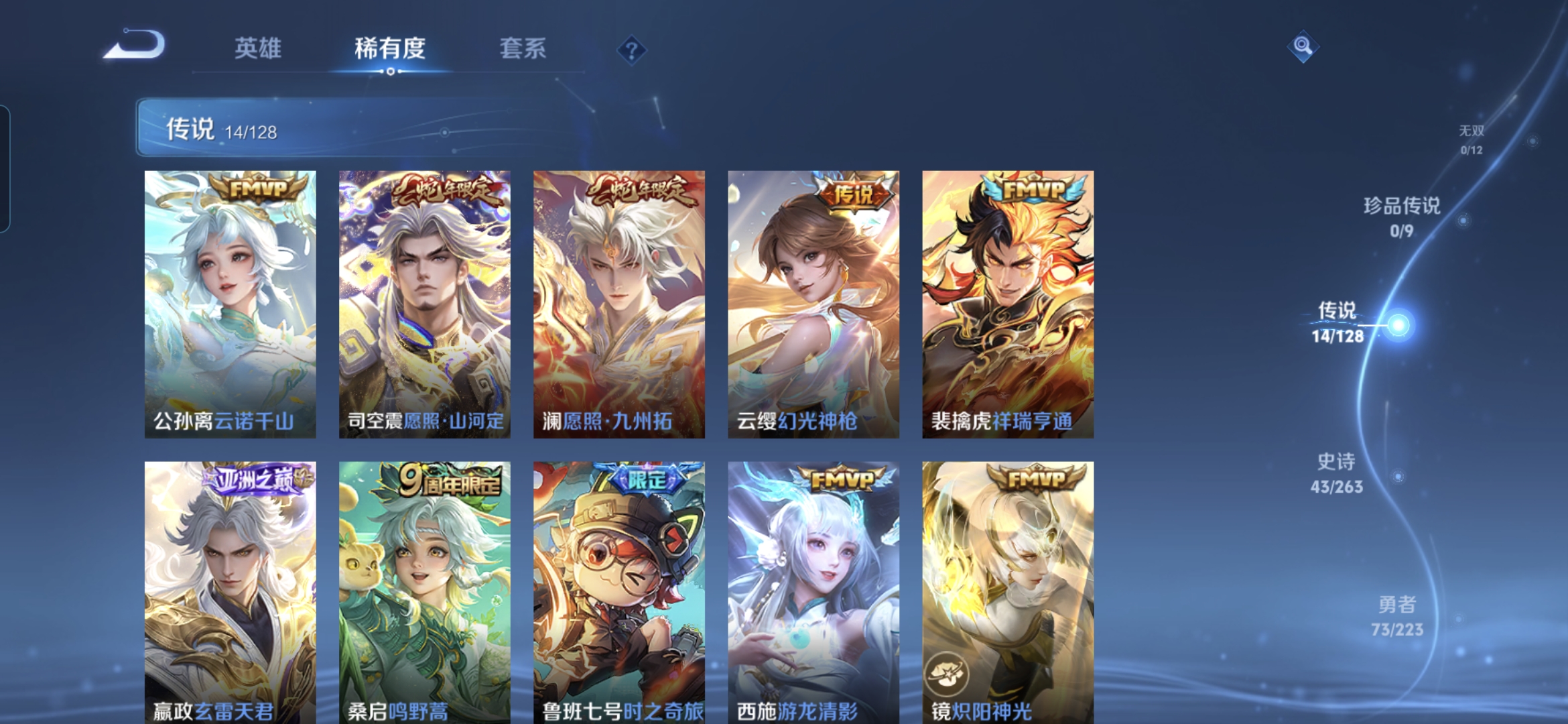 贵族等级:v7皮肤数:150传说品质14 生肖限定3 荣耀典藏1 英雄数:124