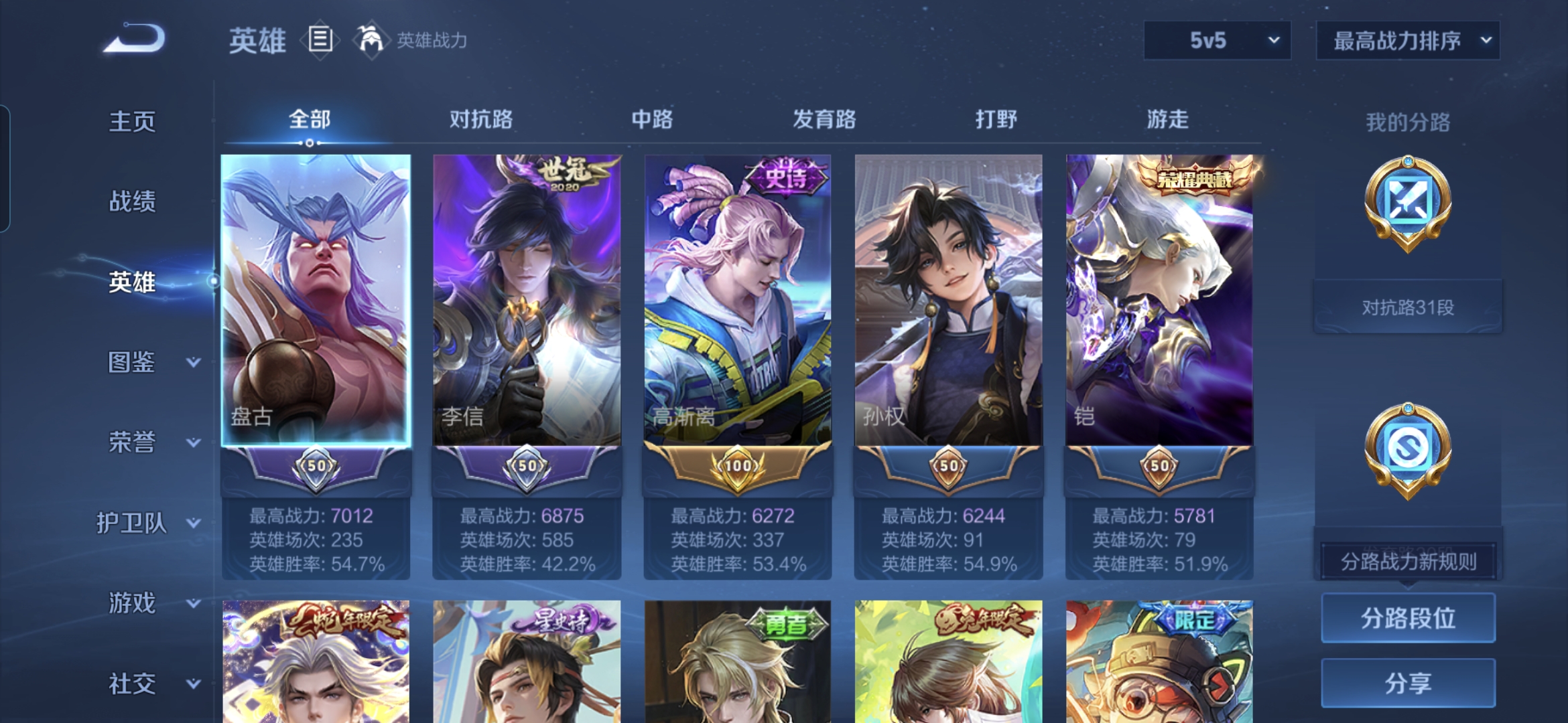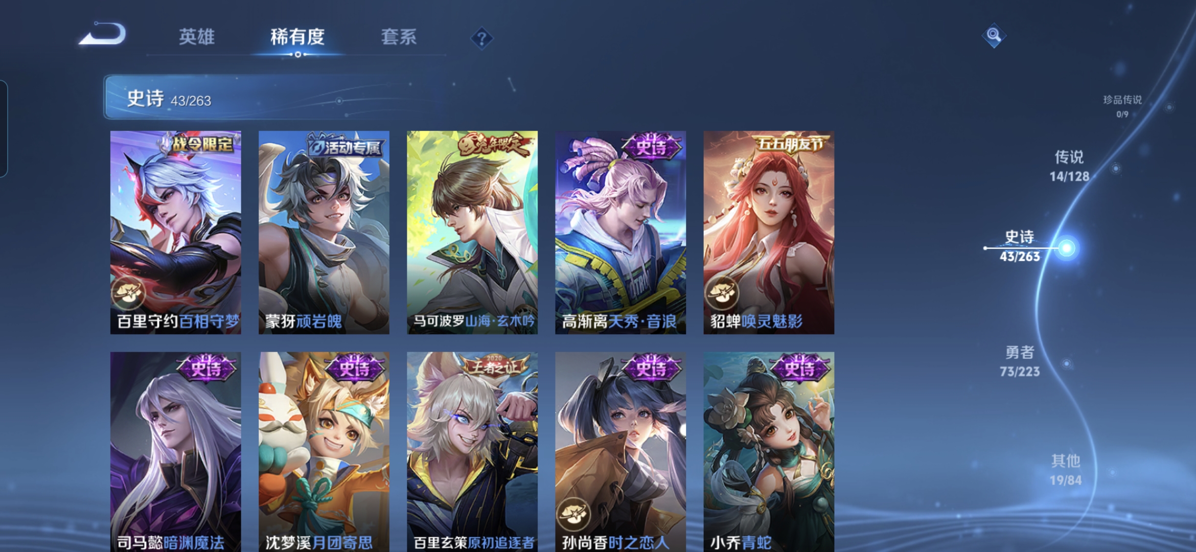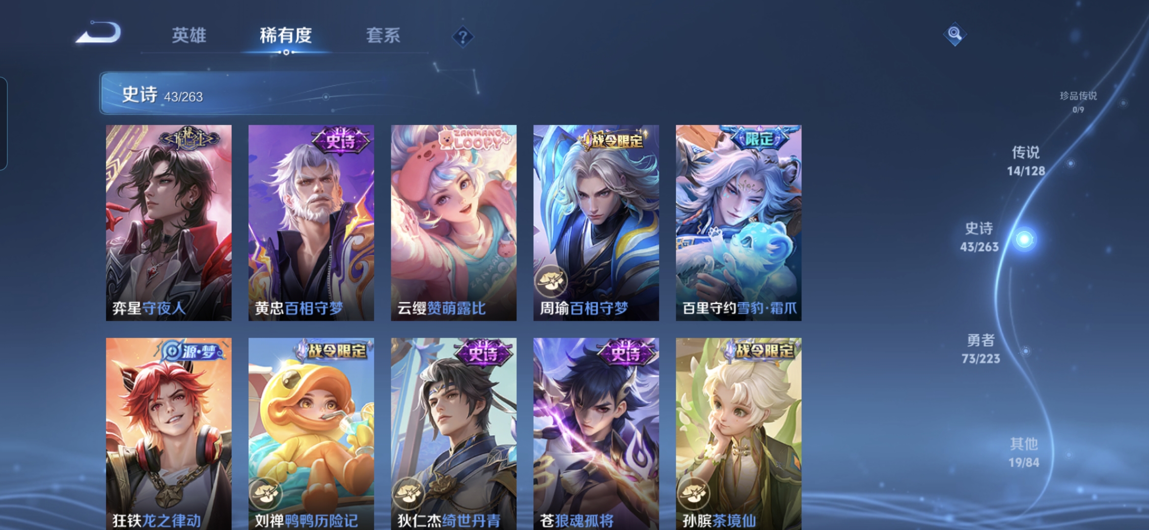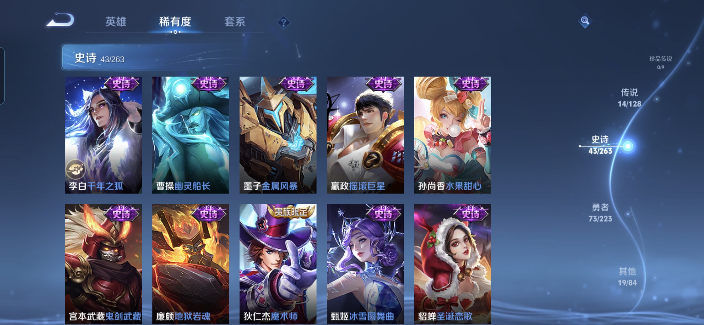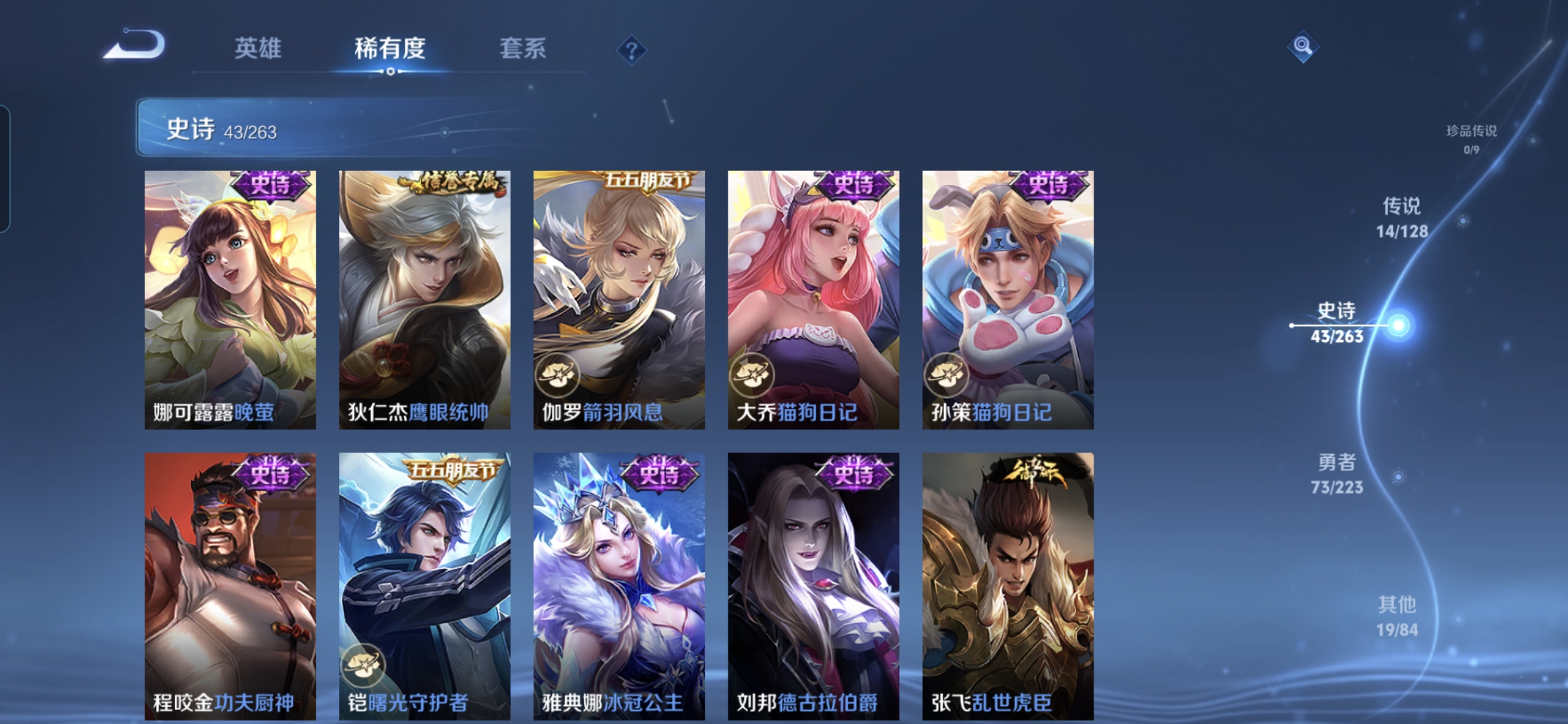 贵族等级:v7皮肤数:150传说品质14 生肖限定3 荣耀典藏1 英雄数:124