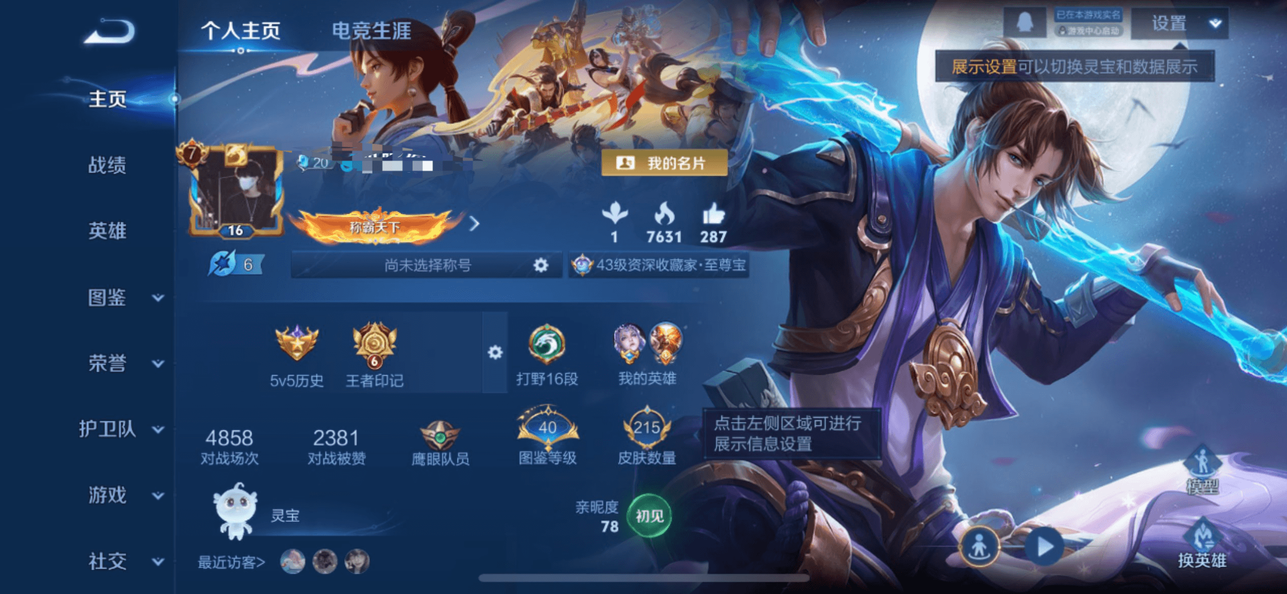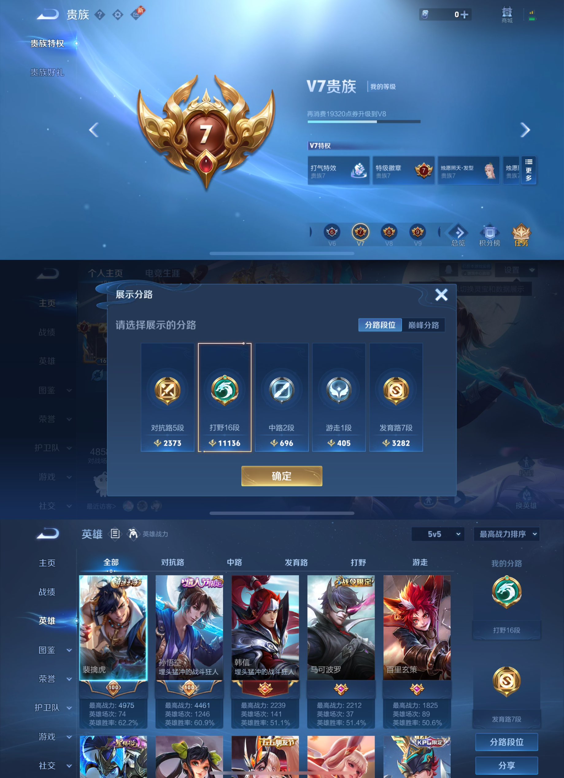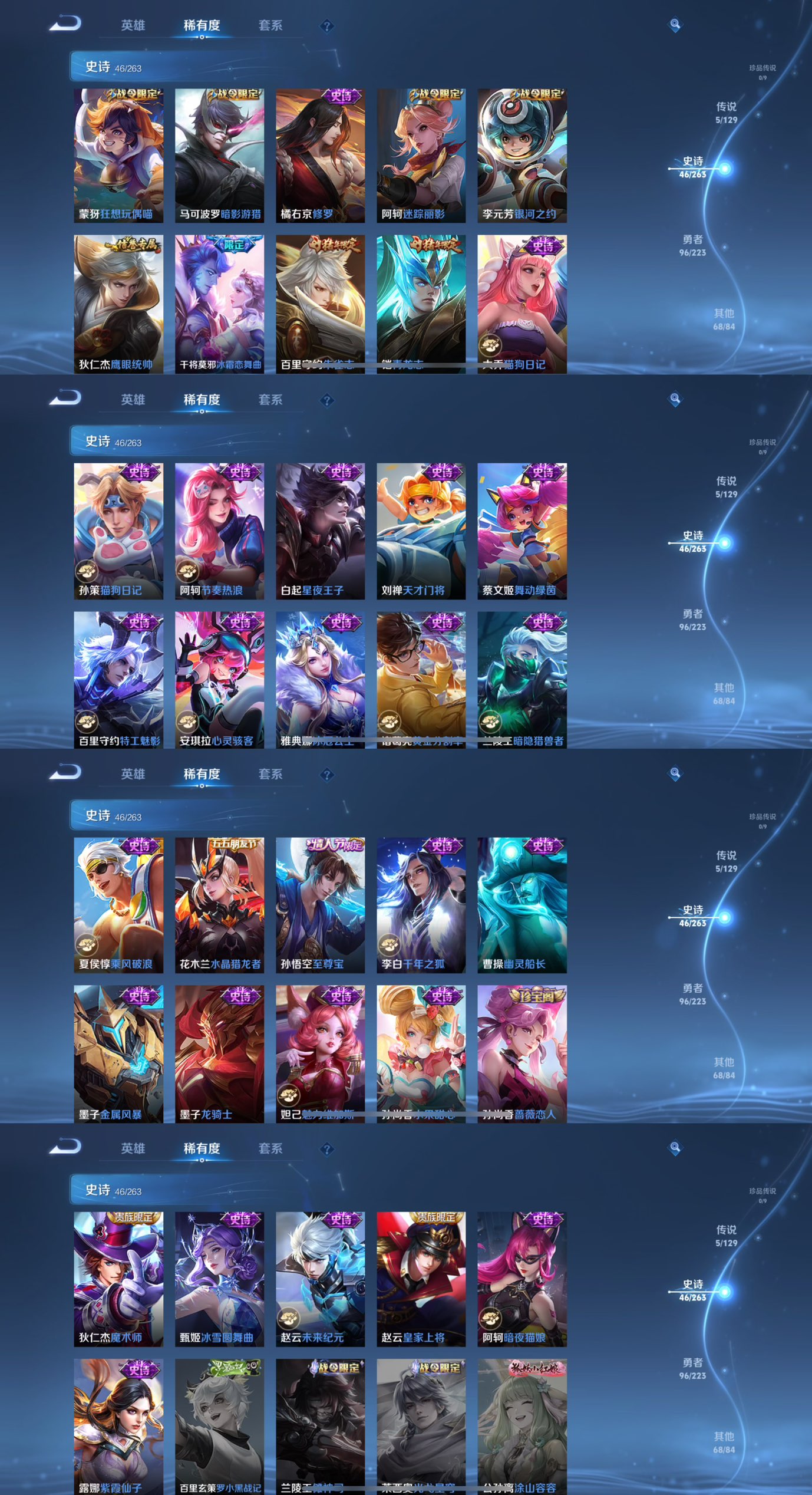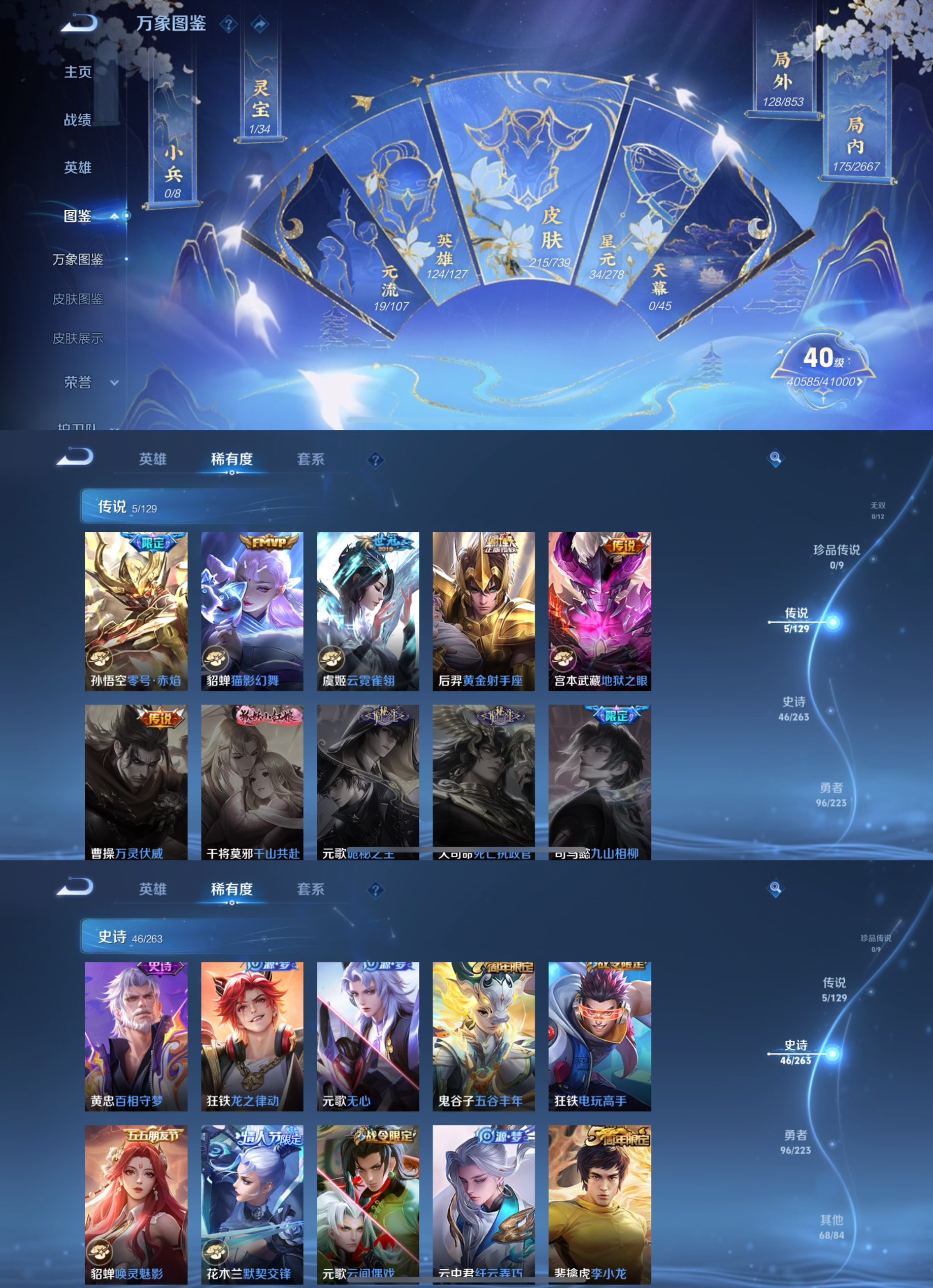 贵族等级:v7皮肤数:215传说品质5 情人节限定2 生肖限定2 英雄数:124