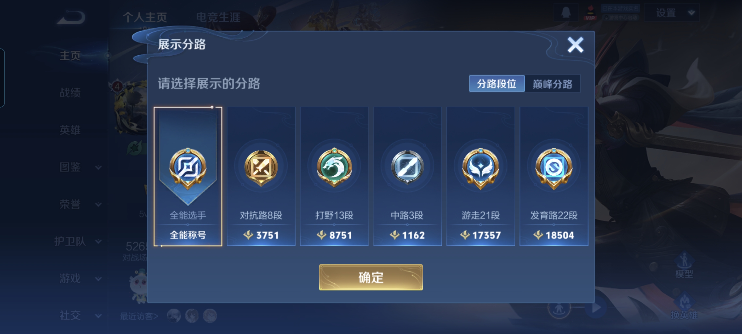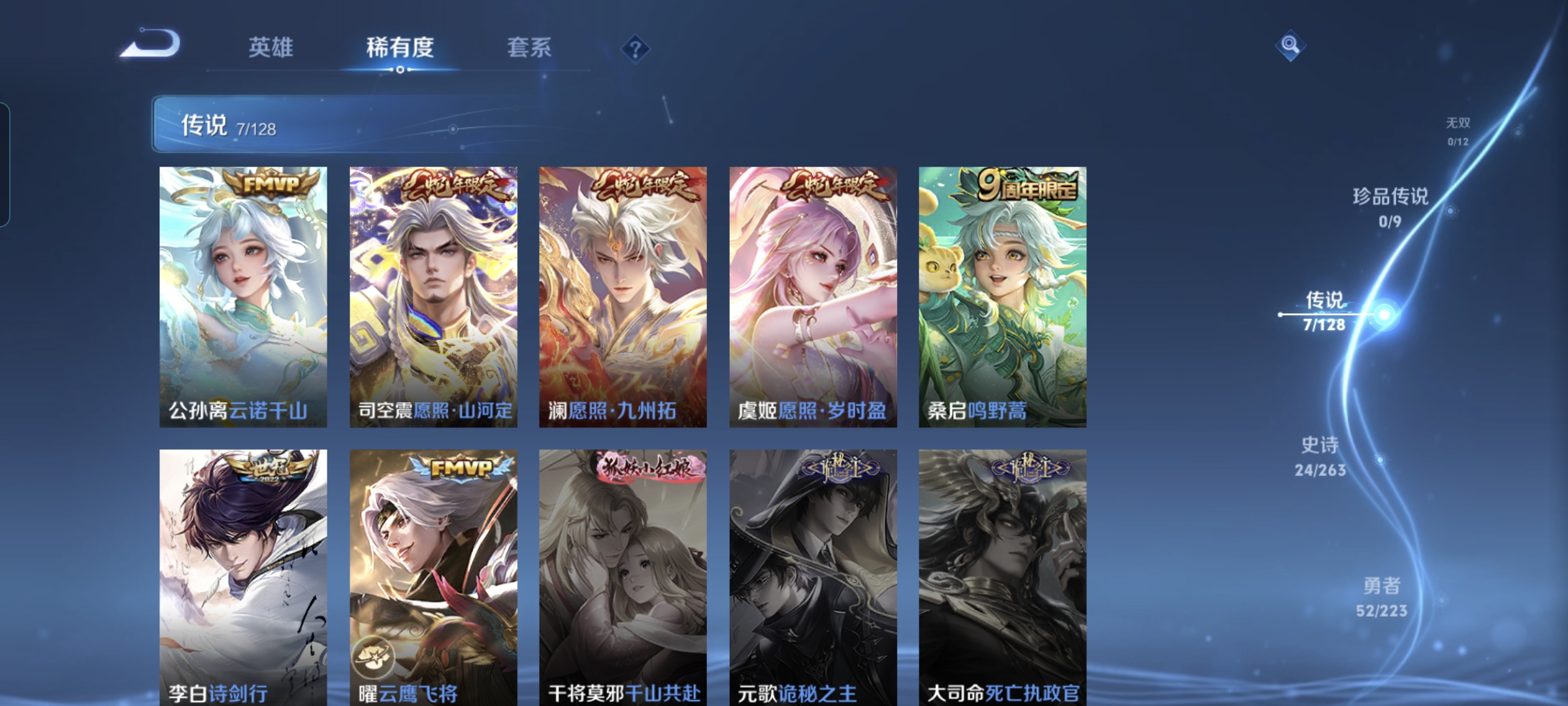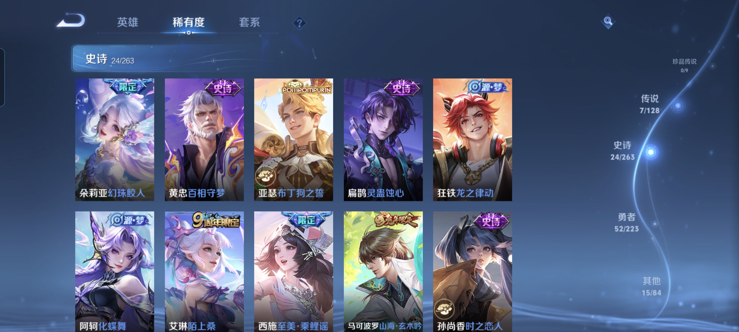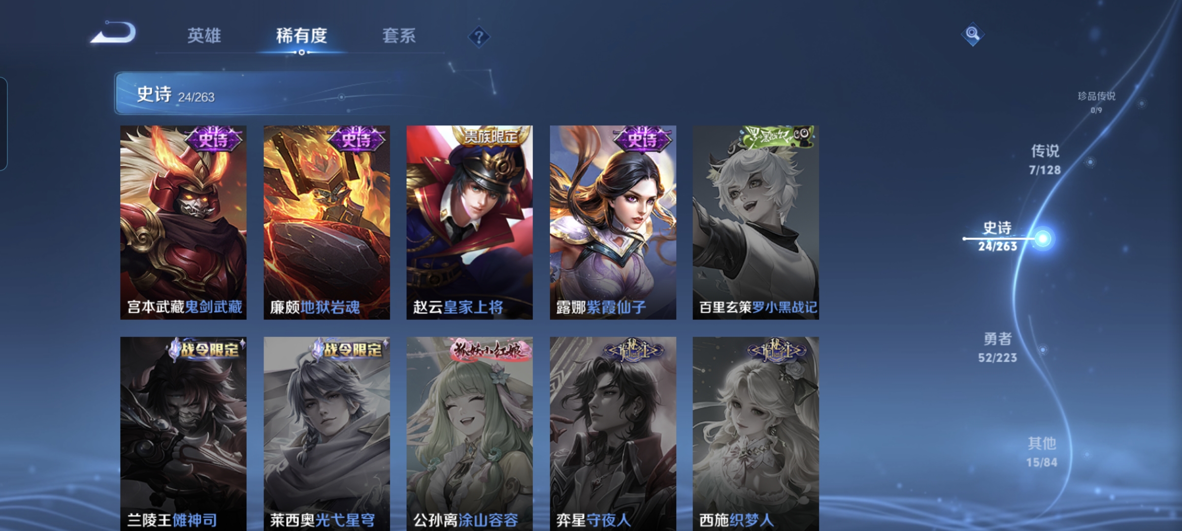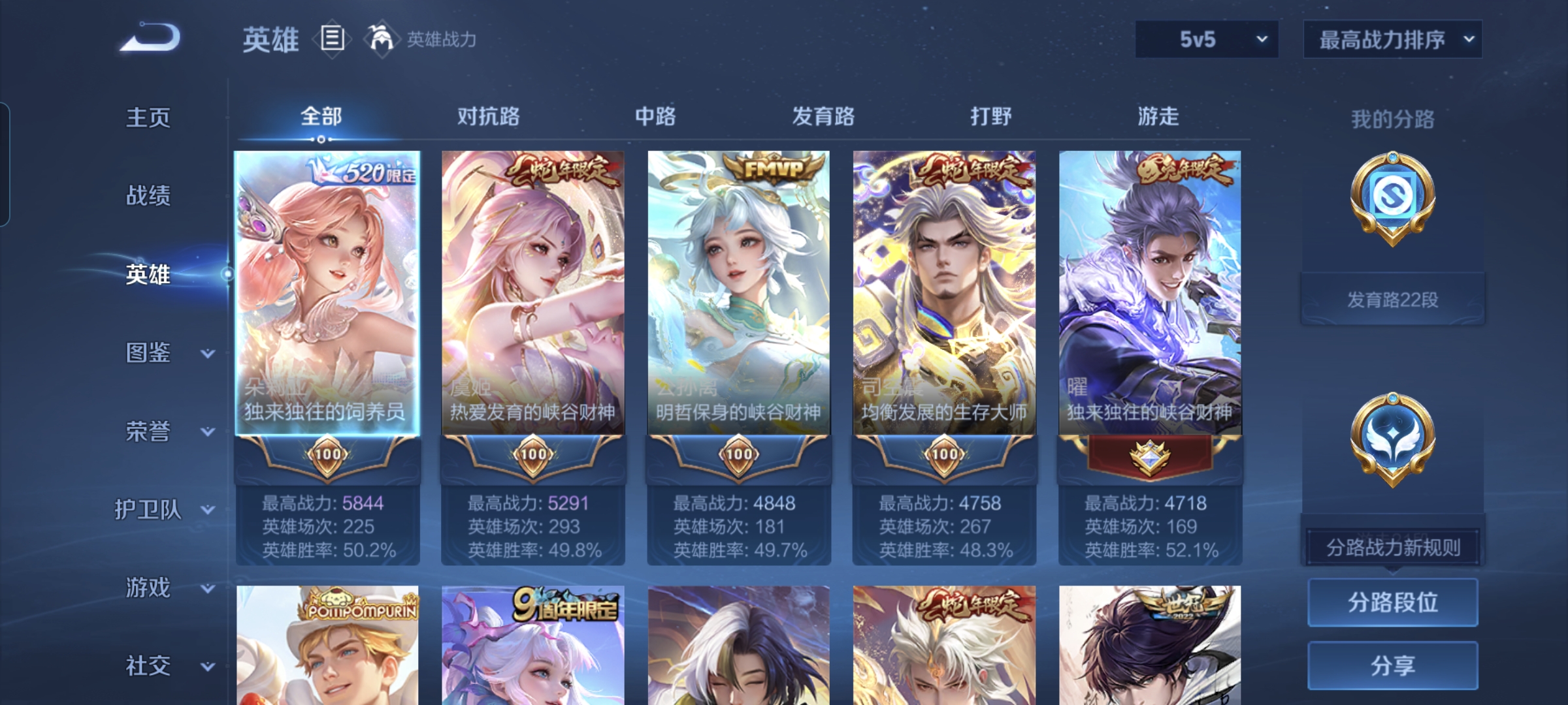 贵族等级:v5皮肤数:71传说品质3 英雄数:91