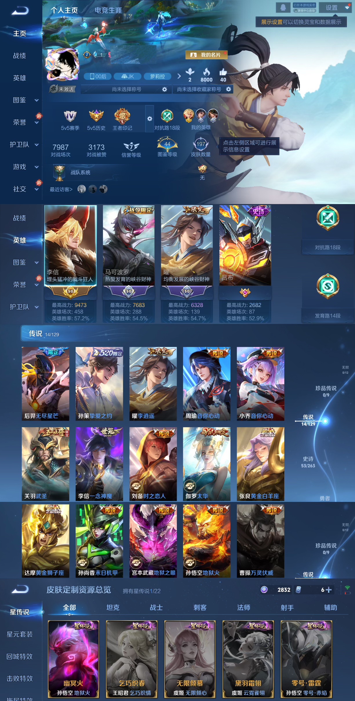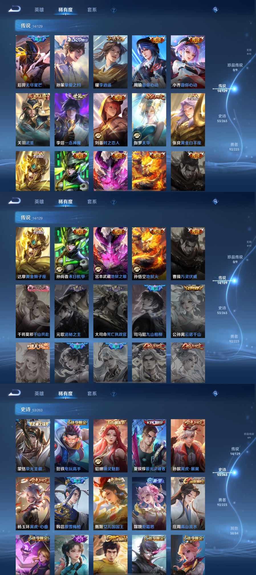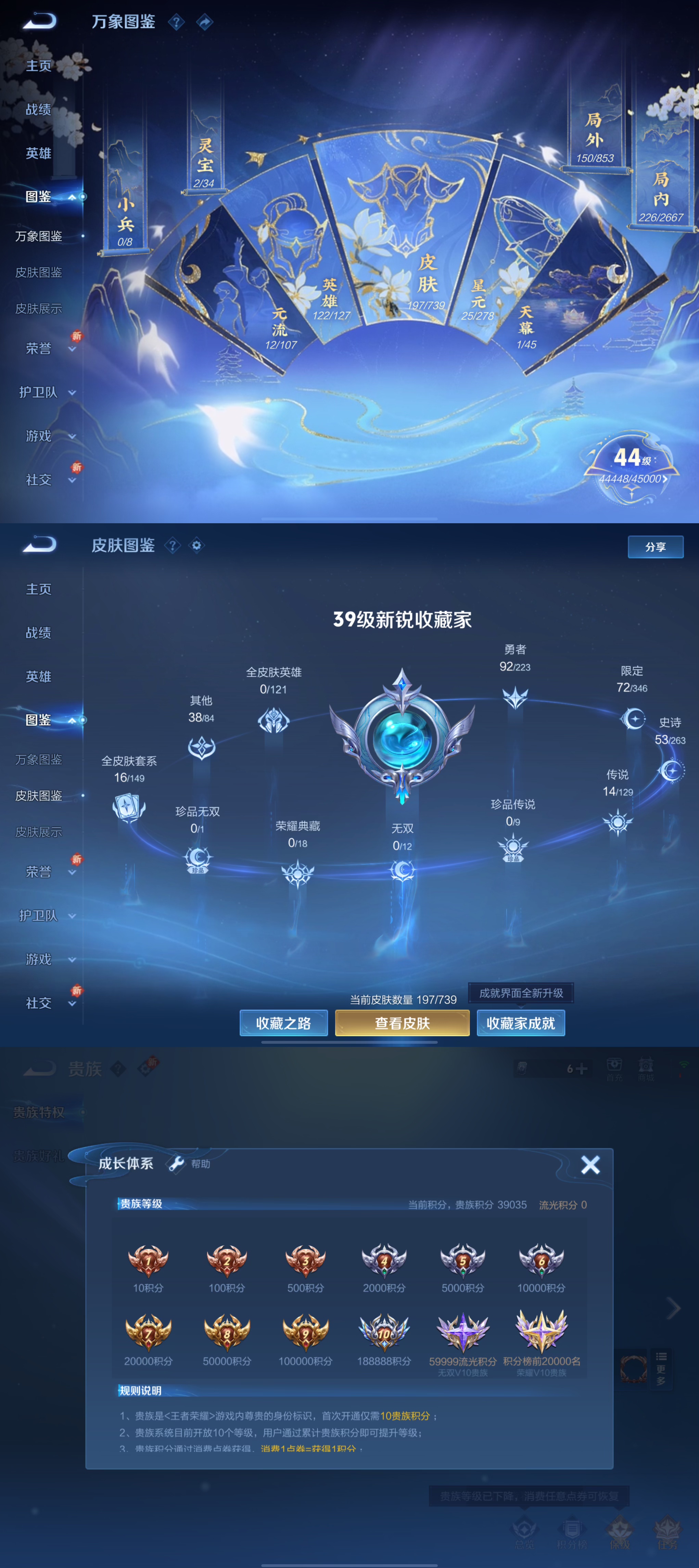 贵族等级:v7皮肤数:197传说品质14 生肖限定3 英雄数:122
