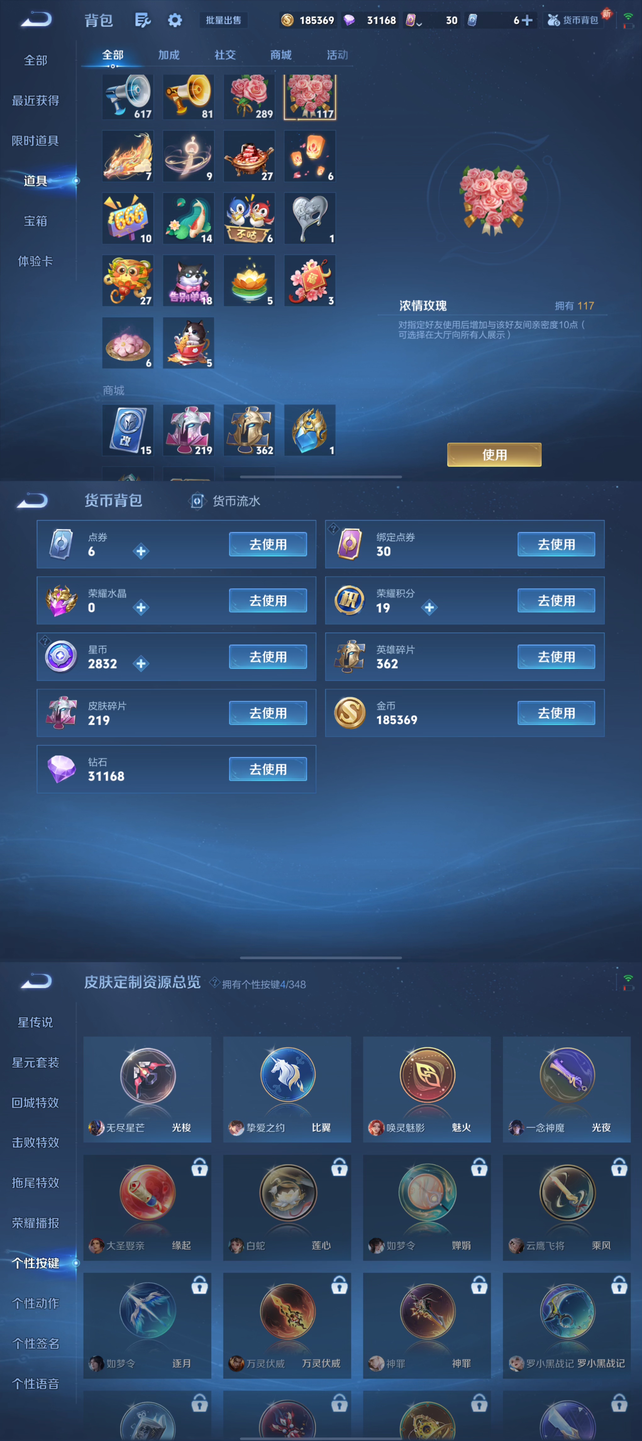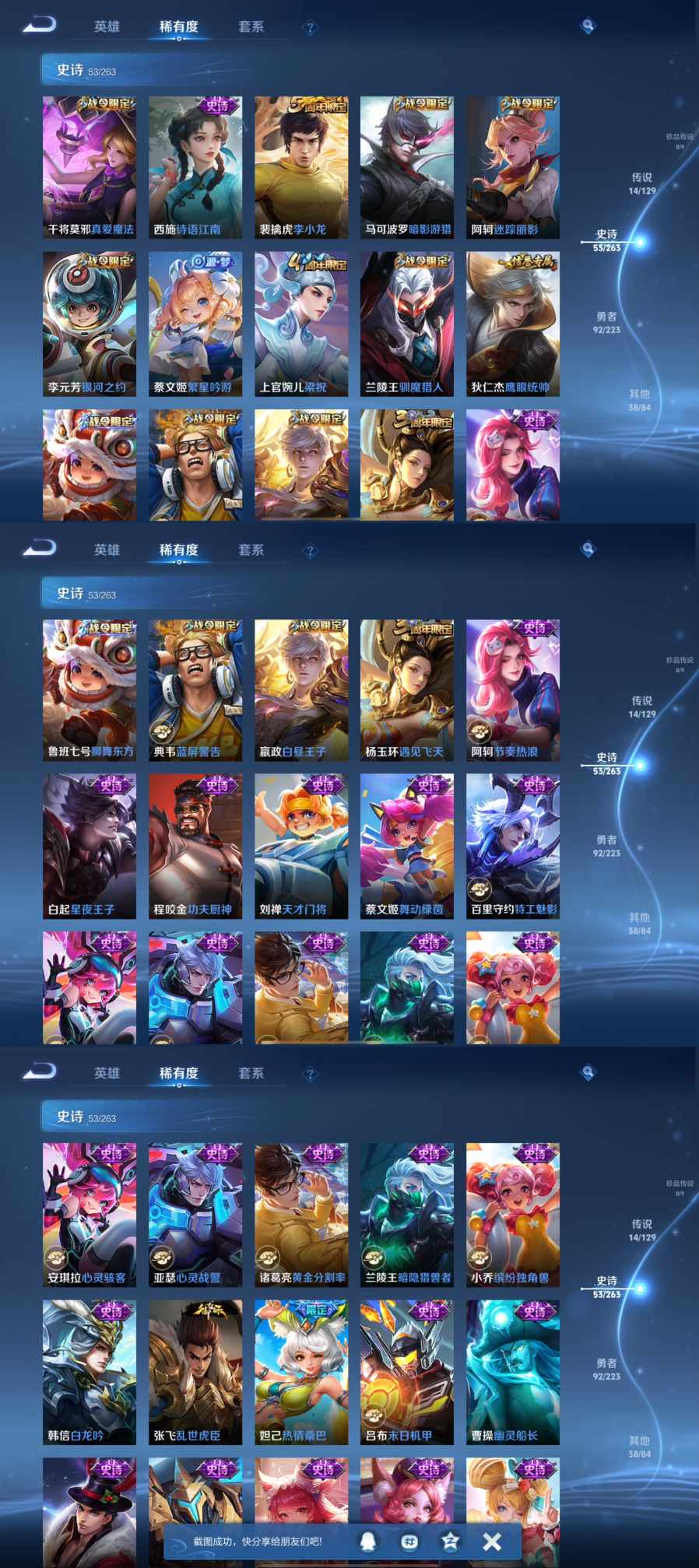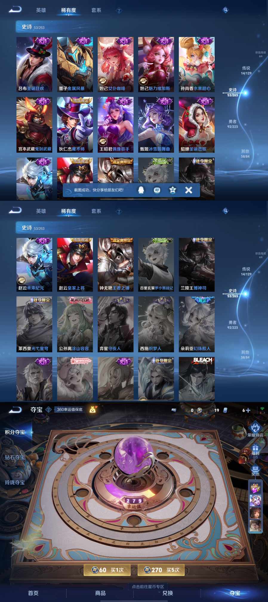 贵族等级:v7皮肤数:197传说品质14 生肖限定3 英雄数:122