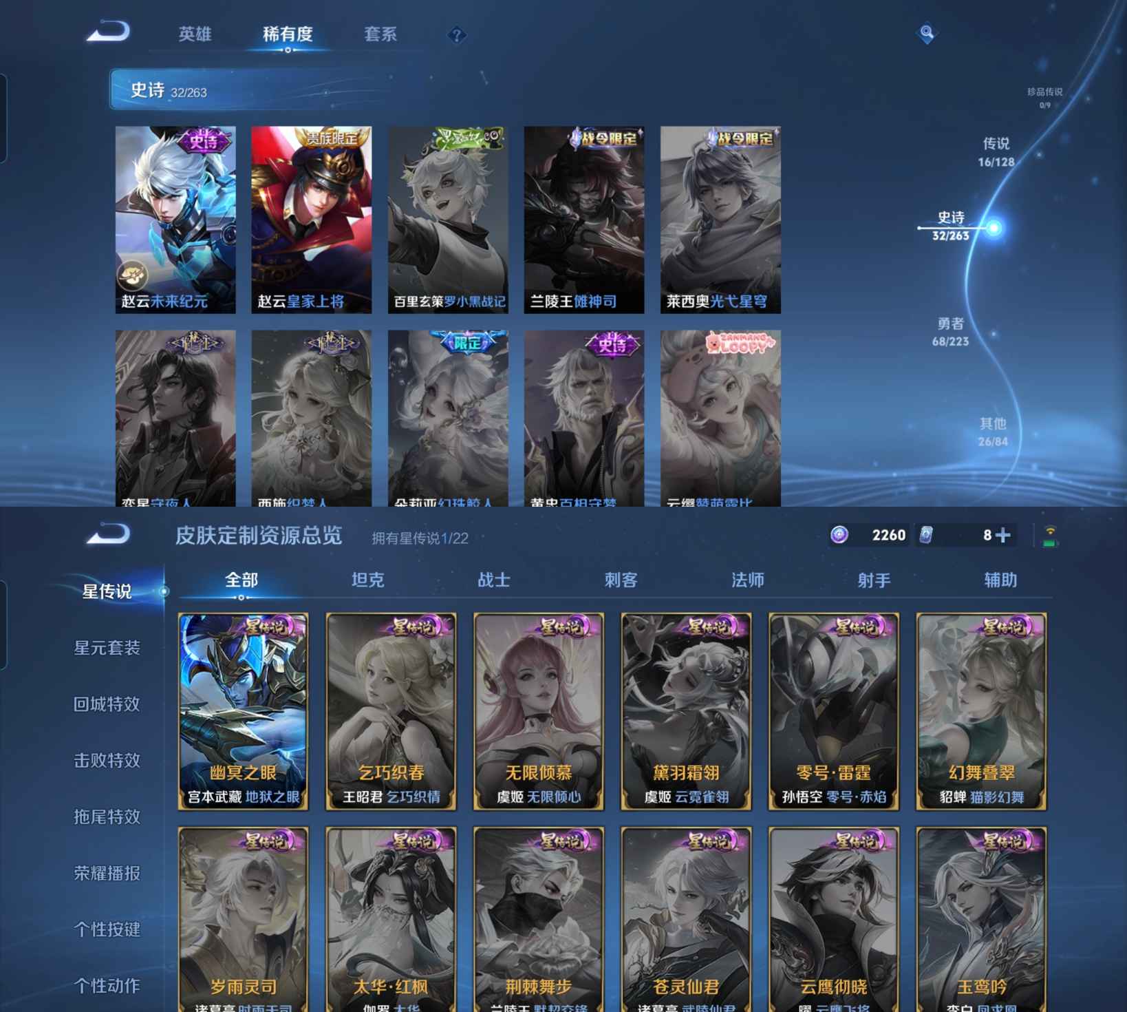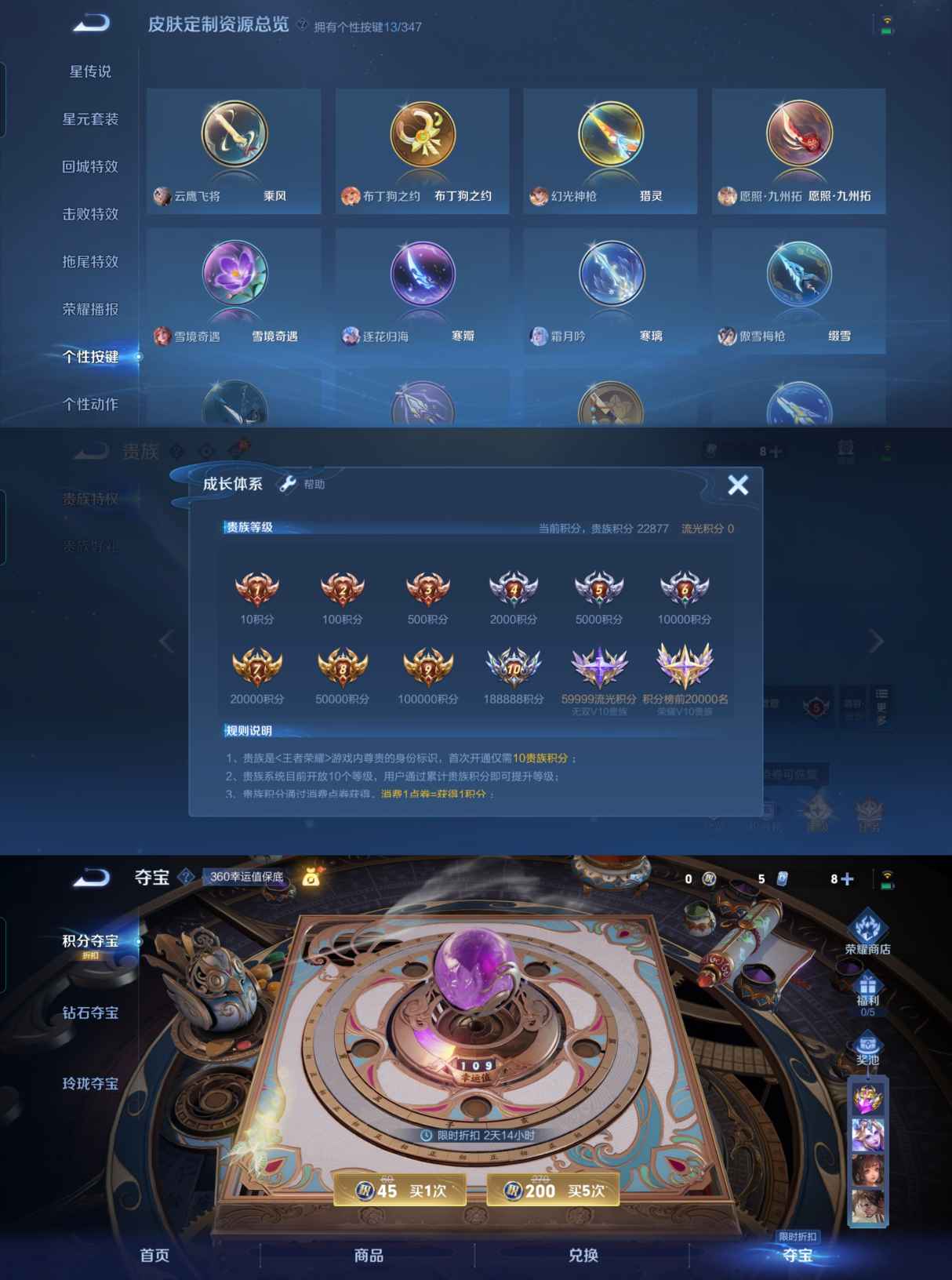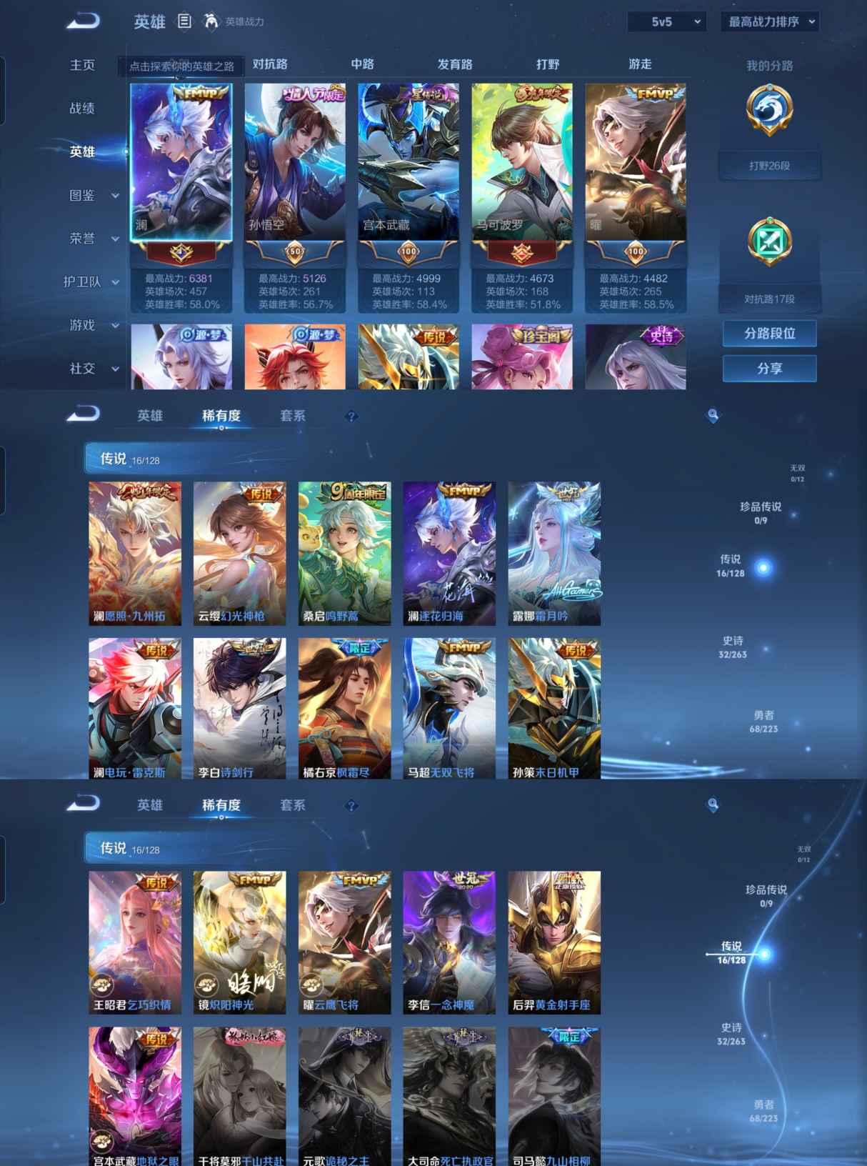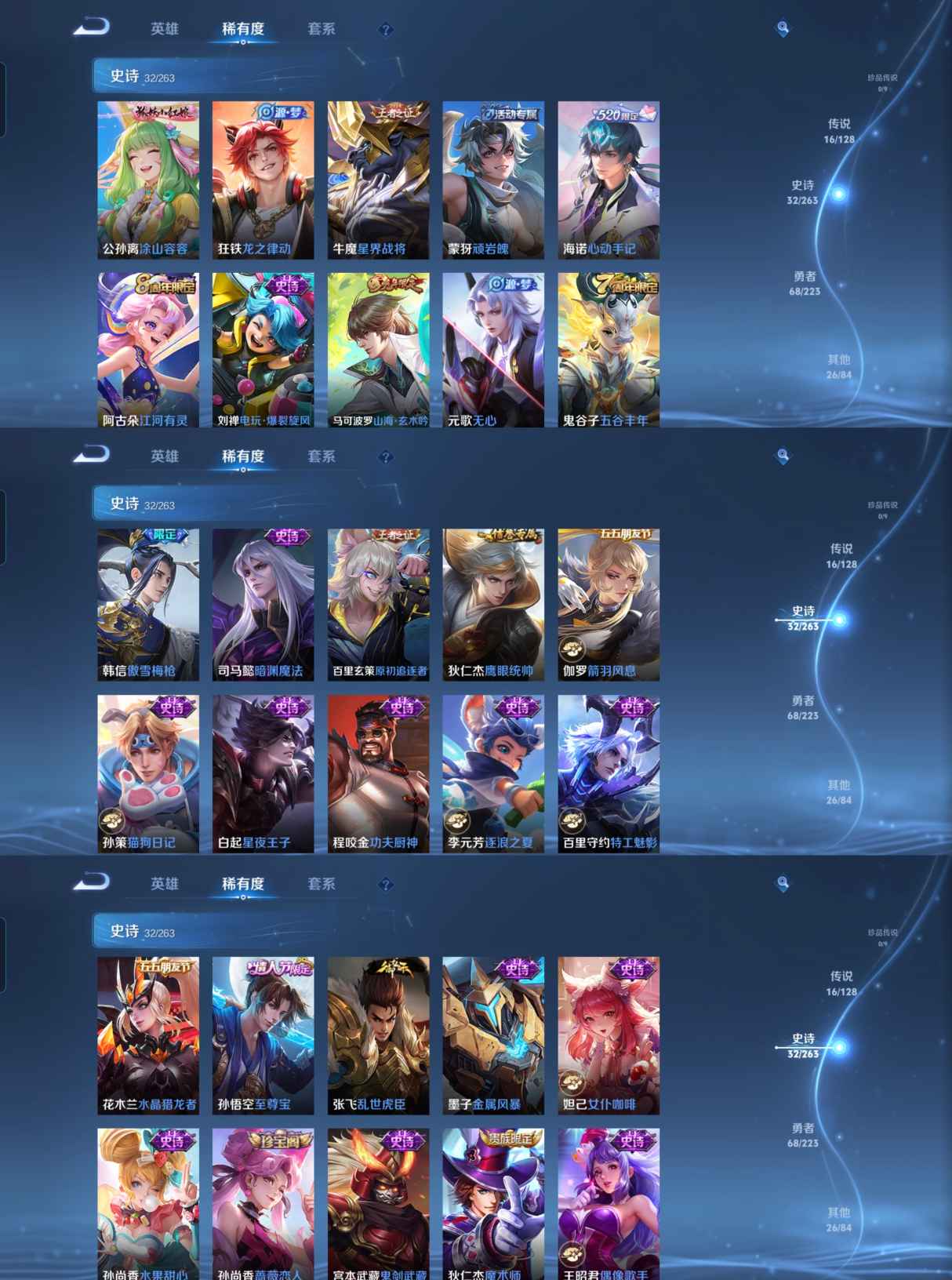 贵族等级:v7皮肤数:142传说品质16 生肖限定2 情人节限定1 英雄数:124