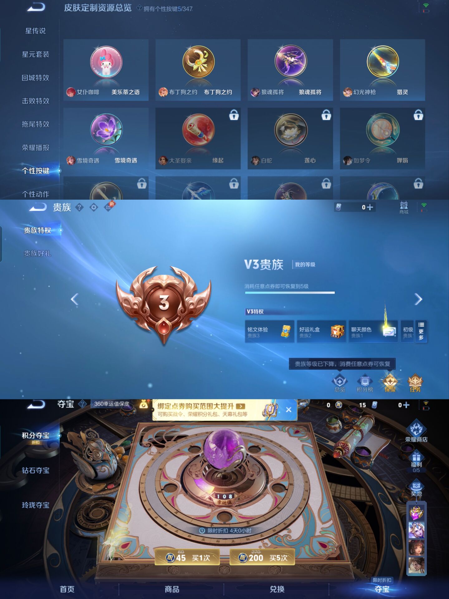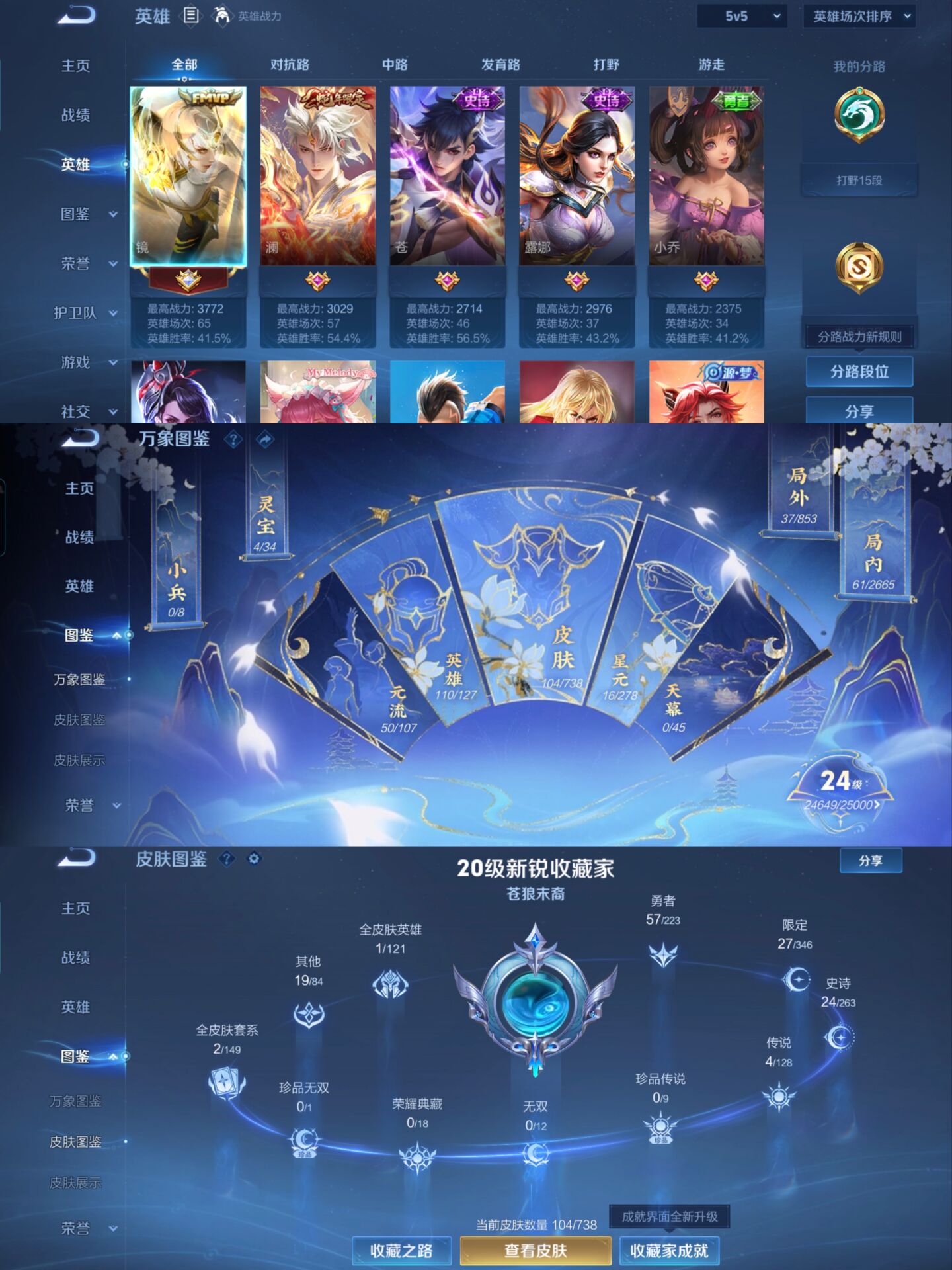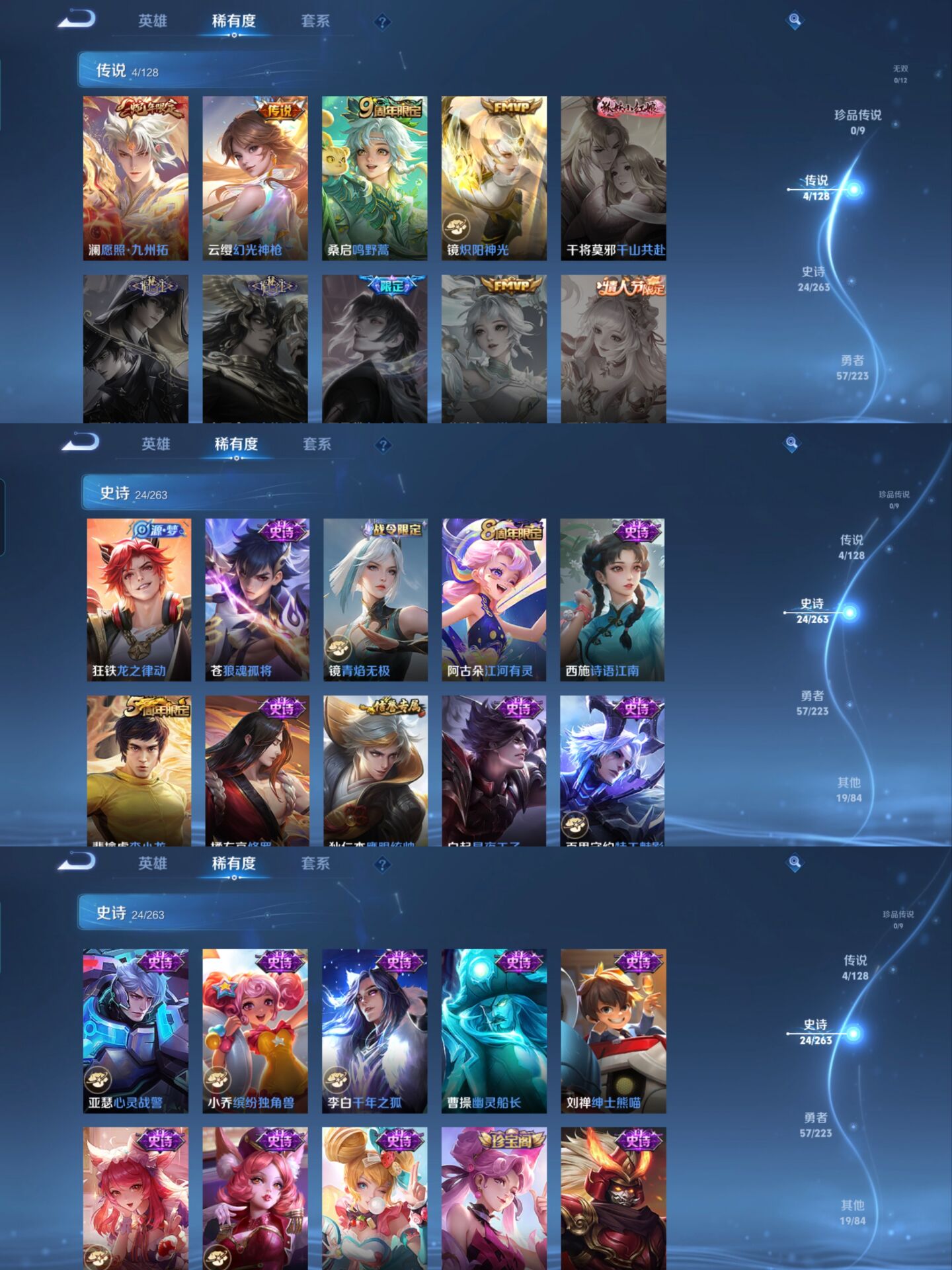 贵族等级:v5皮肤数:104传说品质4 生肖限定1 英雄数:110