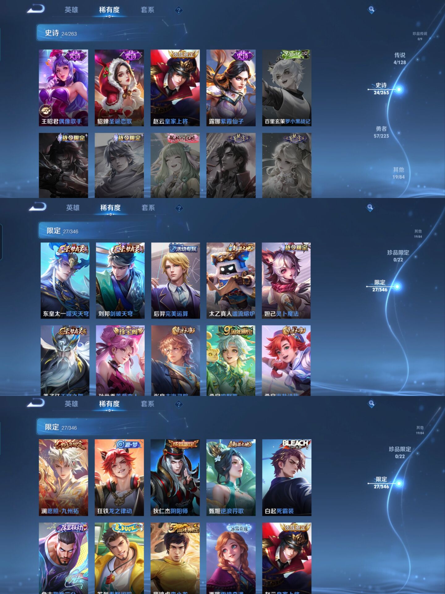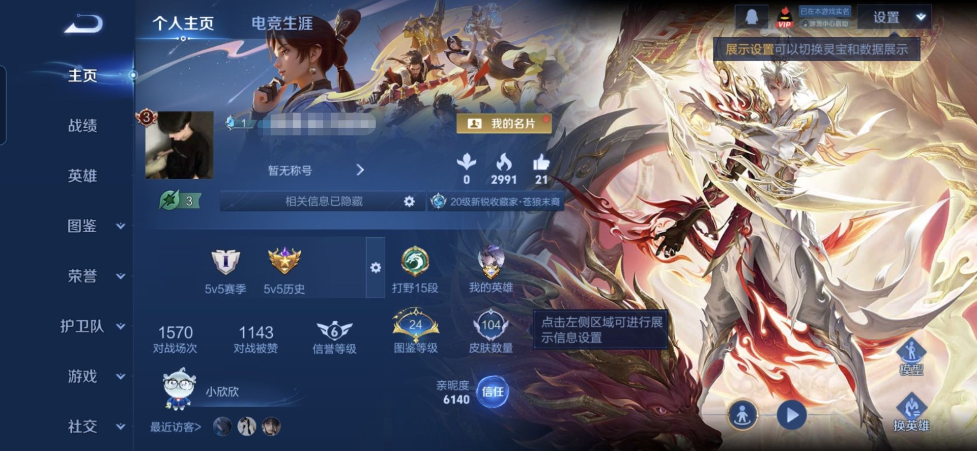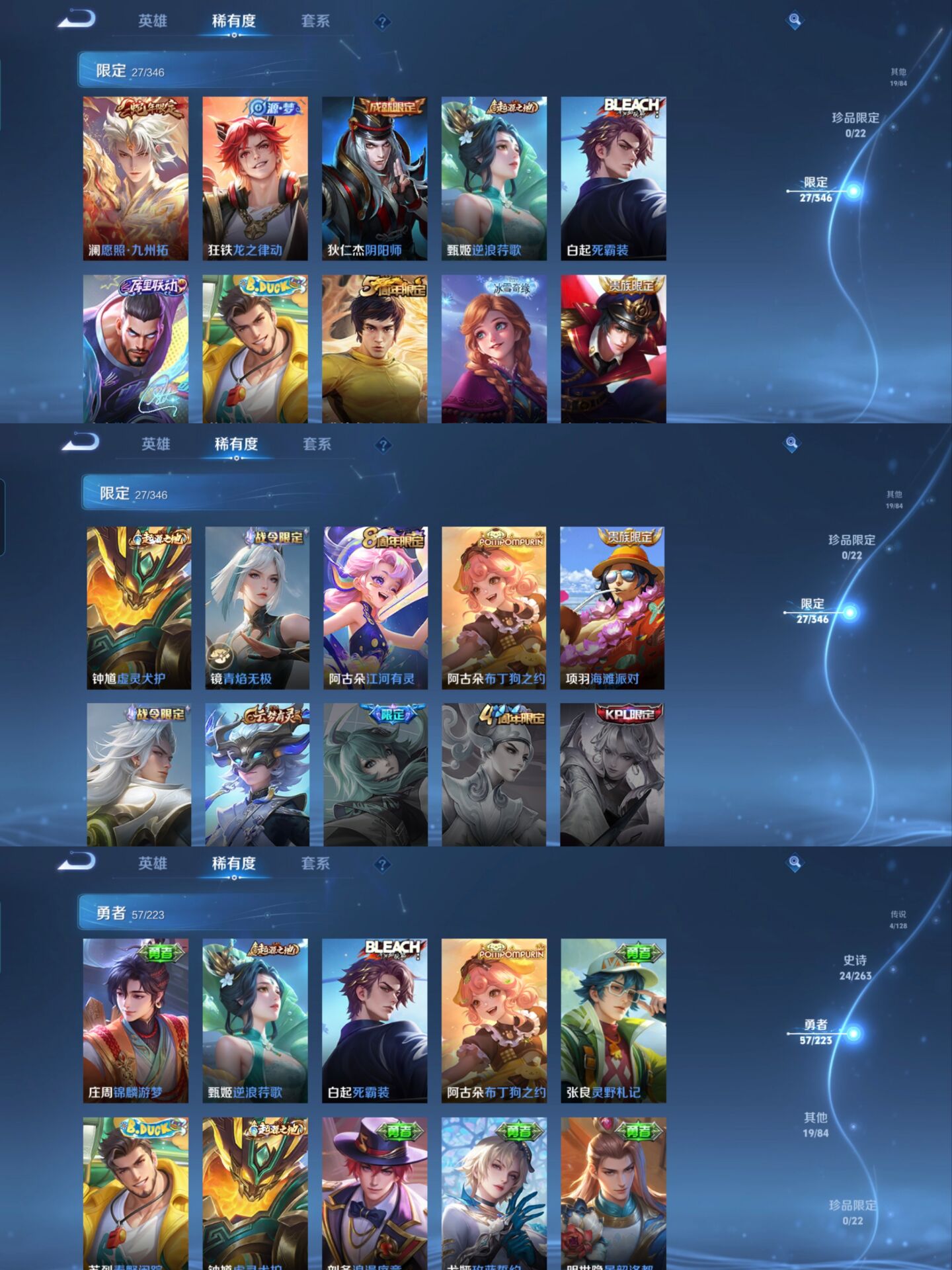 贵族等级:v5皮肤数:104传说品质4 生肖限定1 英雄数:110