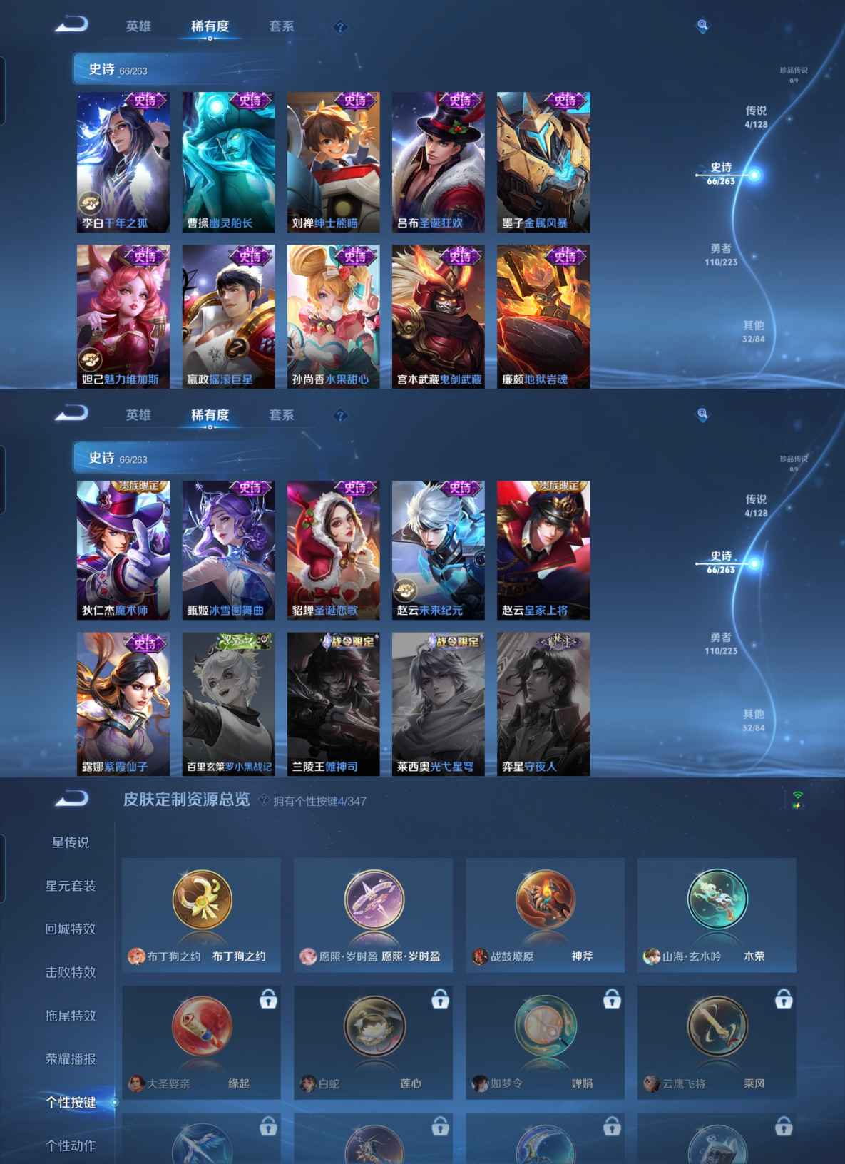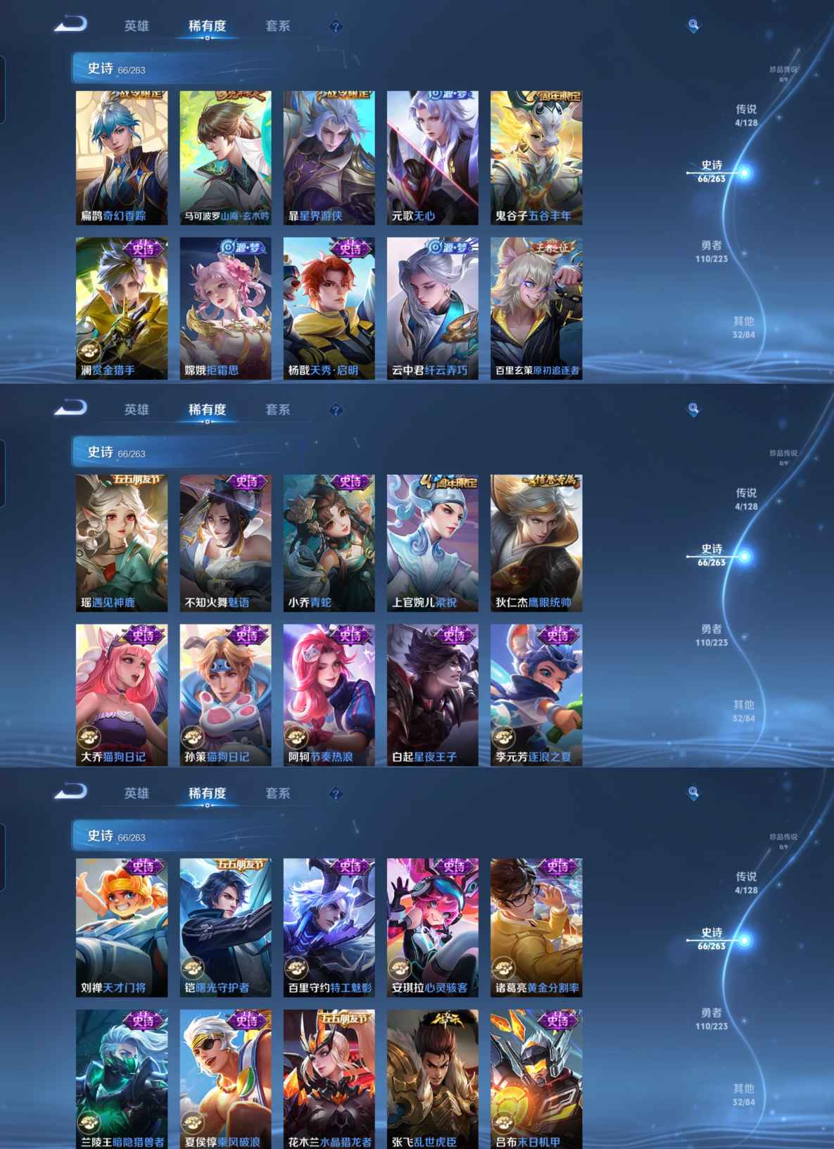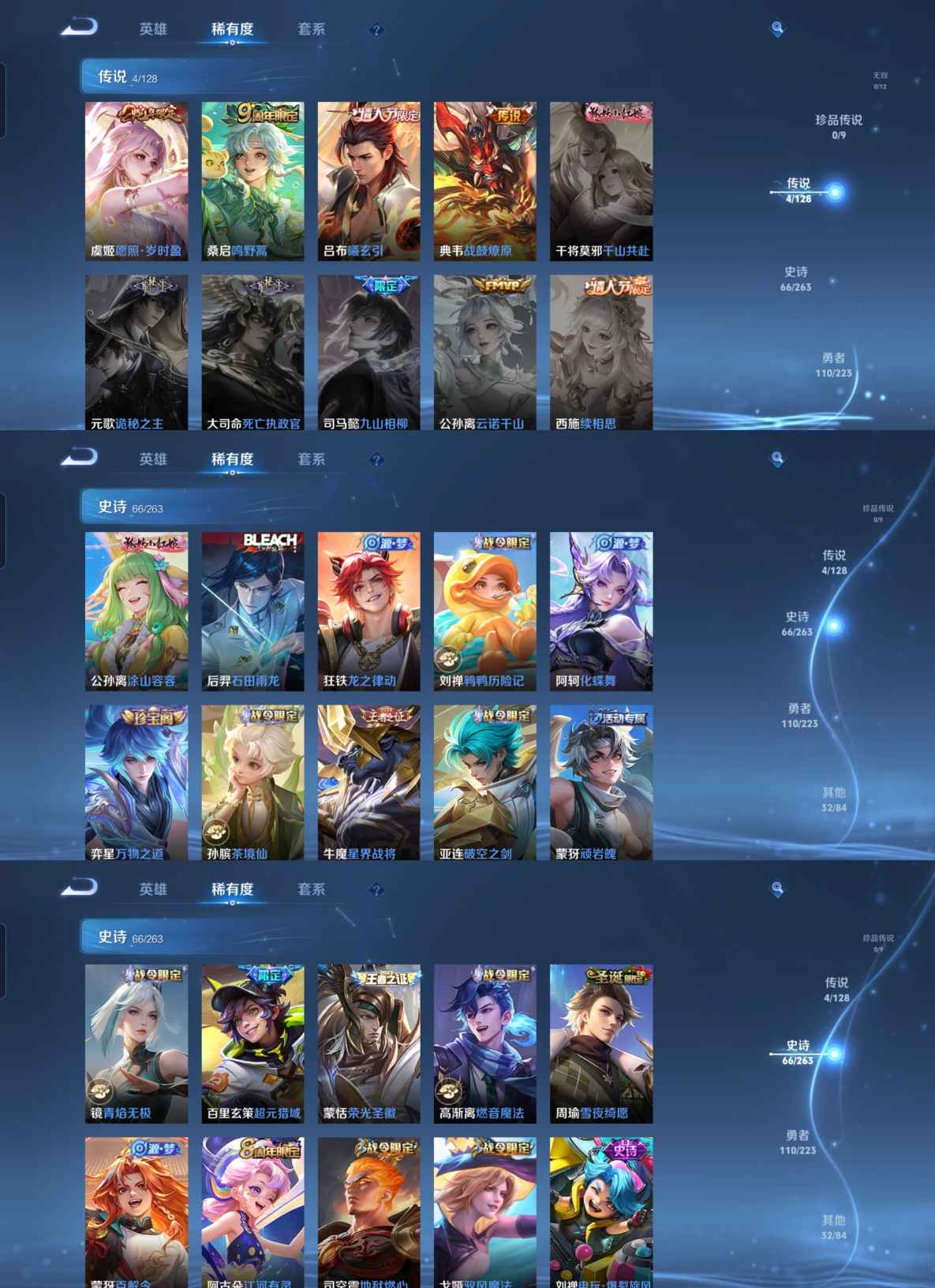 贵族等级:v6皮肤数:212传说品质4 生肖限定2 情人节限定1 英雄数:124