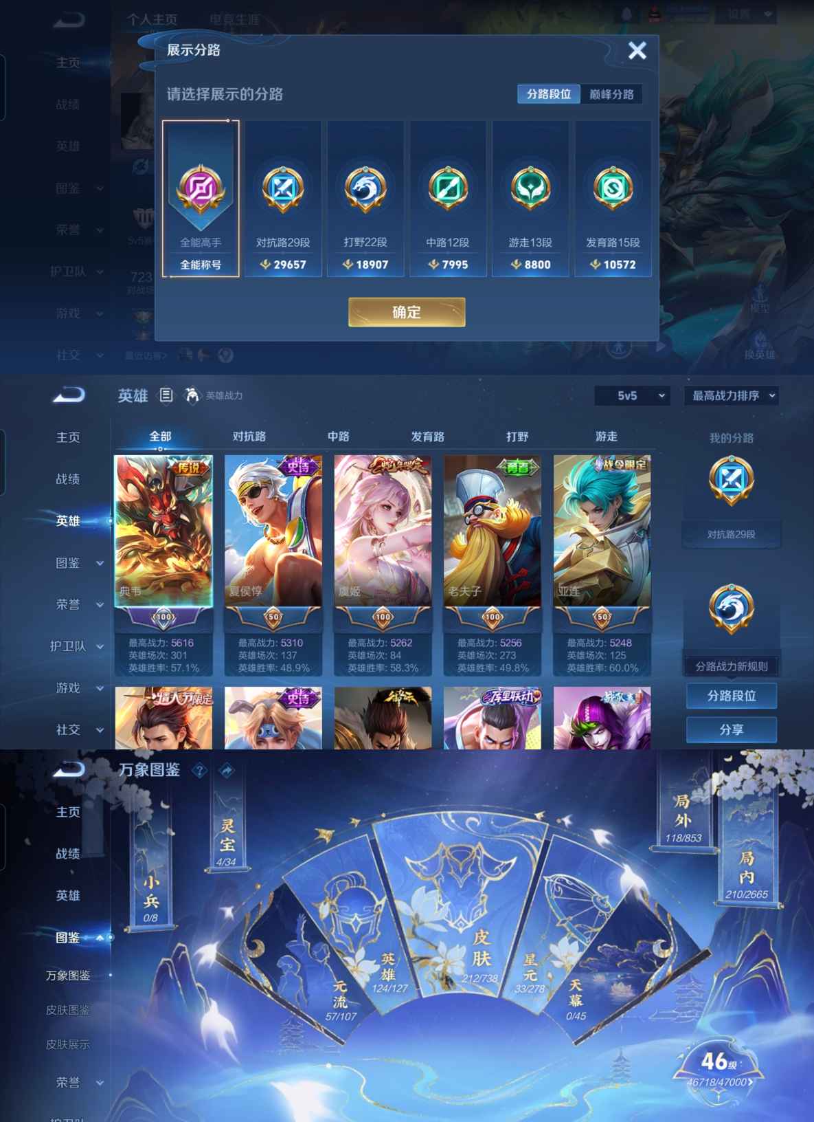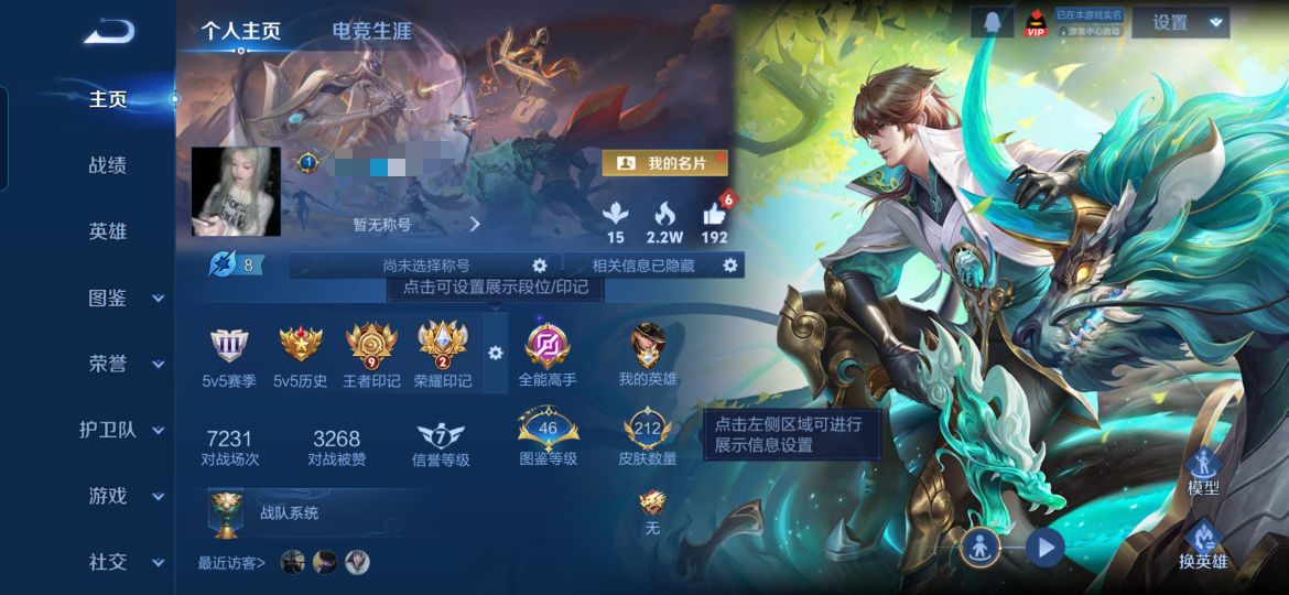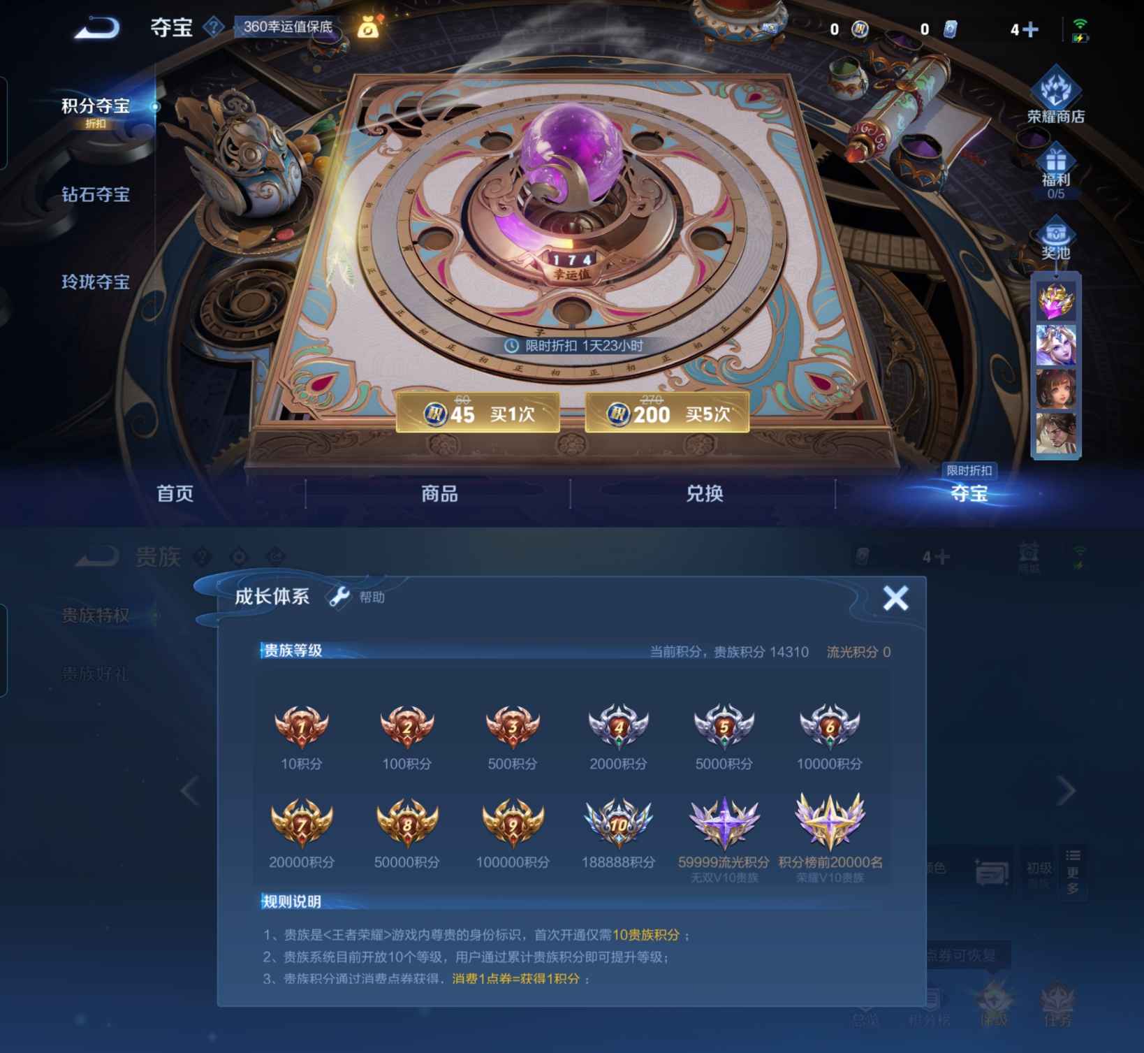 贵族等级:v6皮肤数:212传说品质4 生肖限定2 情人节限定1 英雄数:124