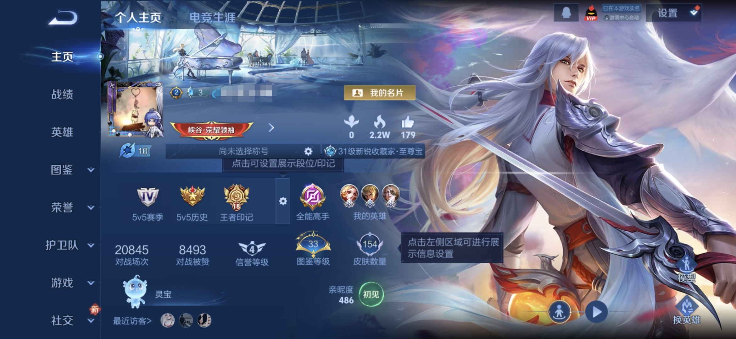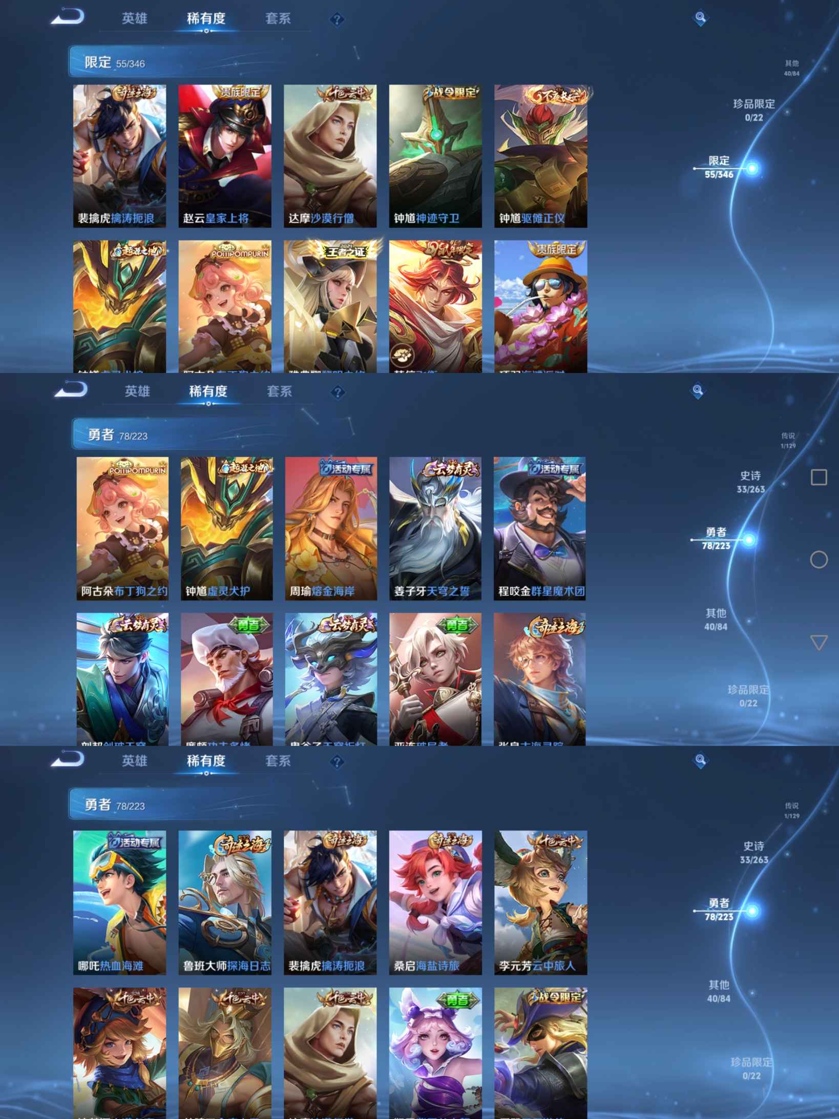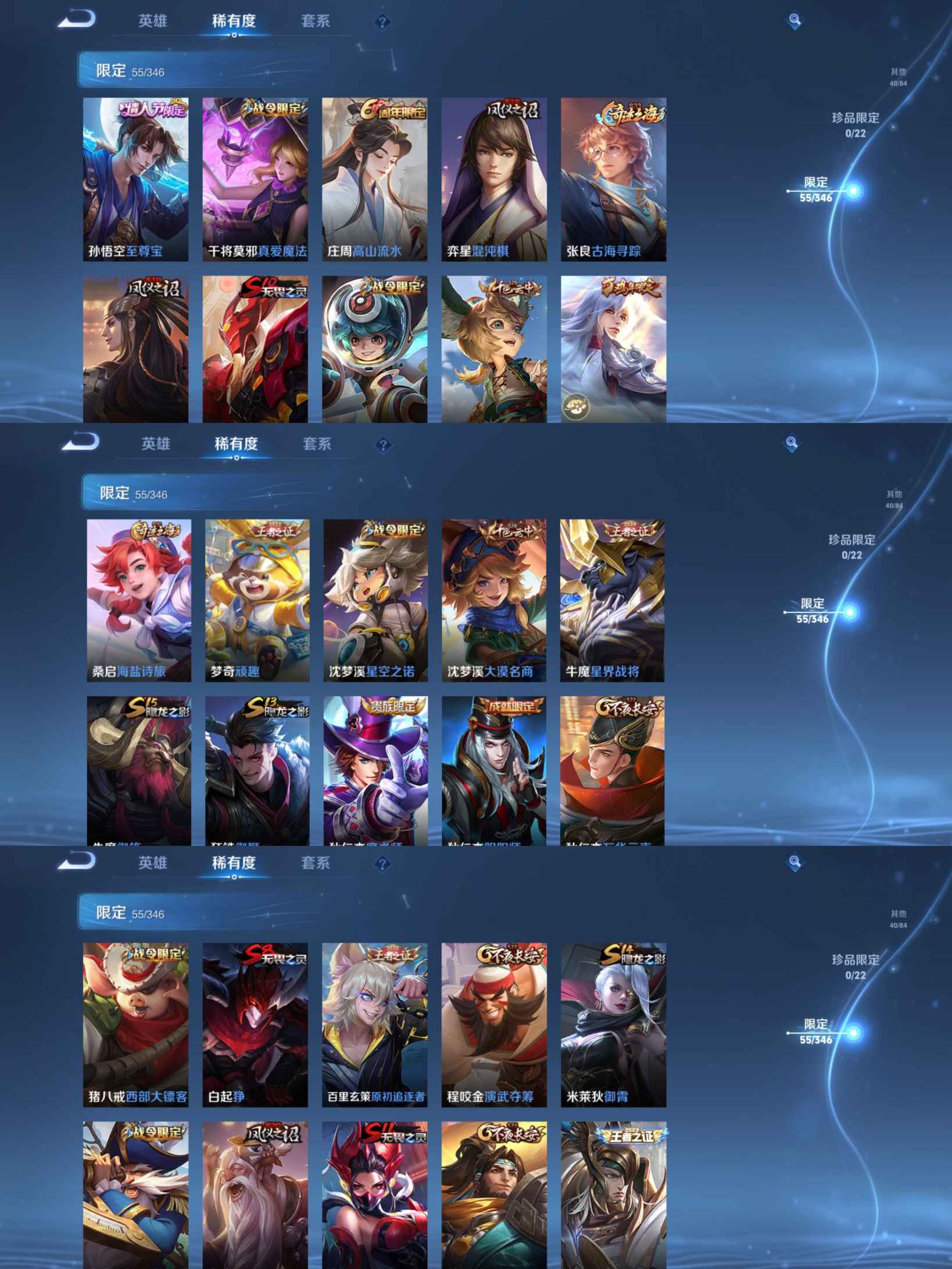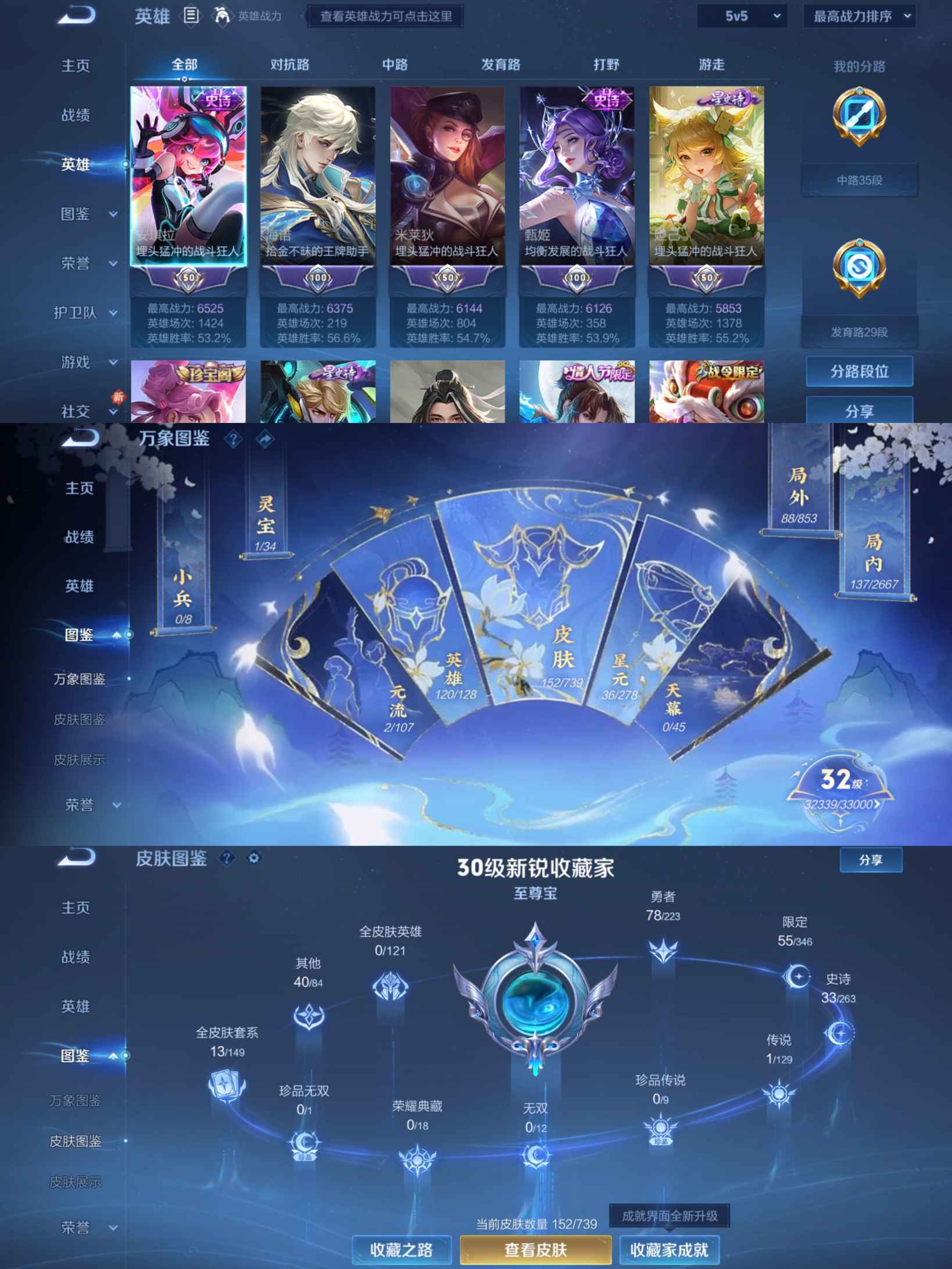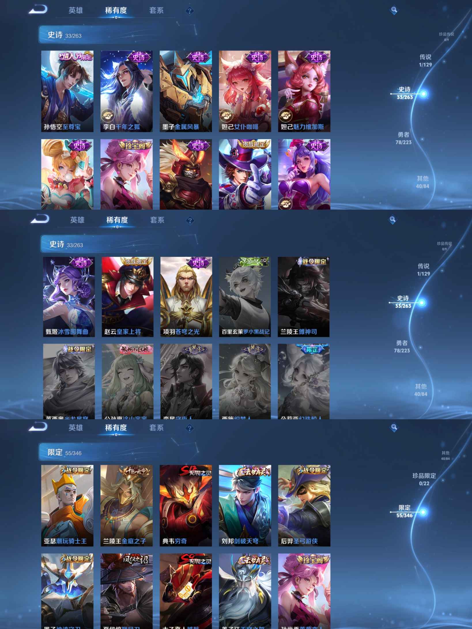 贵族等级:v6皮肤数:155情人节限定1 传说品质1 生肖限定2 英雄数:120