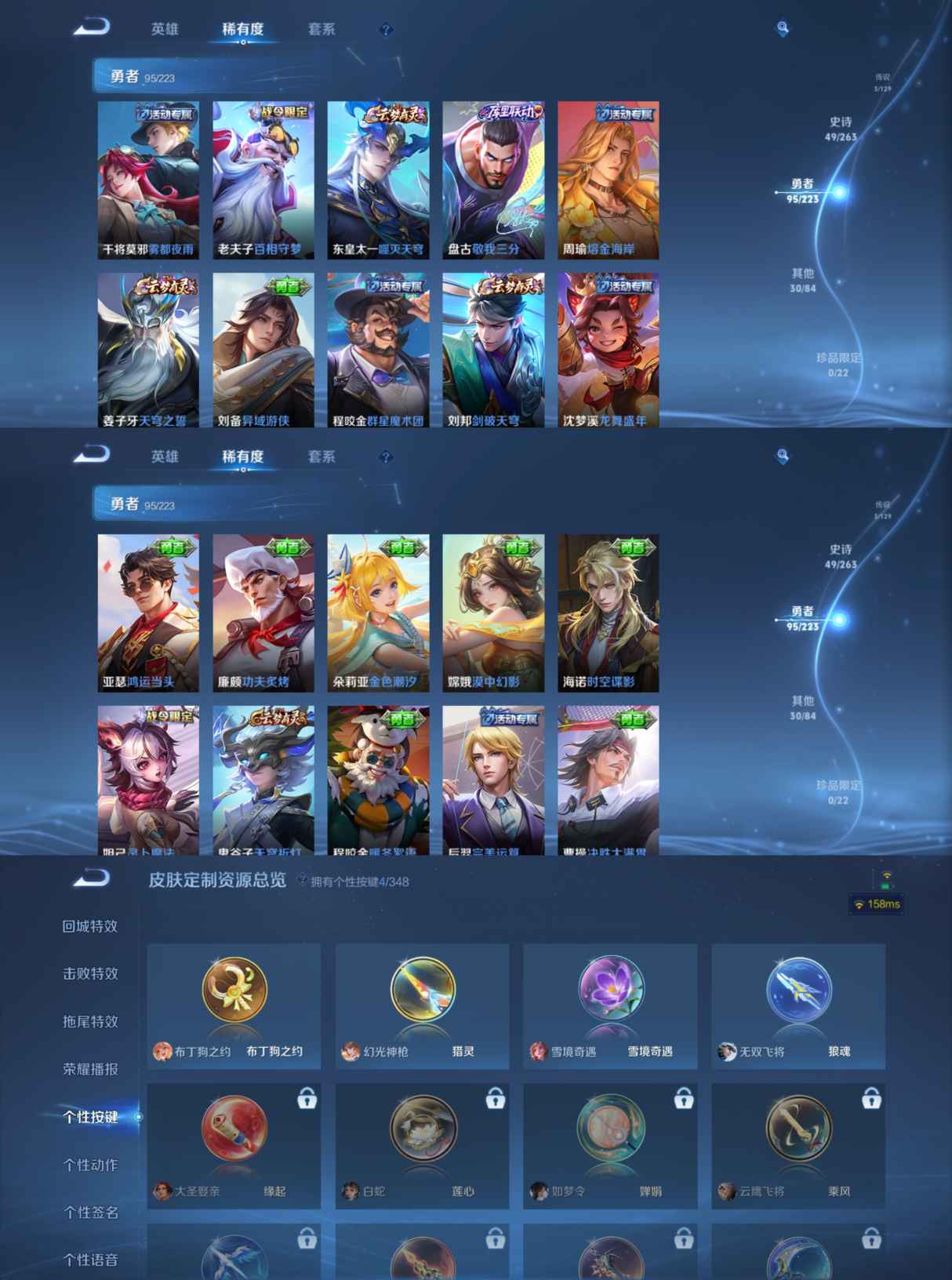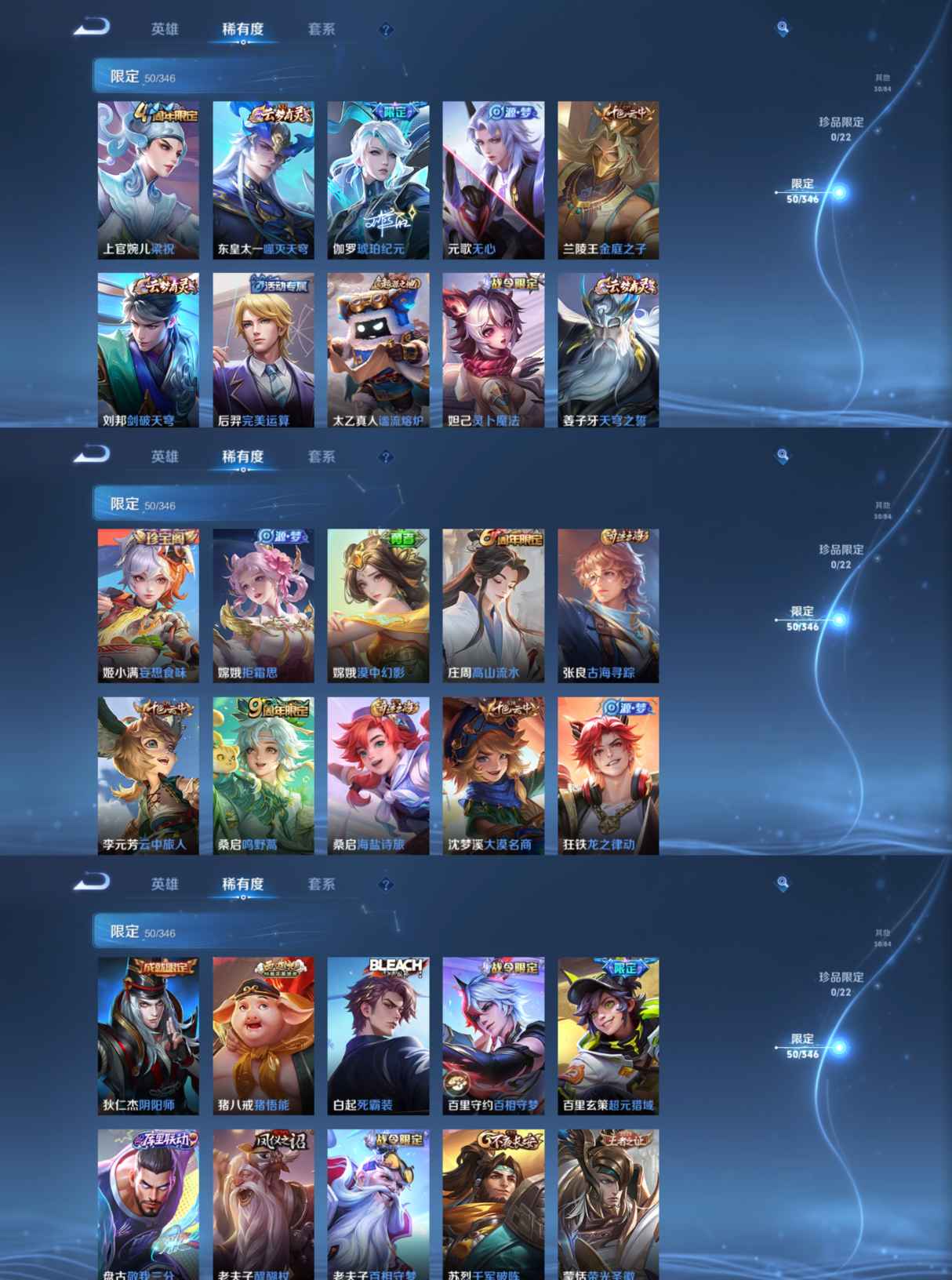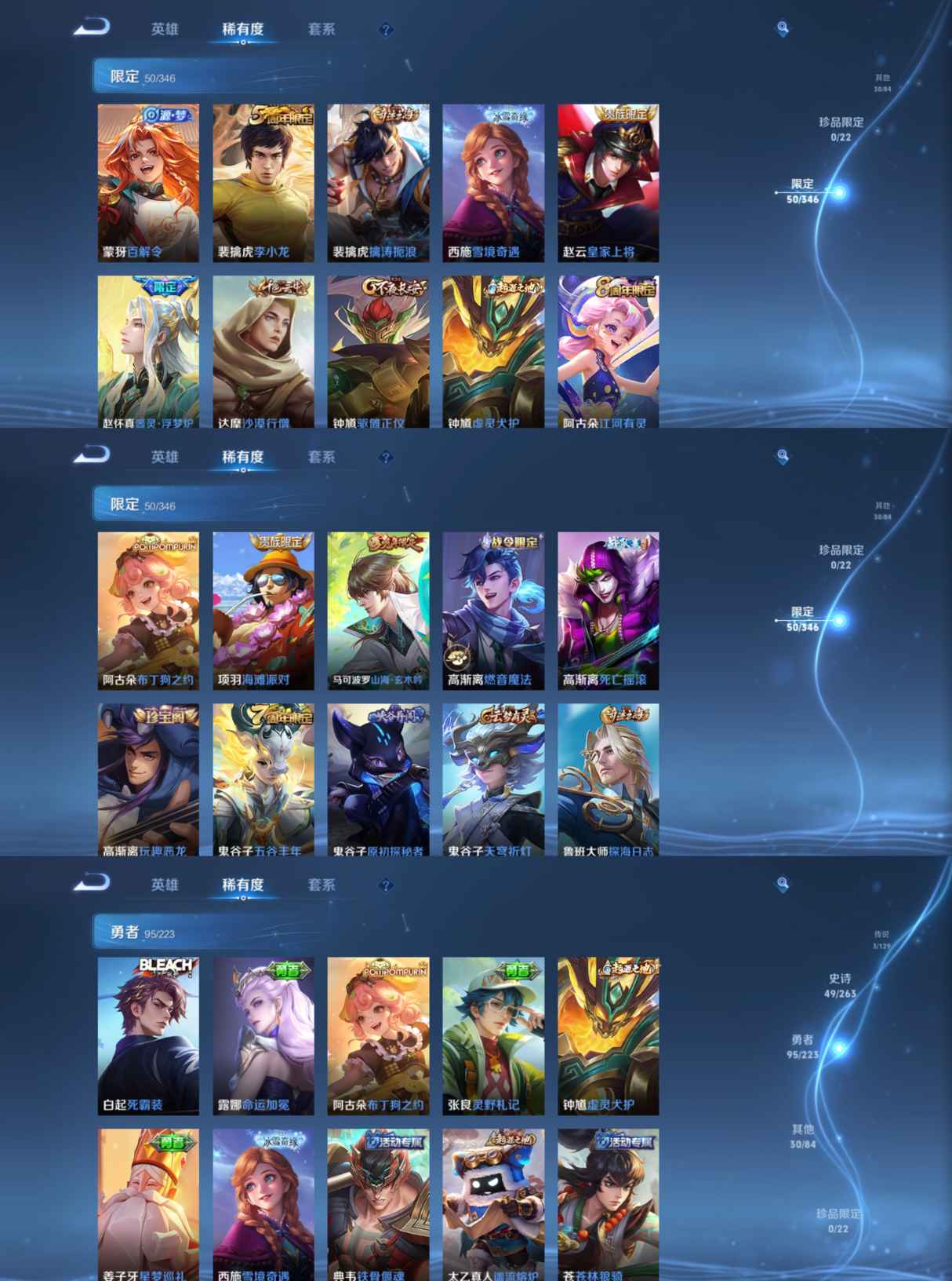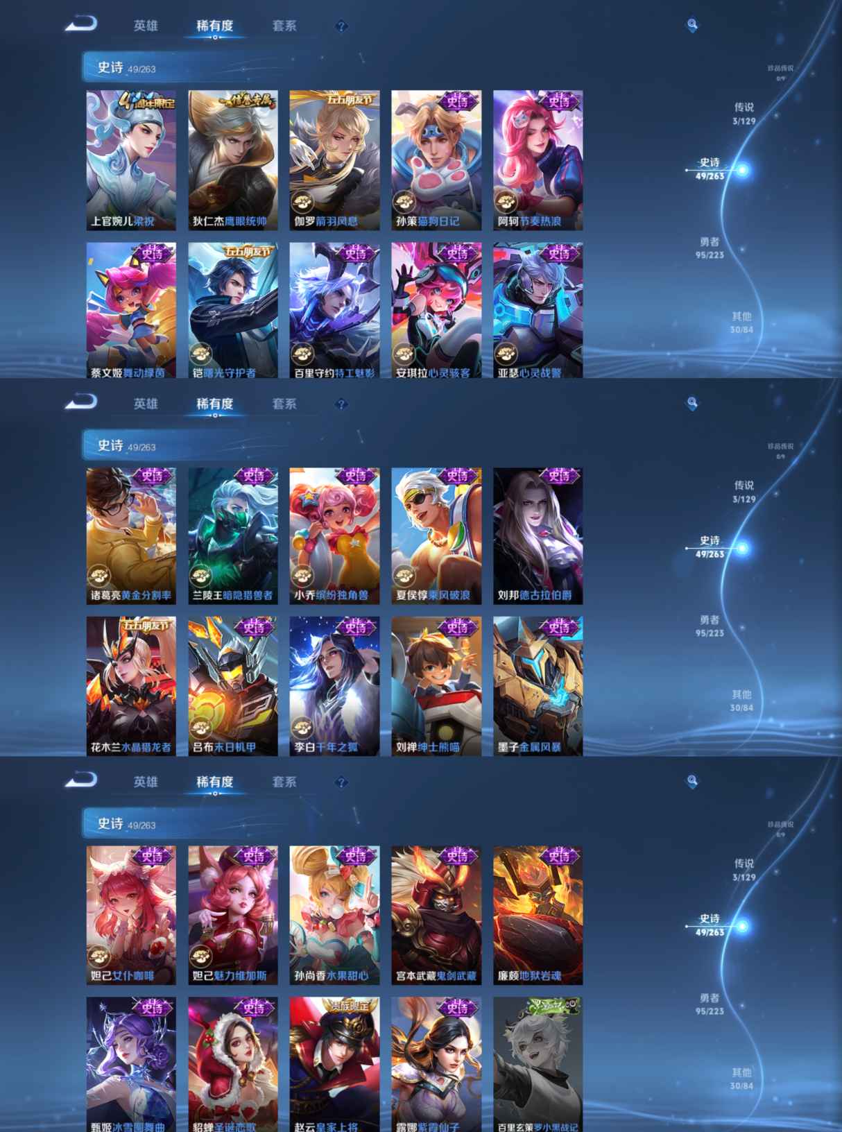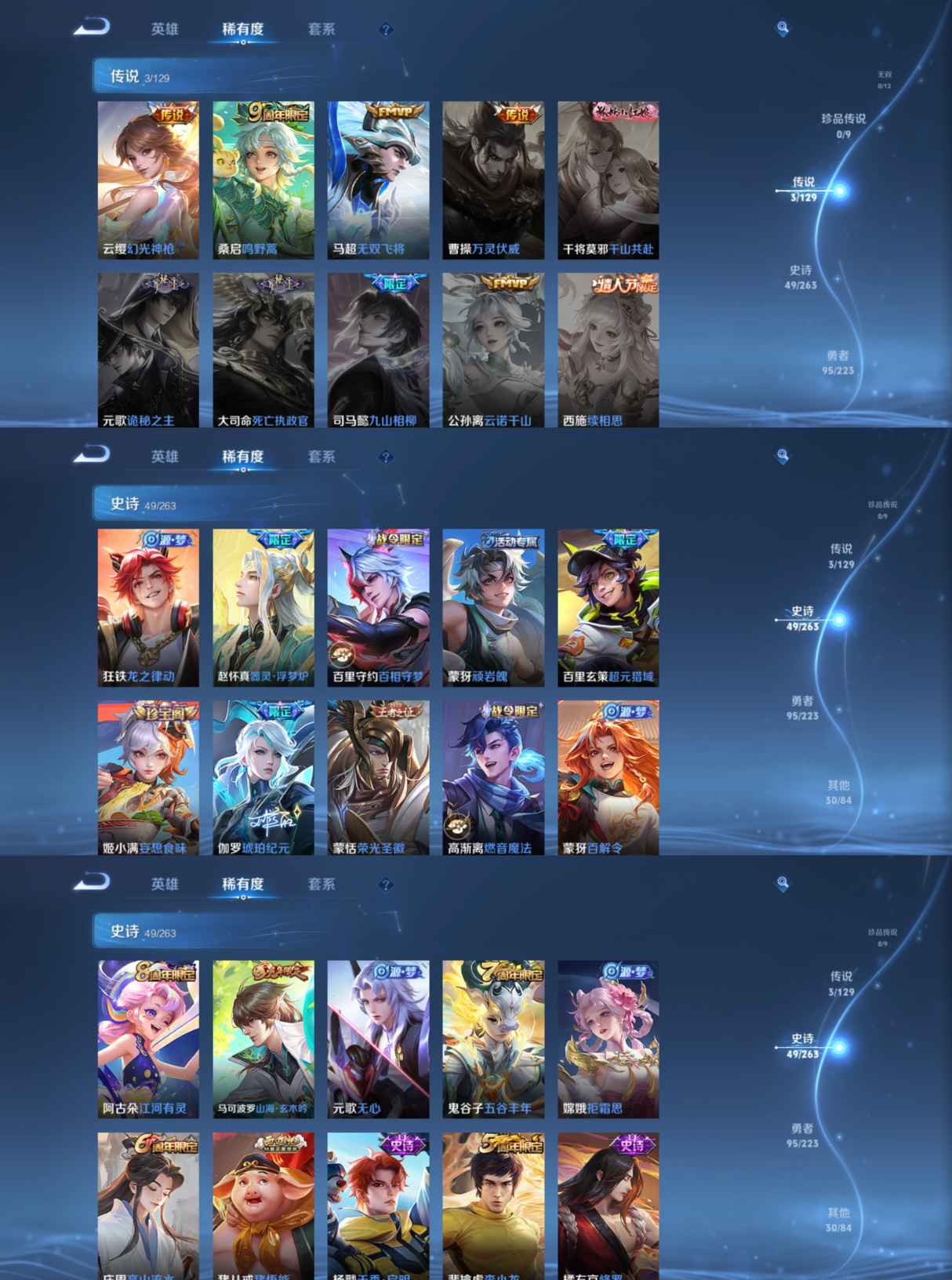 贵族等级:v5皮肤数:177生肖限定1 传说品质3 英雄数:125
