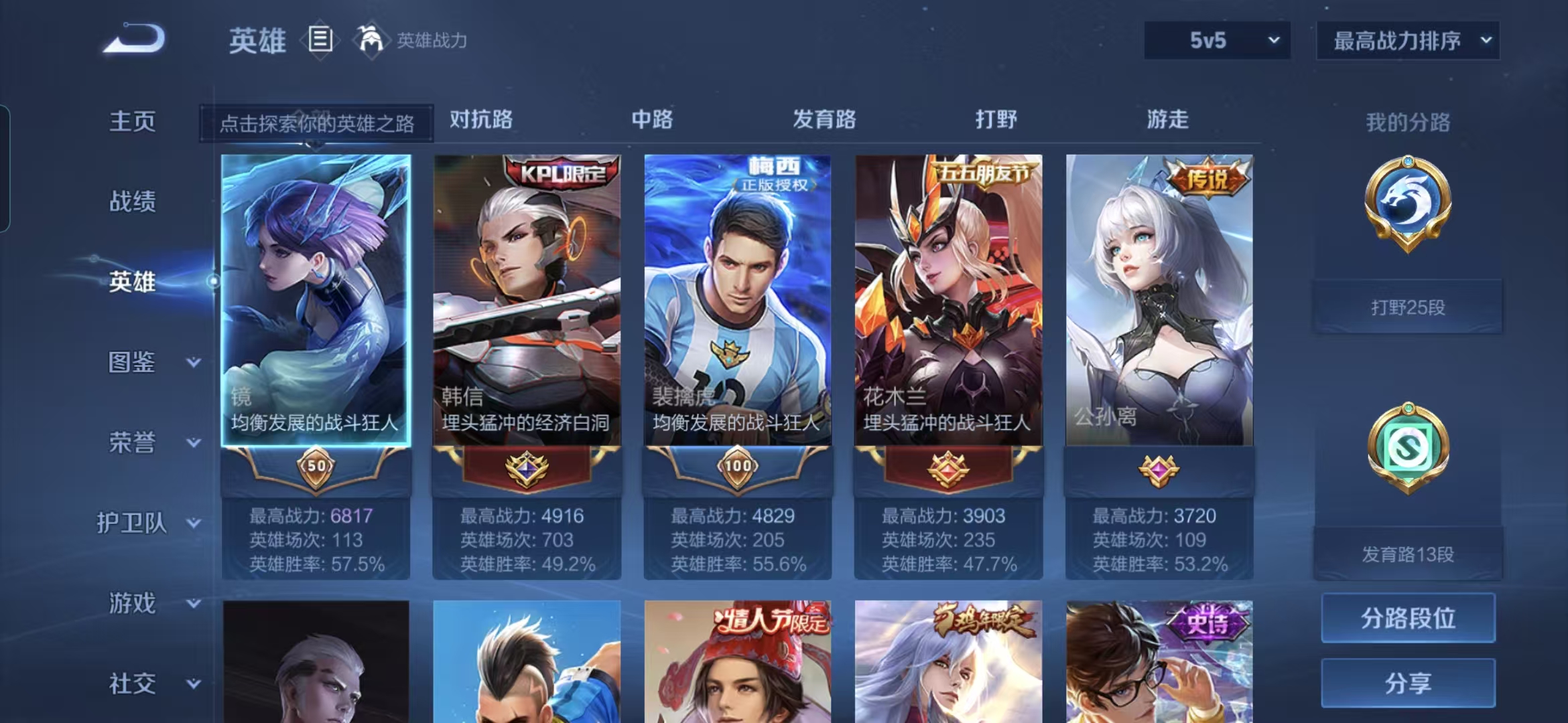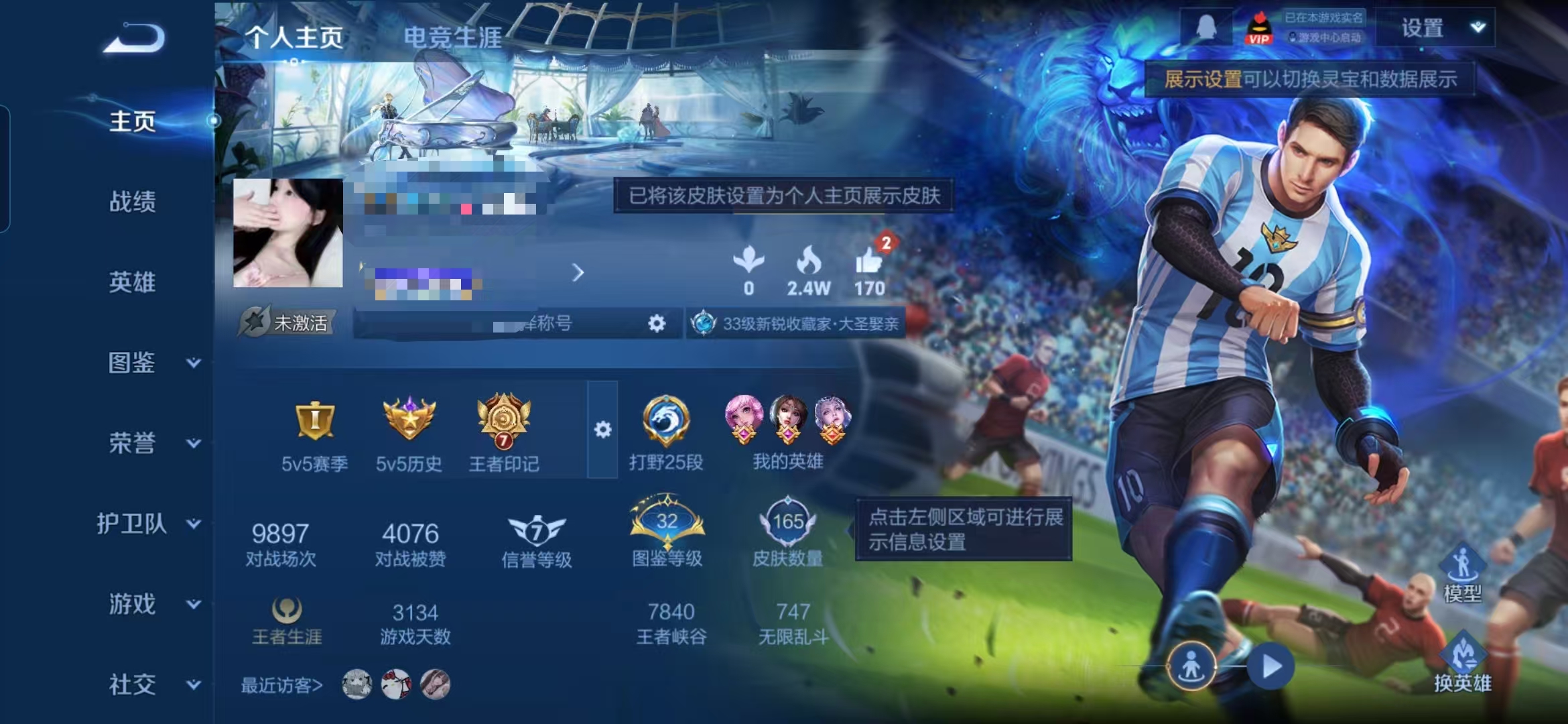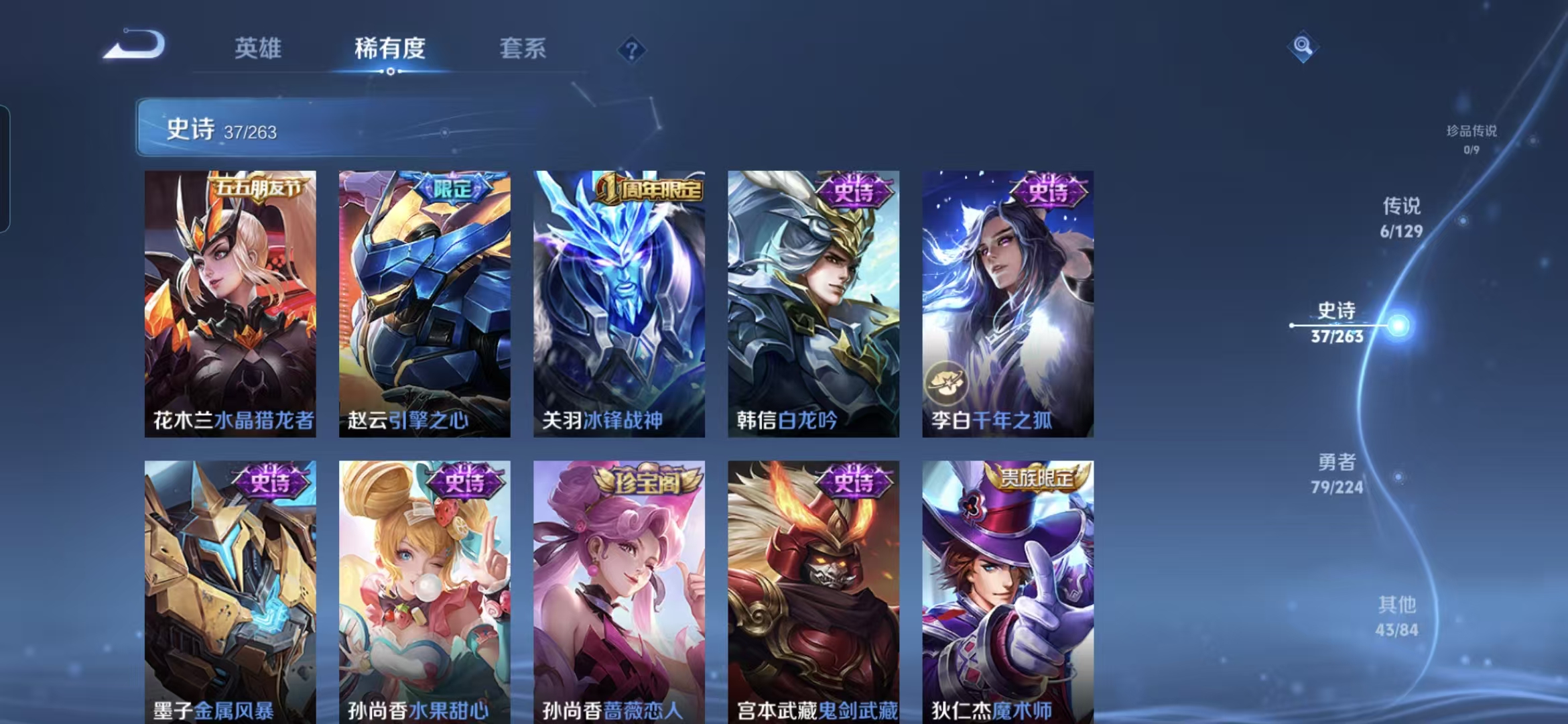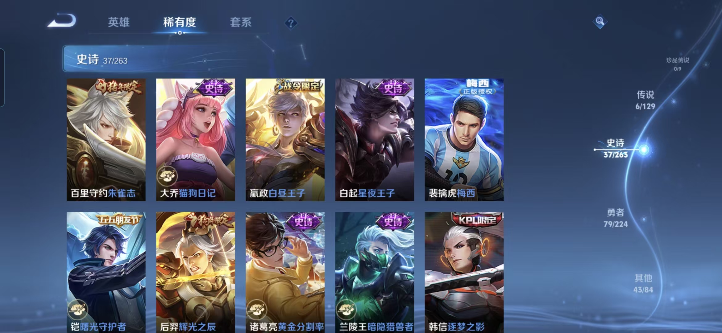 贵族等级:v7皮肤数:165生肖限定5 传说品质6 情人节限定2 英雄数:122