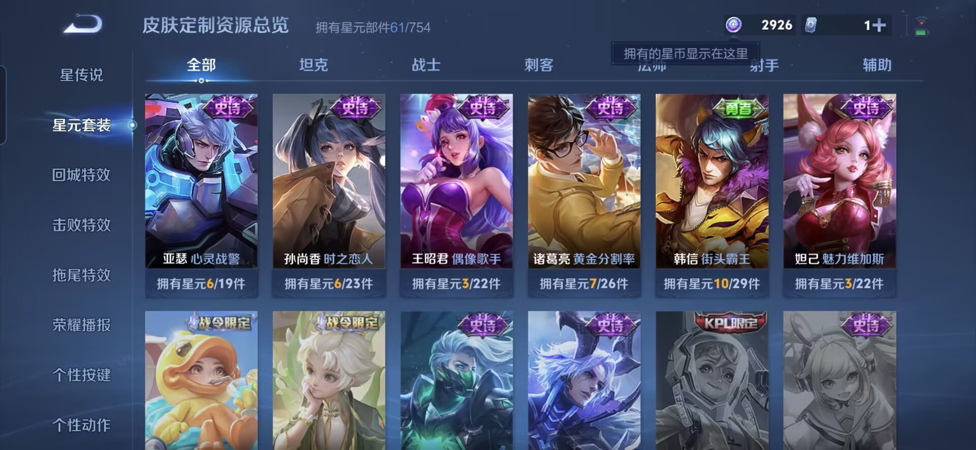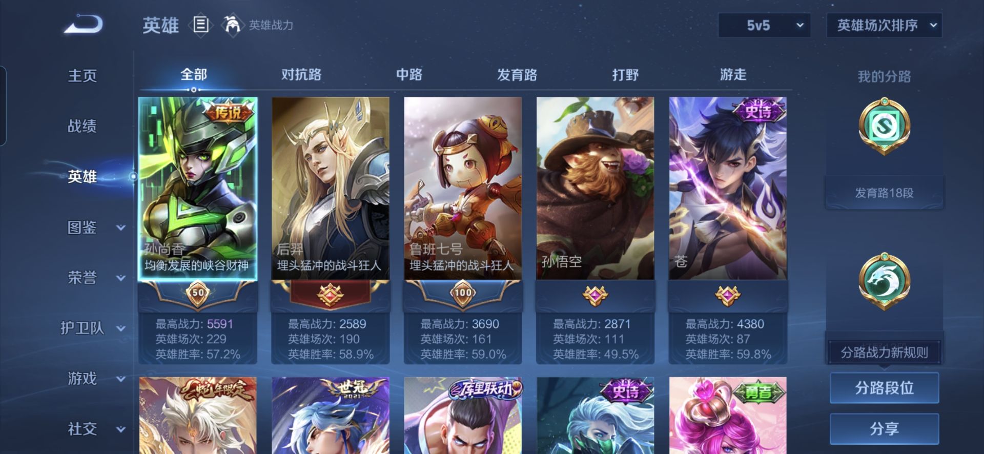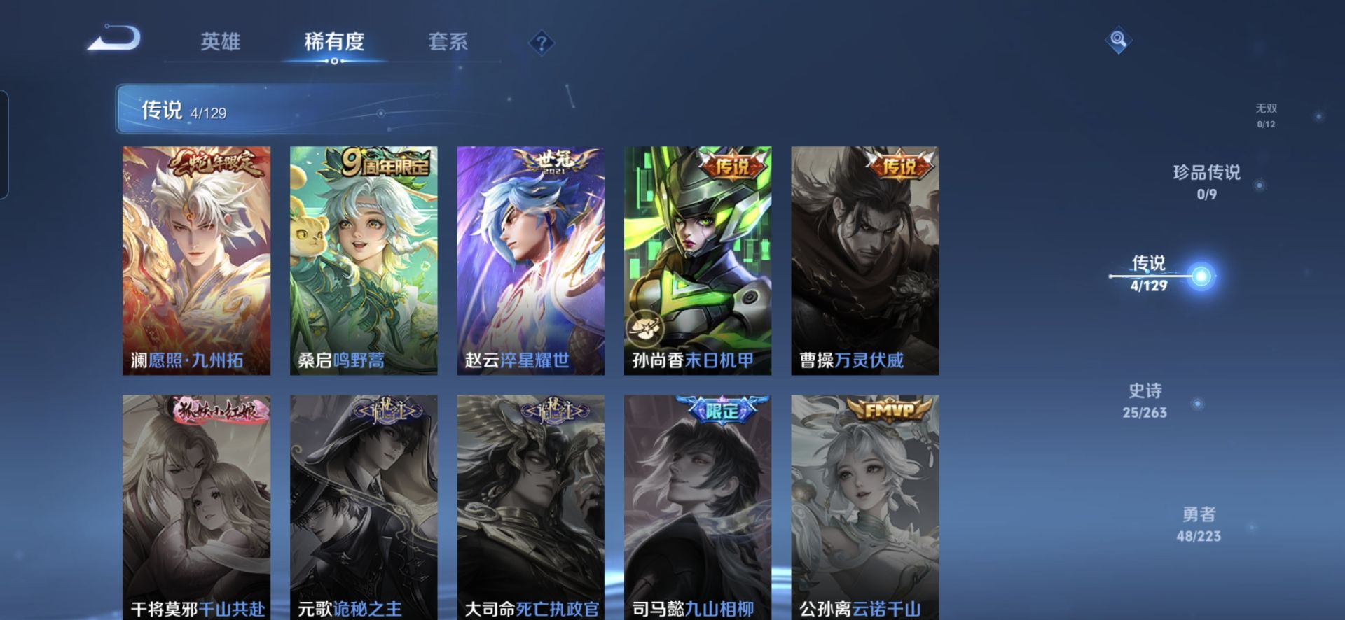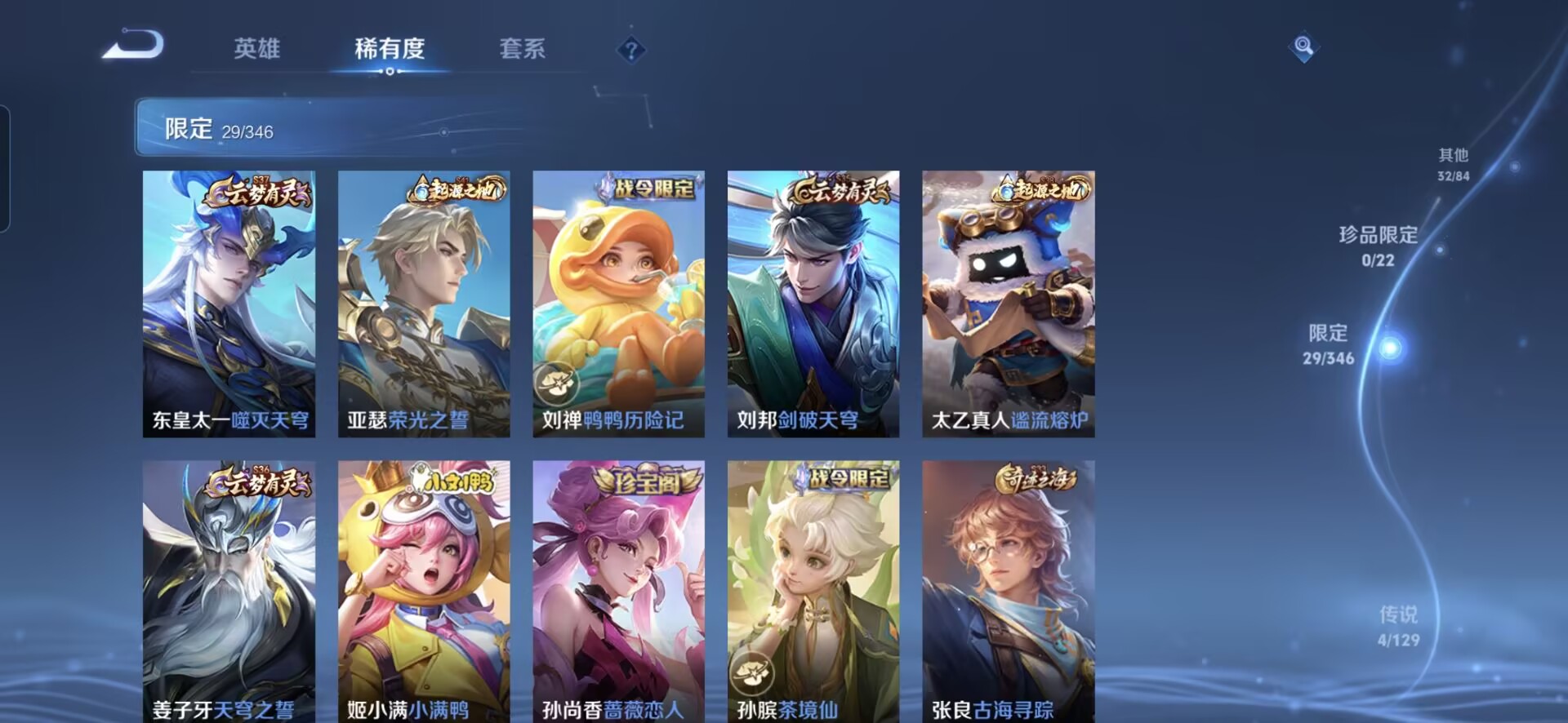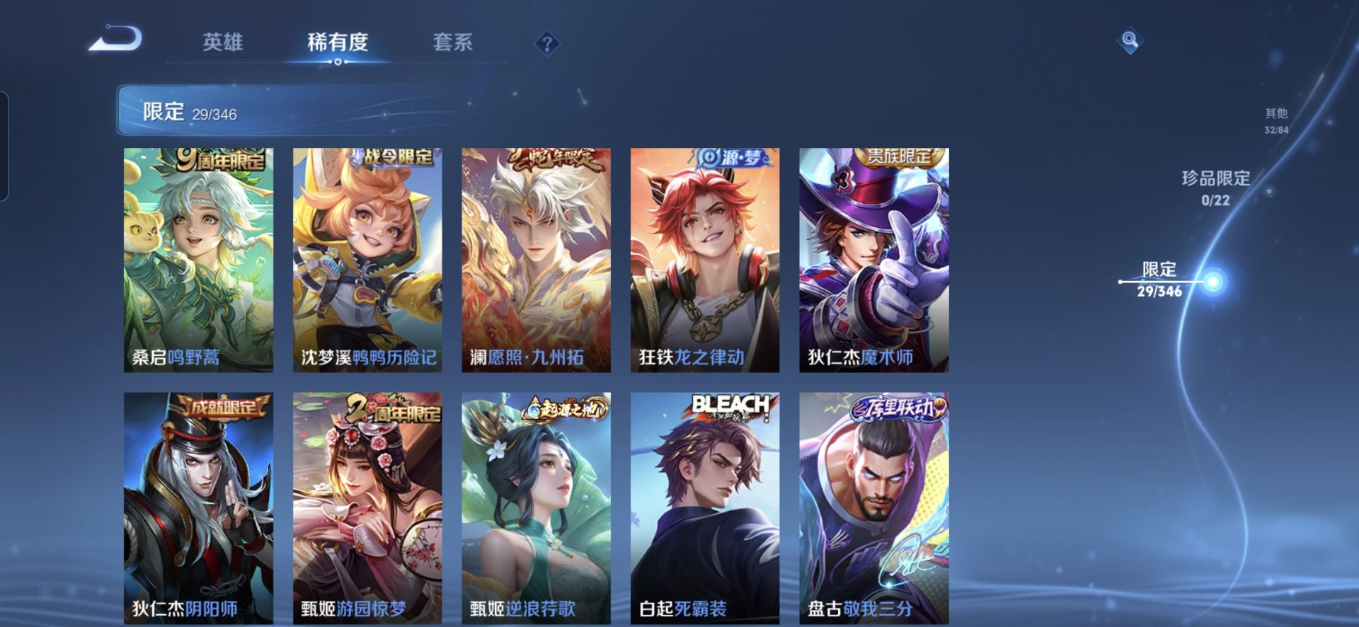 贵族等级:v6皮肤数:109传说品质4 生肖限定1 英雄数:110