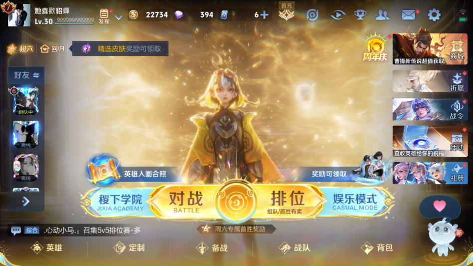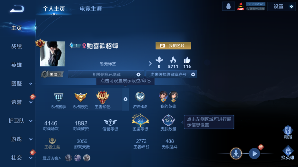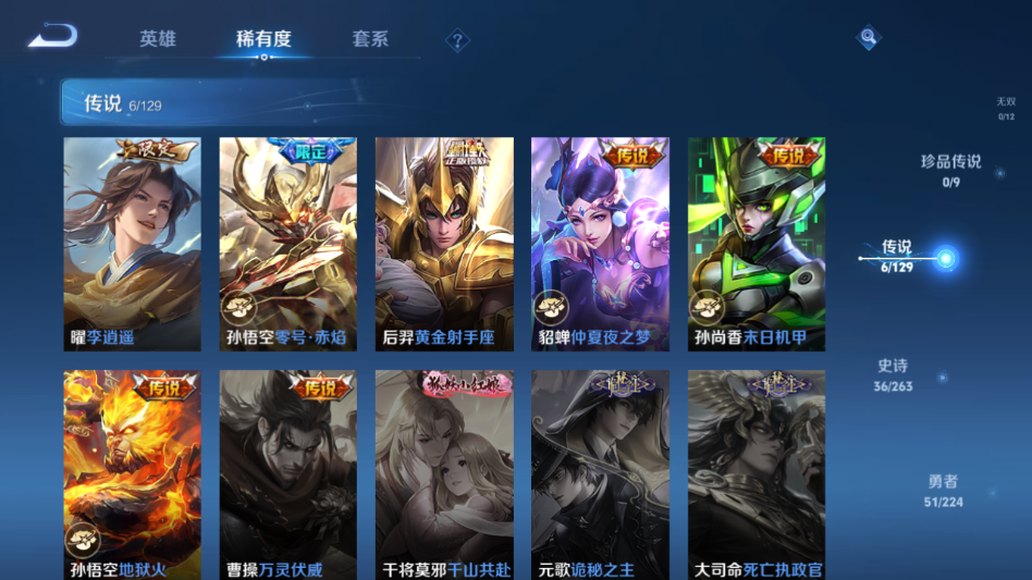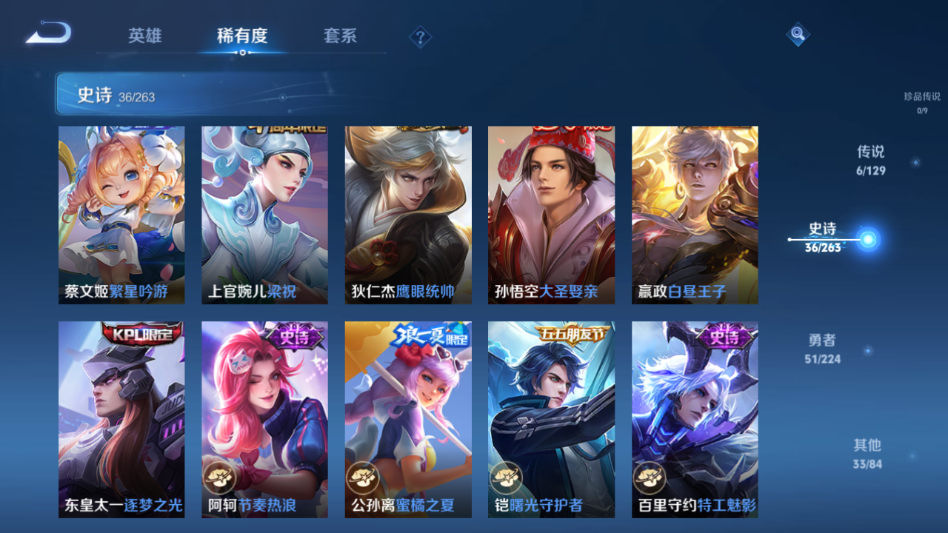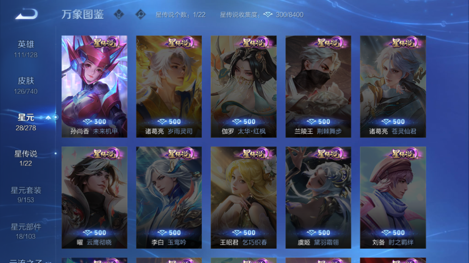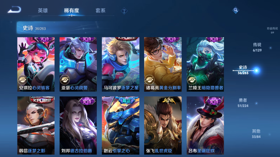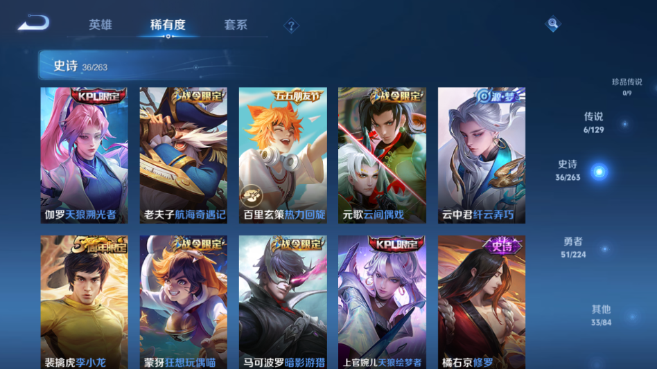 贵族等级:v7皮肤数:126传说品质6 情人节限定1 英雄数:111