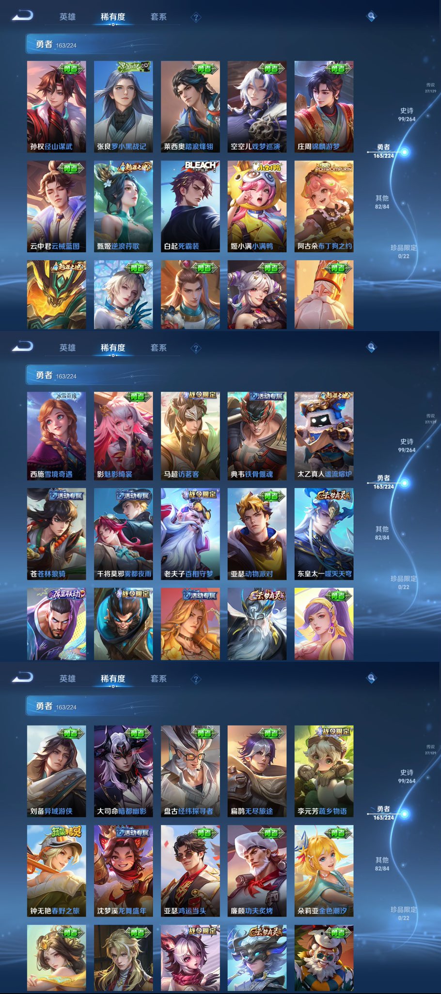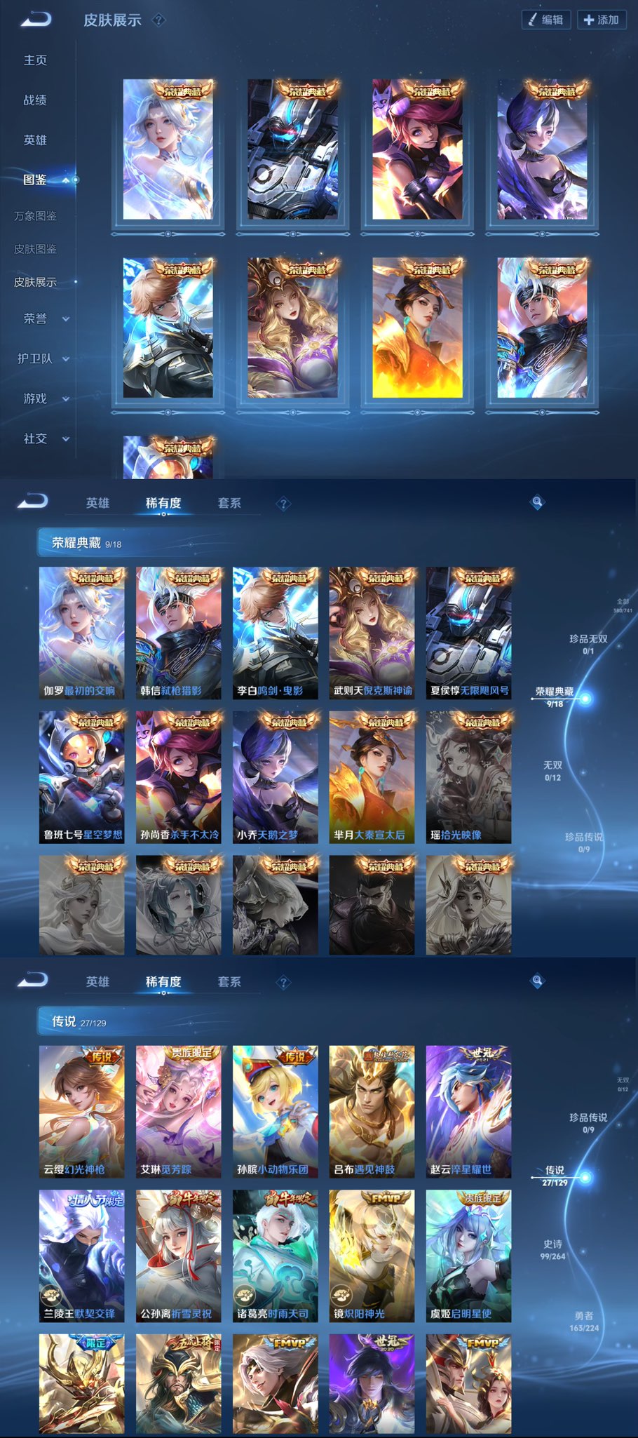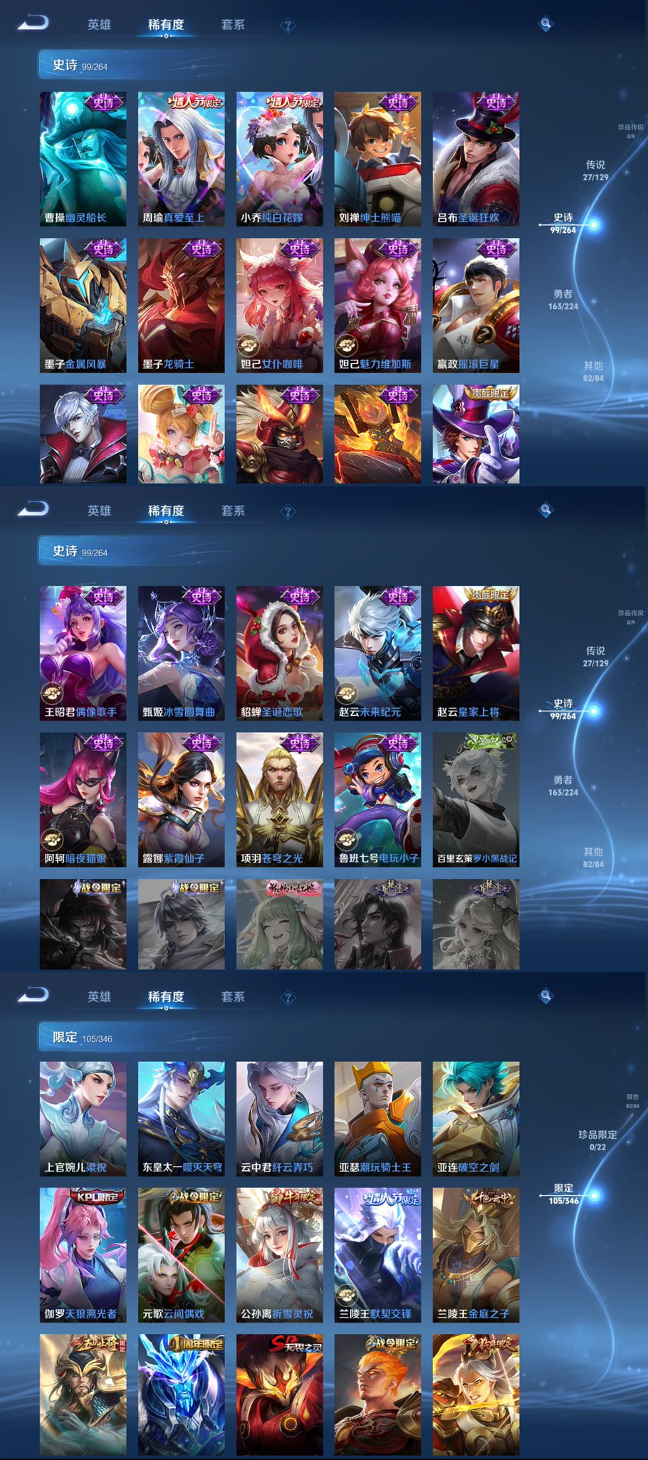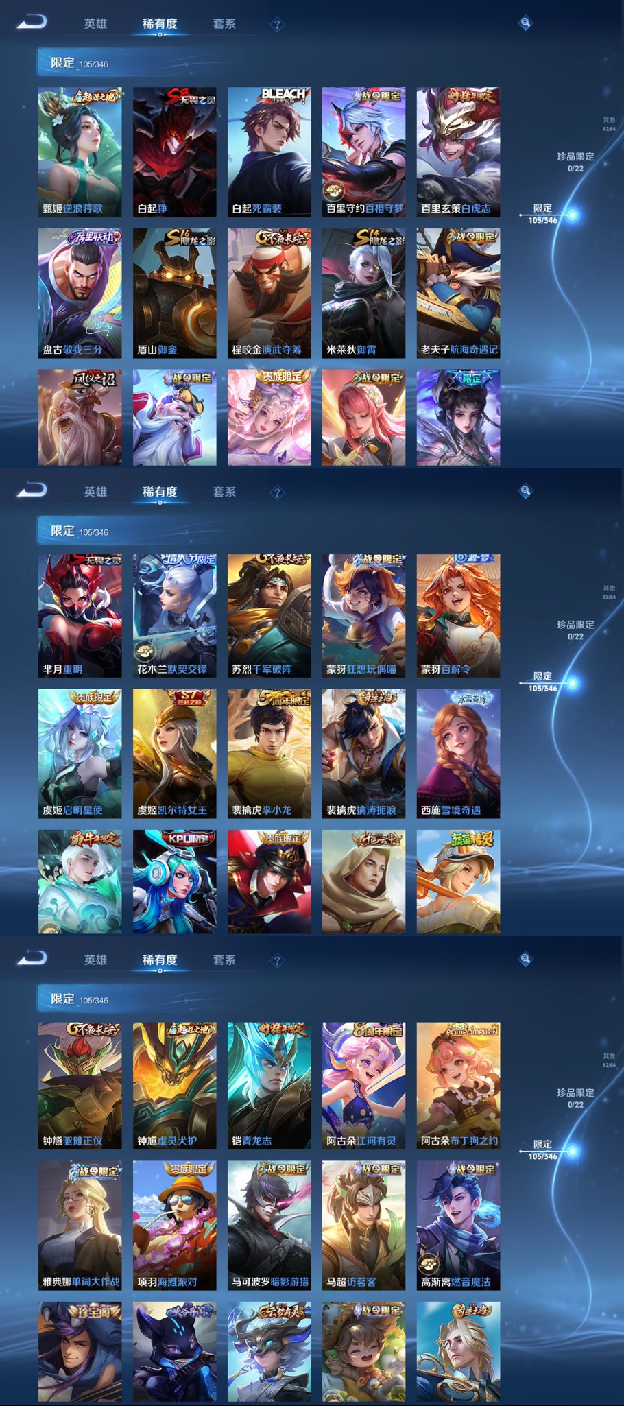 传说品质_后羿_黄金射手座传说品质_艾琳_觅芳踪传说品质_关羽_武圣传说品质_诸葛亮_时雨天司传说品质_兰陵王_默契交锋传说品质_吕布_遇见神鼓传说品质_孙悟空_地狱火传说品质_孙悟空_零号·赤焰传说品质_云缨_幻光神枪传说品质_李白_凤求凰传说品质_武则天_海洋之心传说品质_孙膑_小动物乐团传说品质_干将莫邪_久胜战神传说品质_宫本武藏_地狱之眼传说品质_花木兰_冠军飞将传说品质_镜_炽阳神光传说品质_公孙离_祈雪灵祝传说品质_貂蝉_仲夏夜之梦传说品质_李信_一念神魔传说品质_孙尚香_末日机甲传说品质_曜_云鹰飞将传说品质_达摩_黄金狮子座传说品质_狄仁杰_超时空战士传说品质_虞姬_云霓雀翎传说品质_虞姬_启明星使传说品质_百里玄策_白虎志传说品质_赵云_淬星耀世