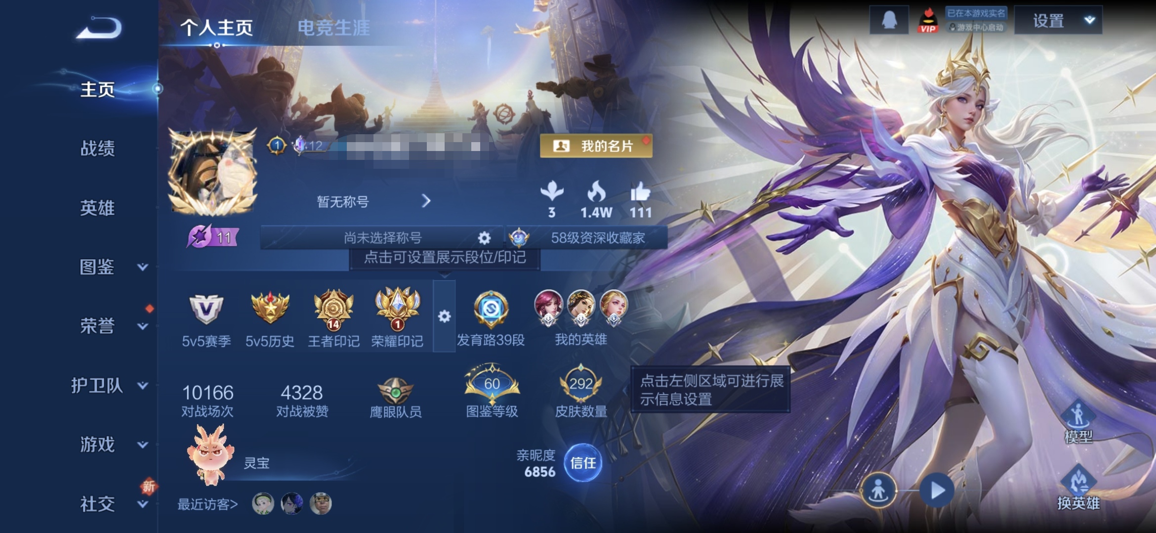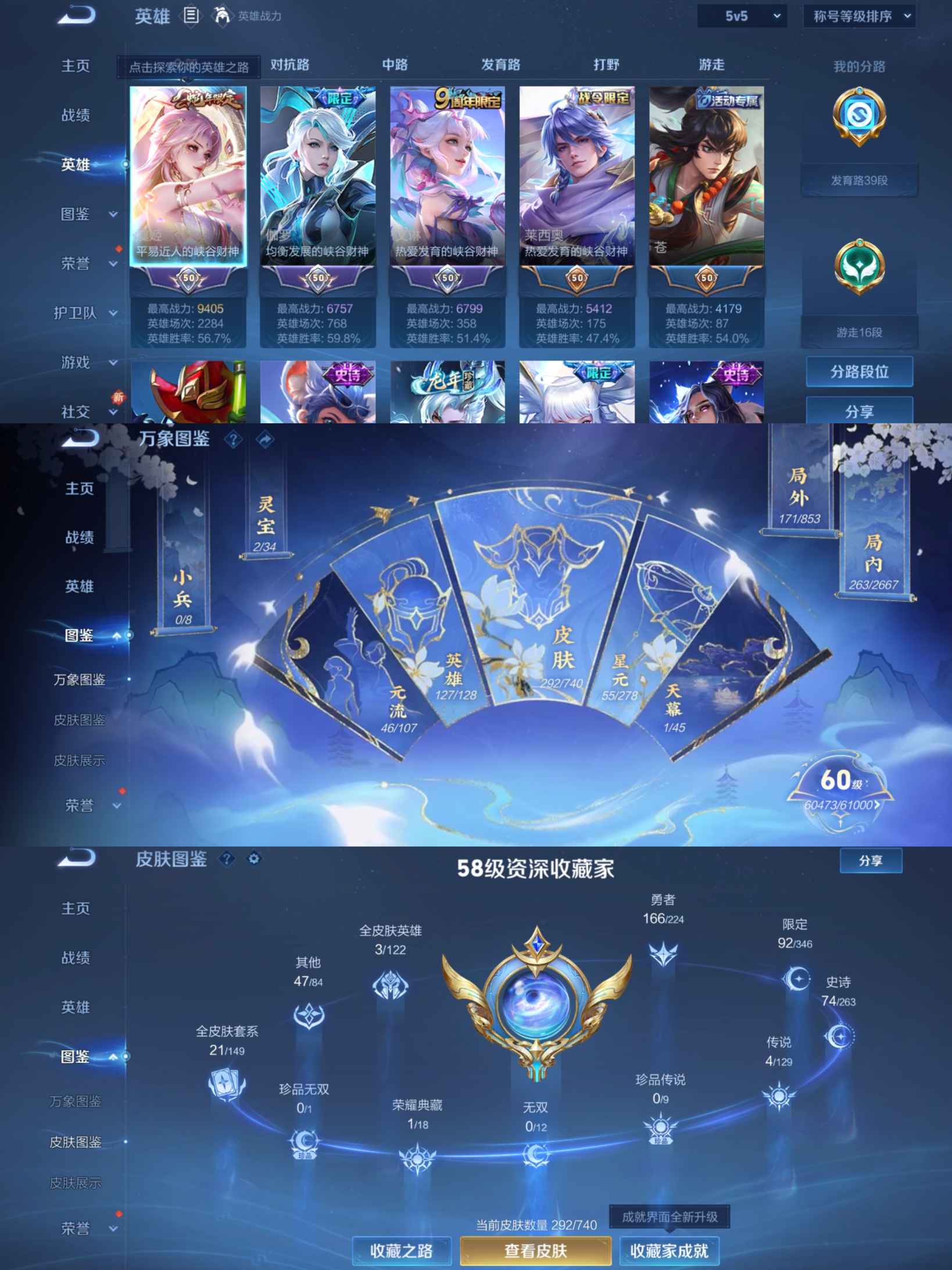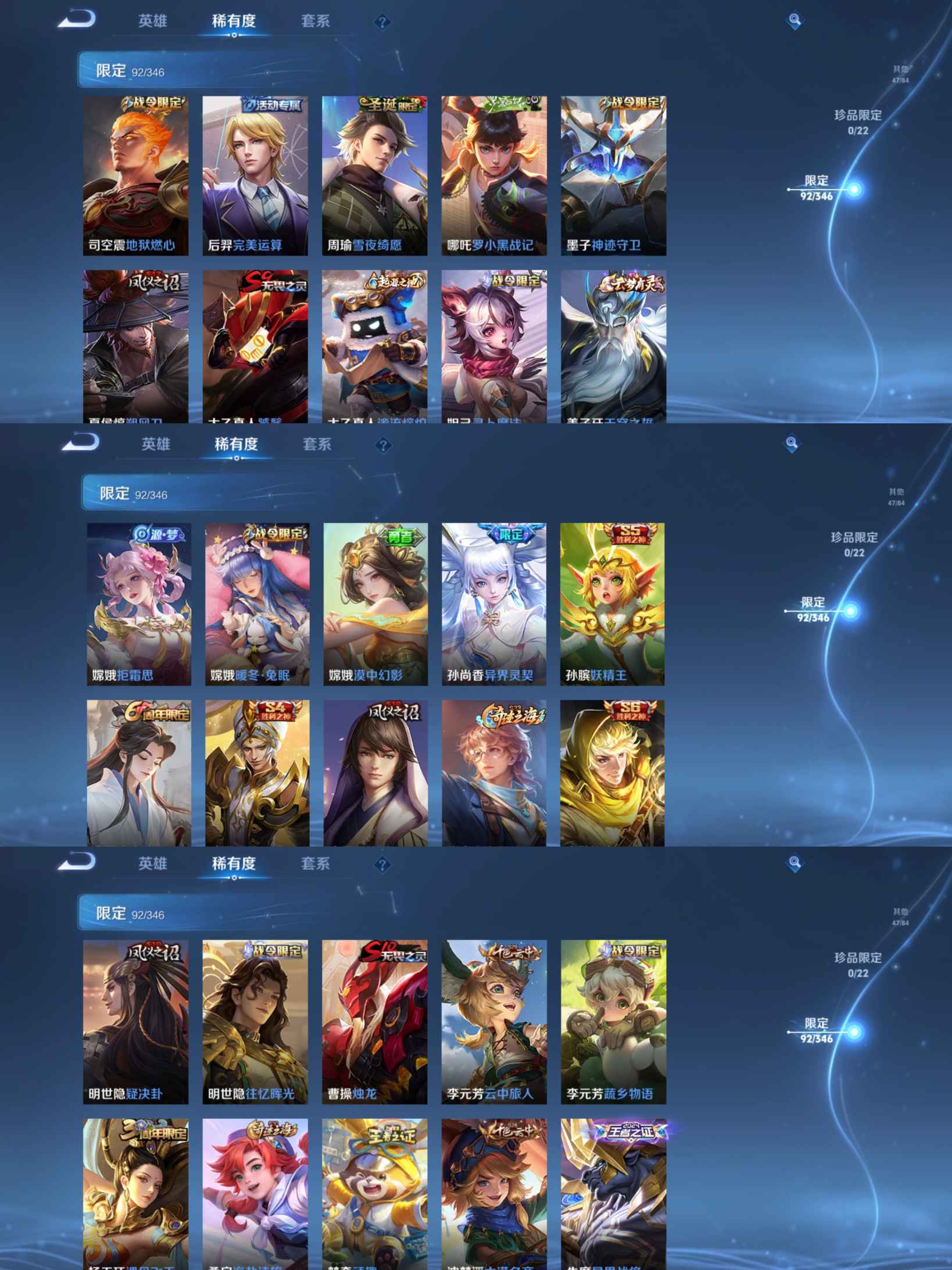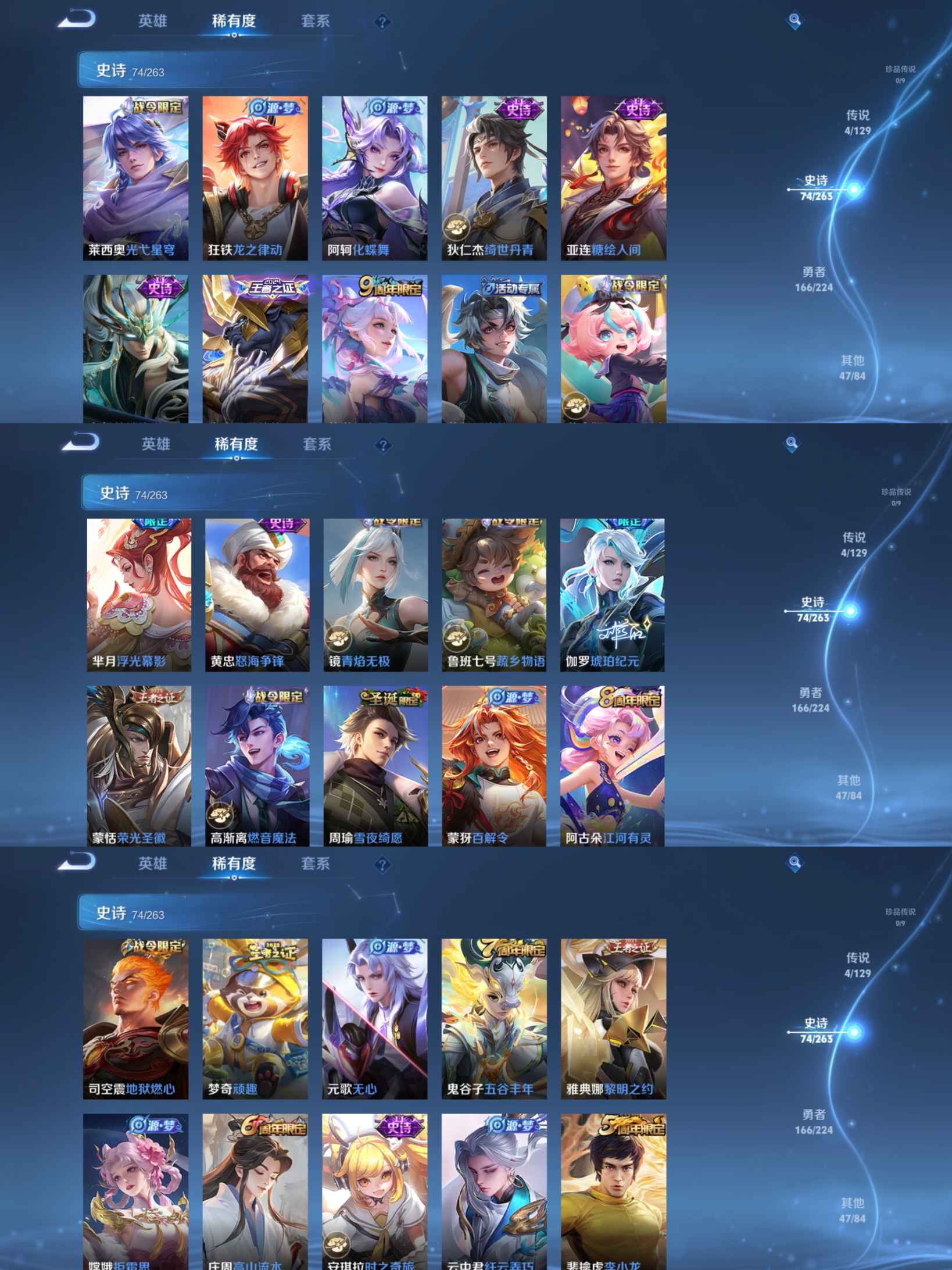 贵族等级:v7皮肤数:293传说品质4 荣耀典藏1 生肖限定1 英雄数:127