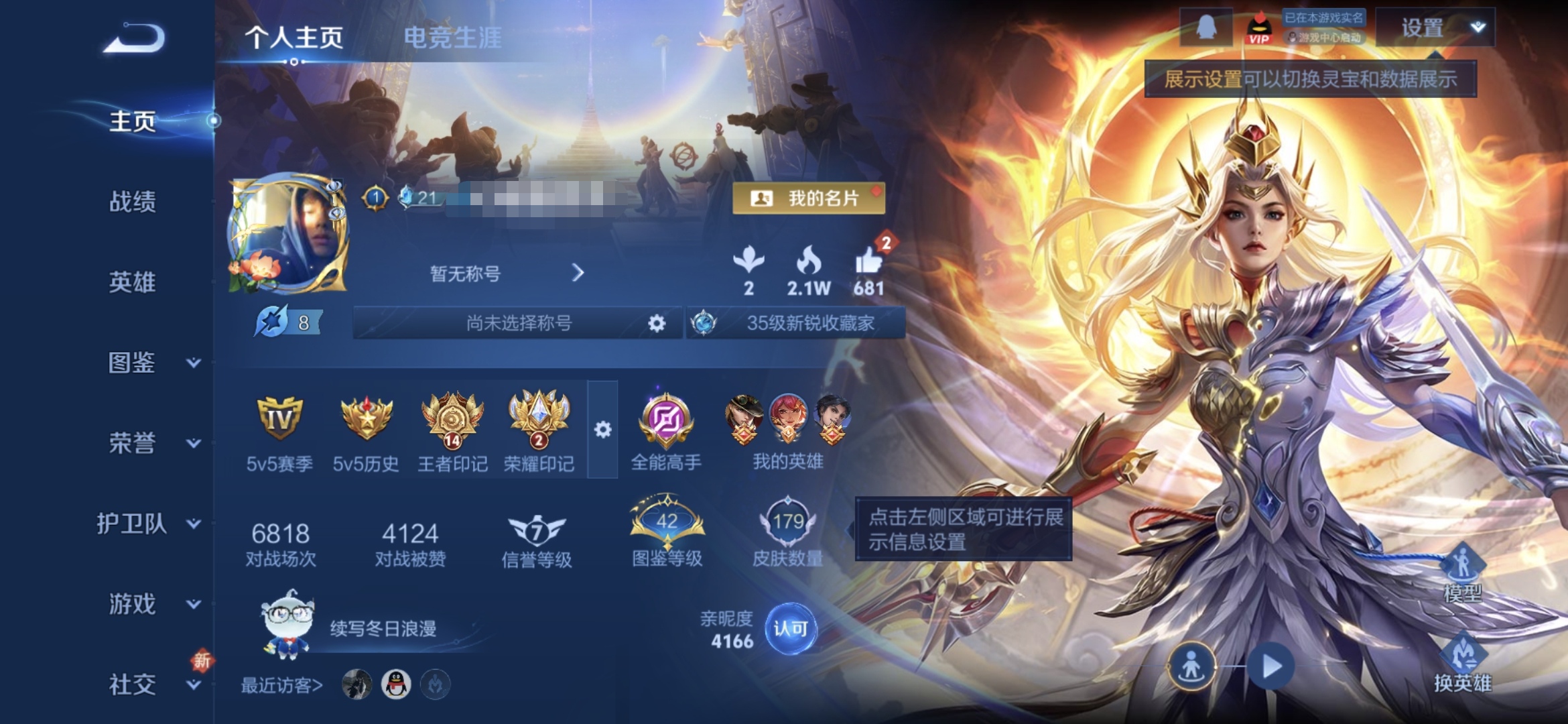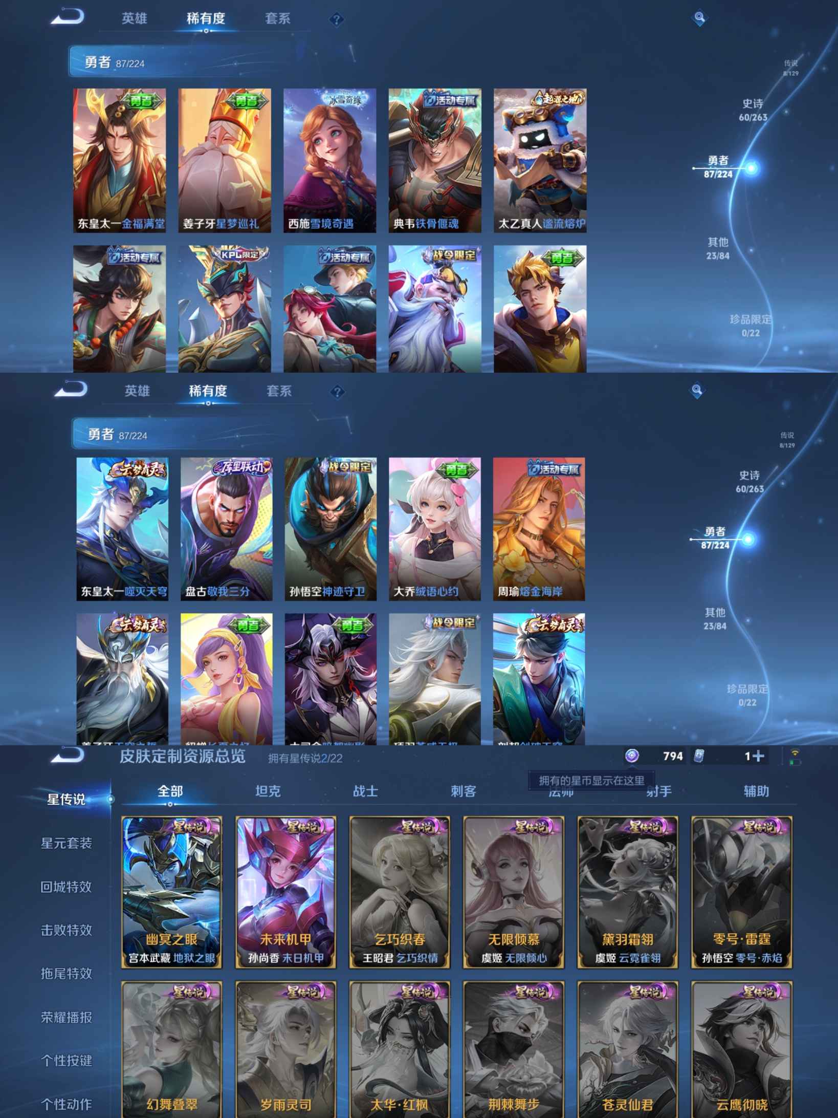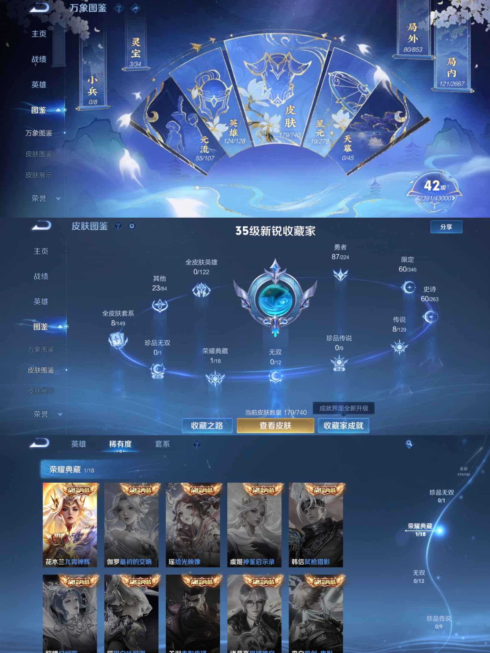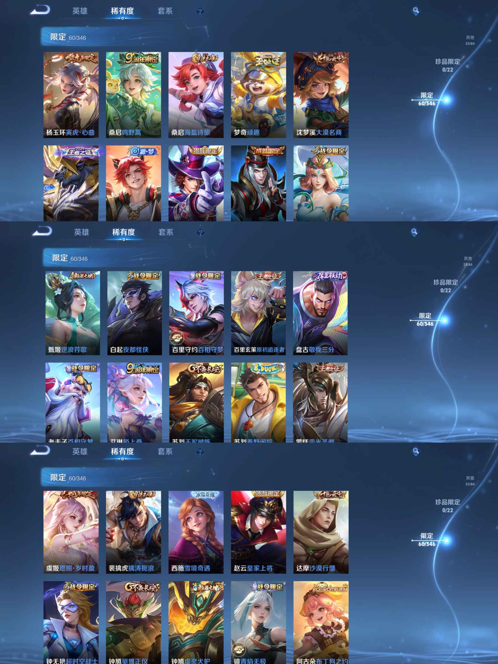 贵族等级:v7皮肤数:179生肖限定4 传说品质8 荣耀典藏1 英雄数:124