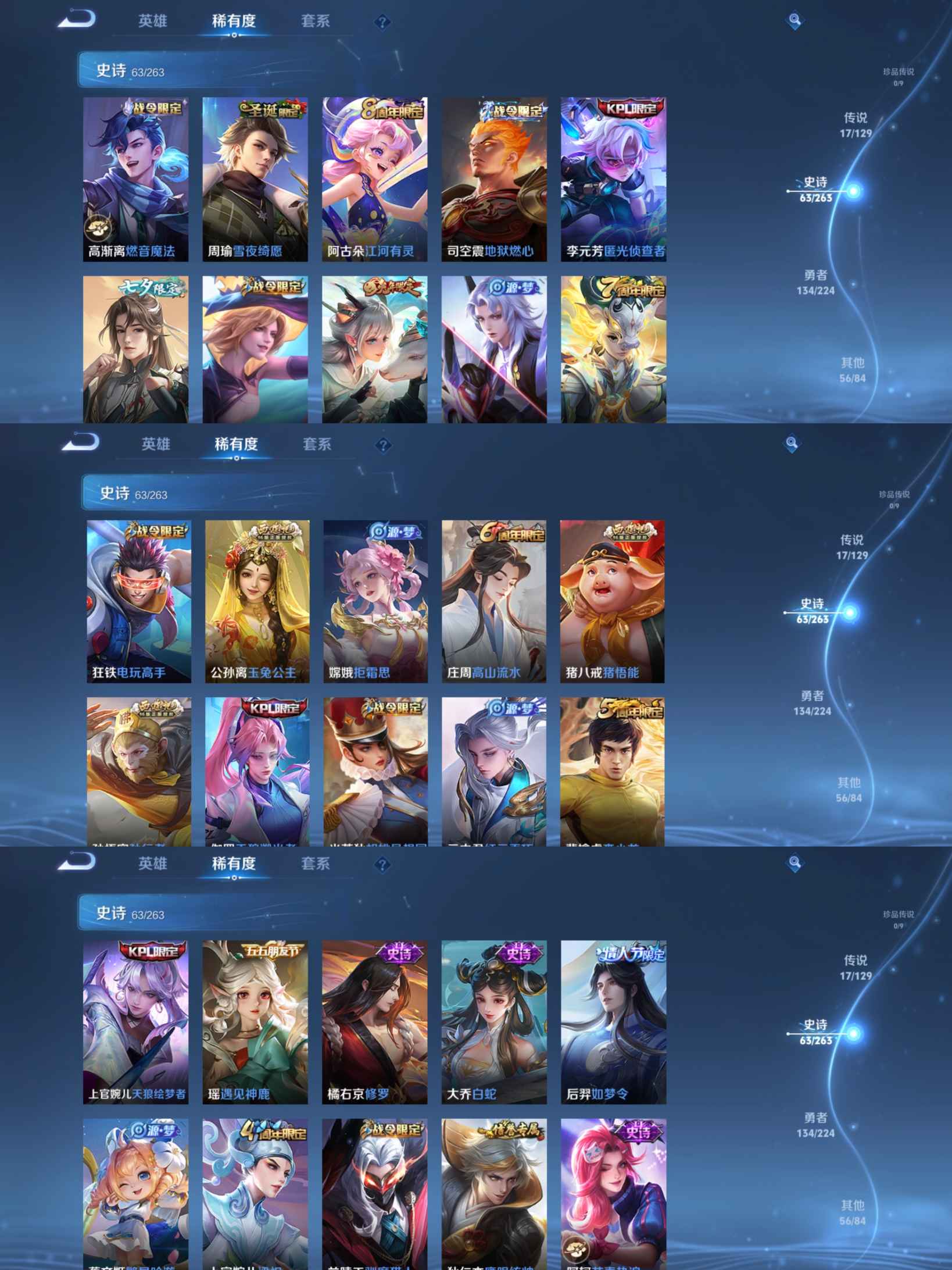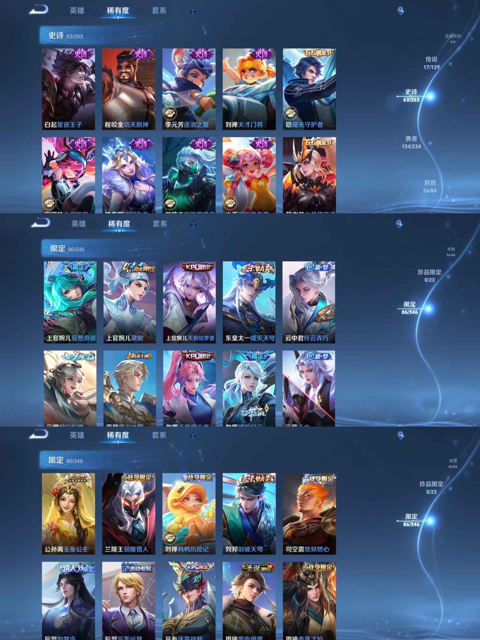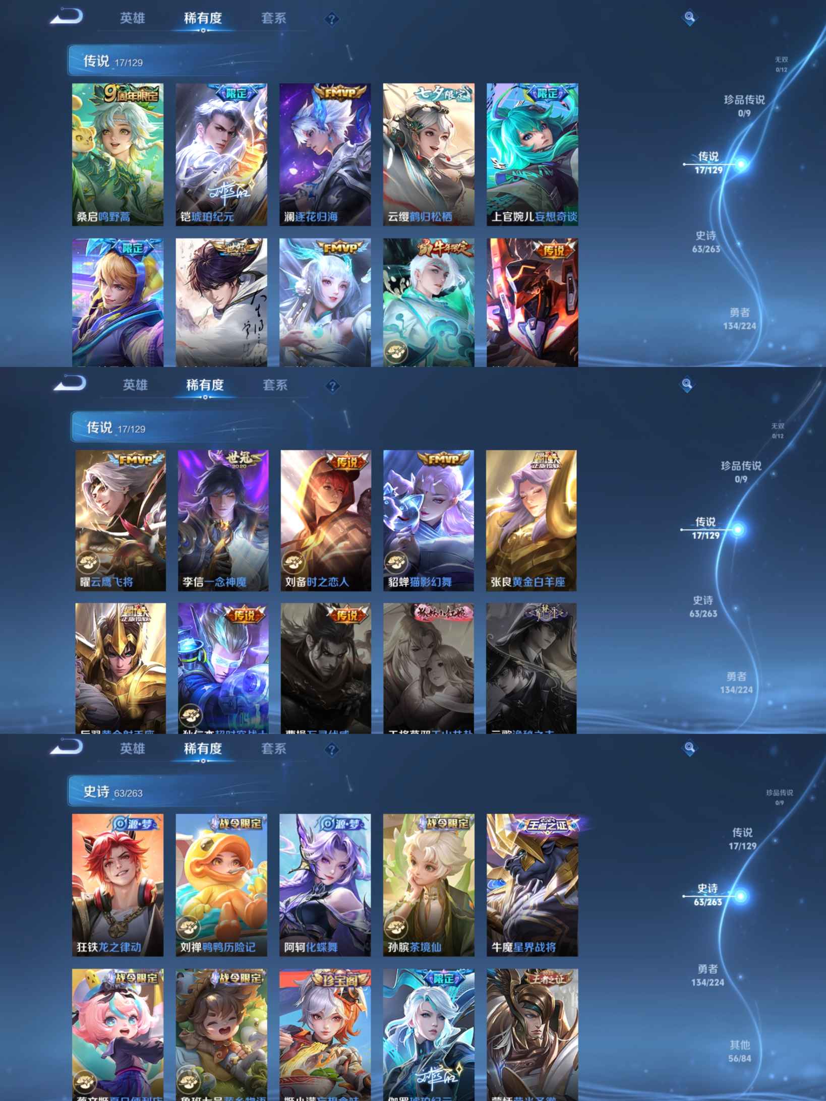 贵族等级:v7皮肤数:270传说品质17 情人节限定1 生肖限定2 英雄数:126