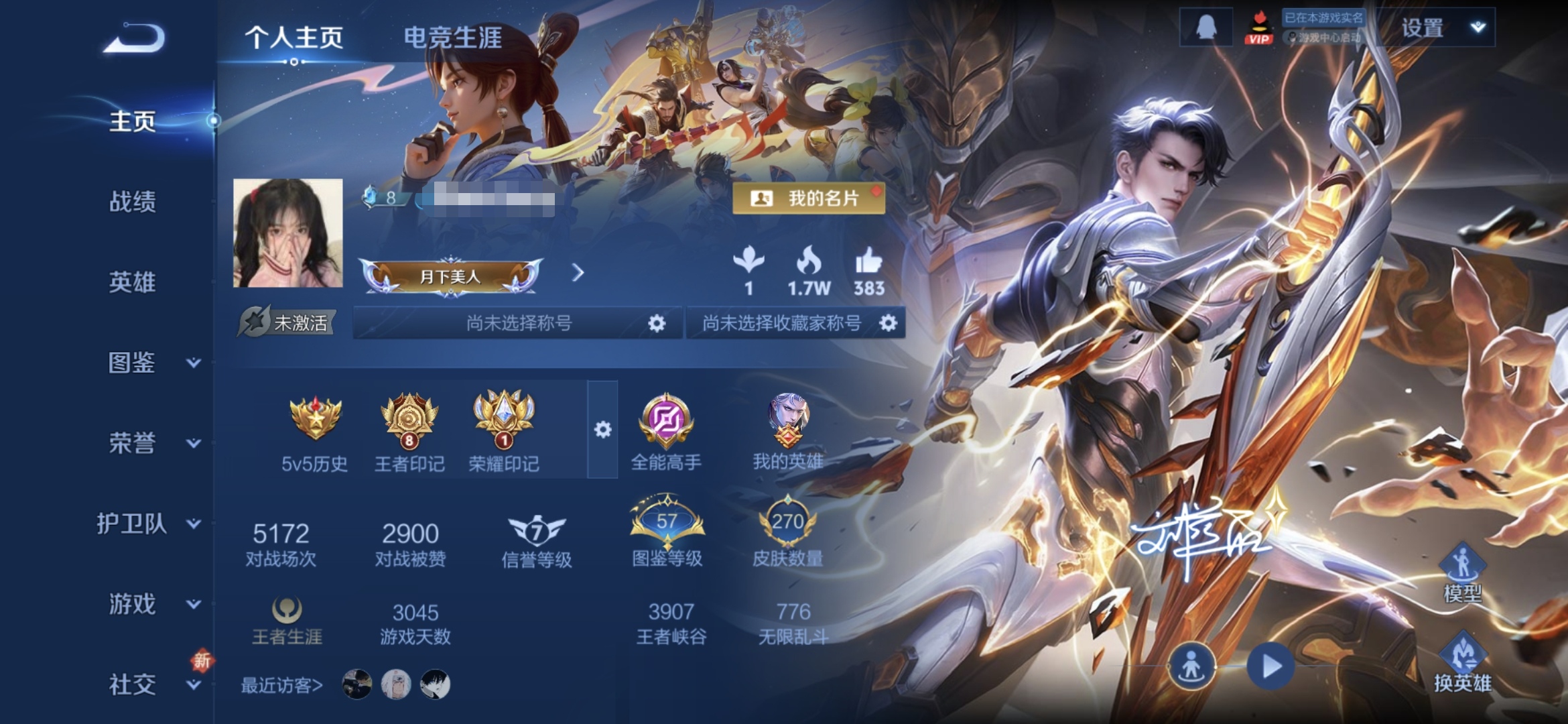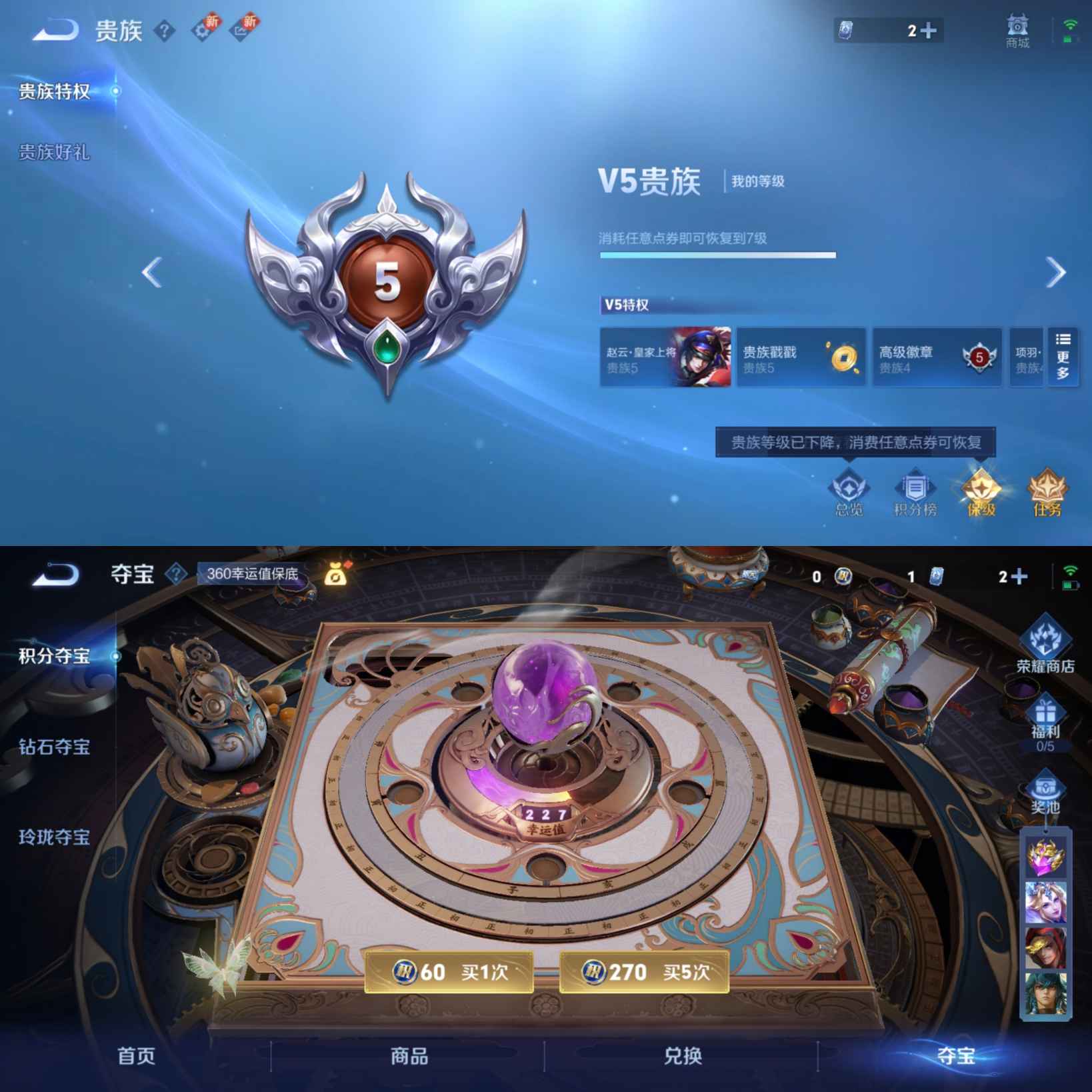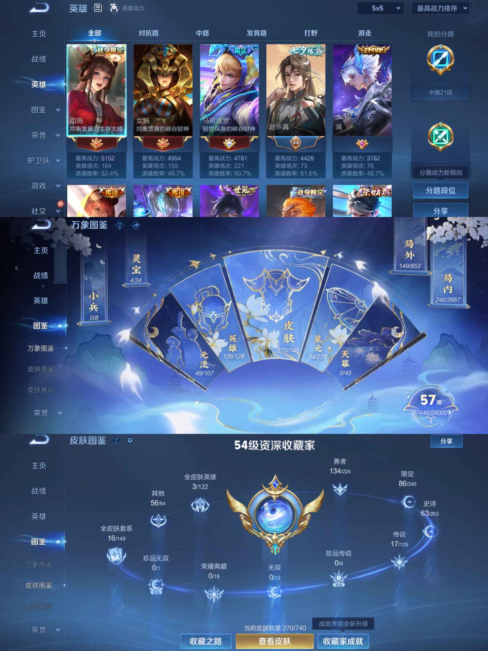 贵族等级:v7皮肤数:270传说品质17 情人节限定1 生肖限定2 英雄数:126