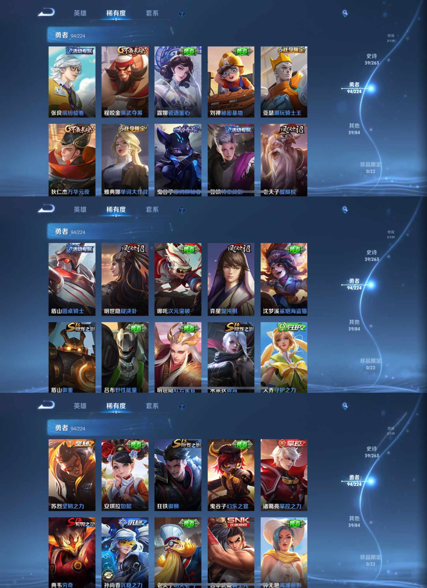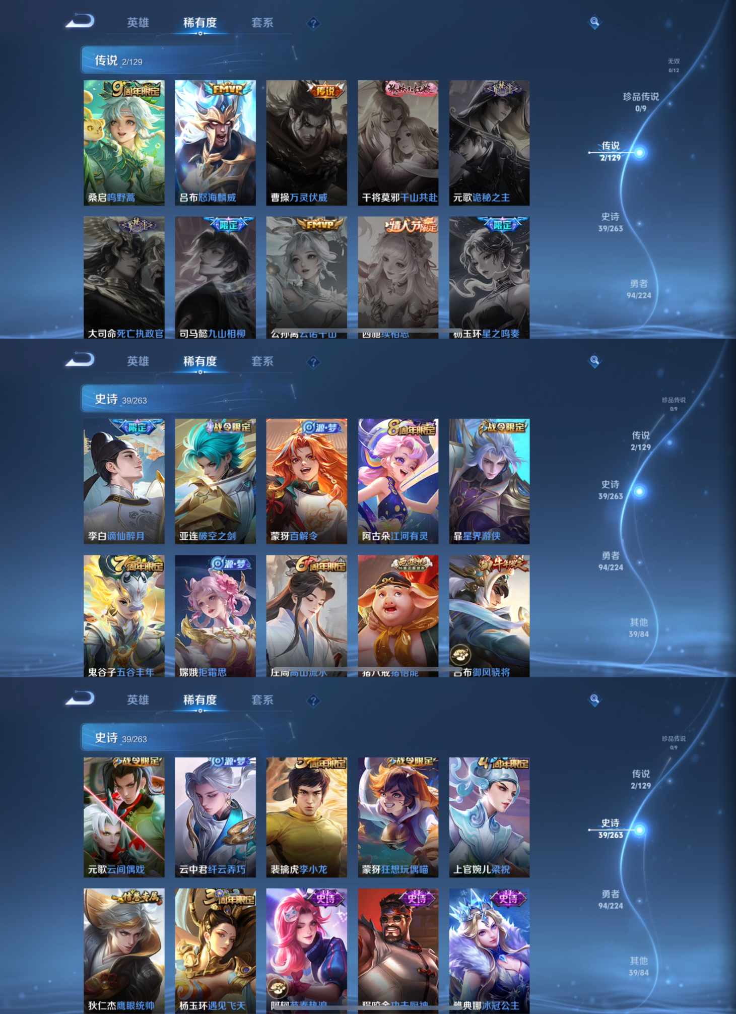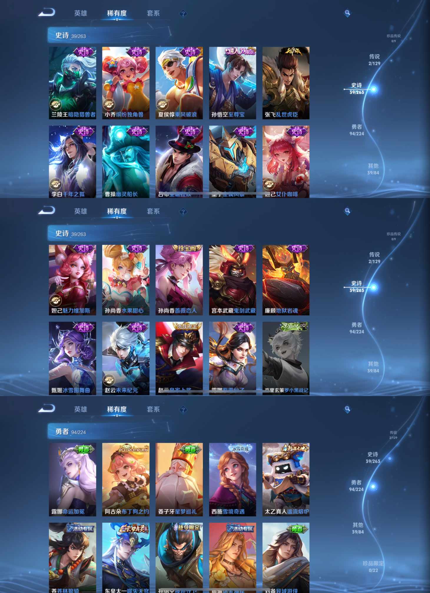 贵族等级:v5皮肤数:174生肖限定1 传说品质2 情人节限定1 英雄数:122