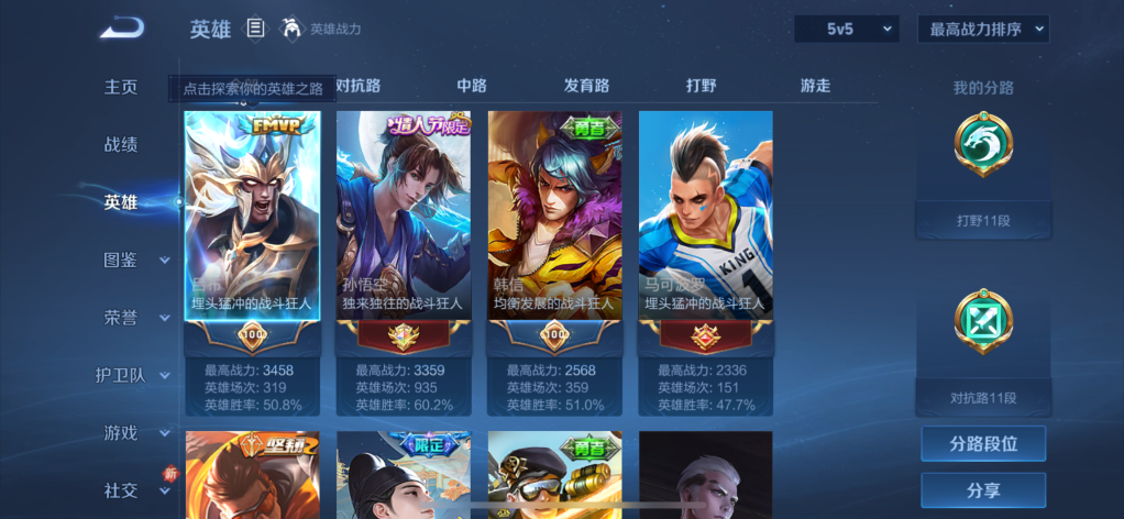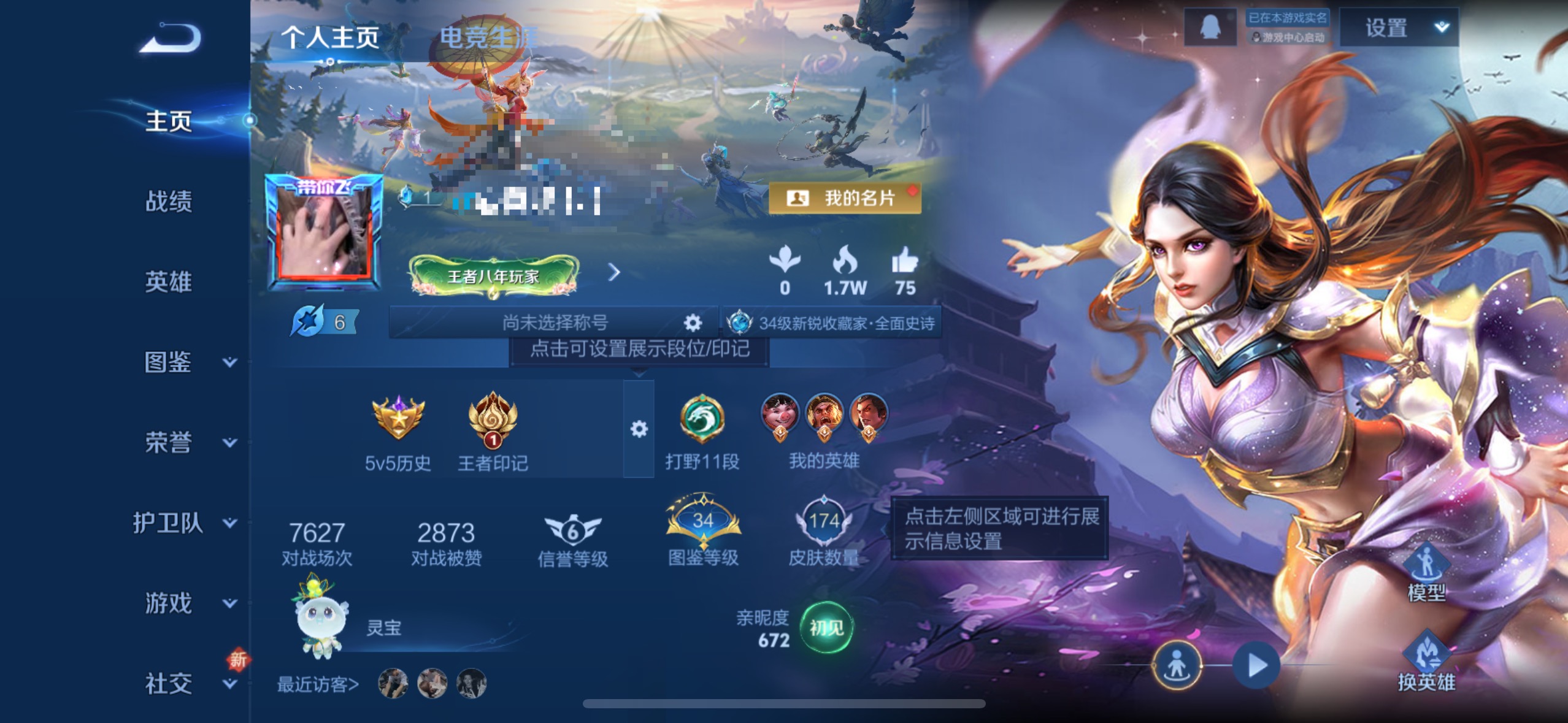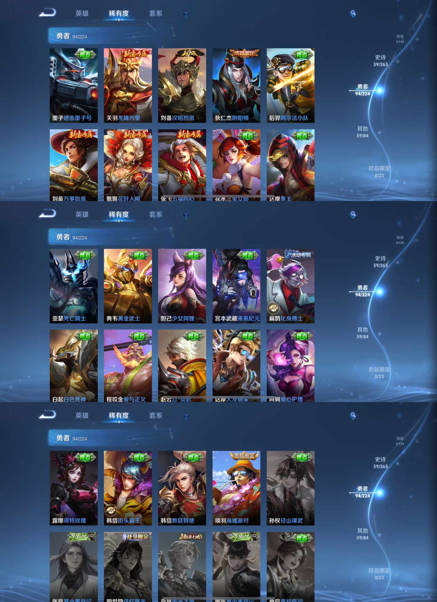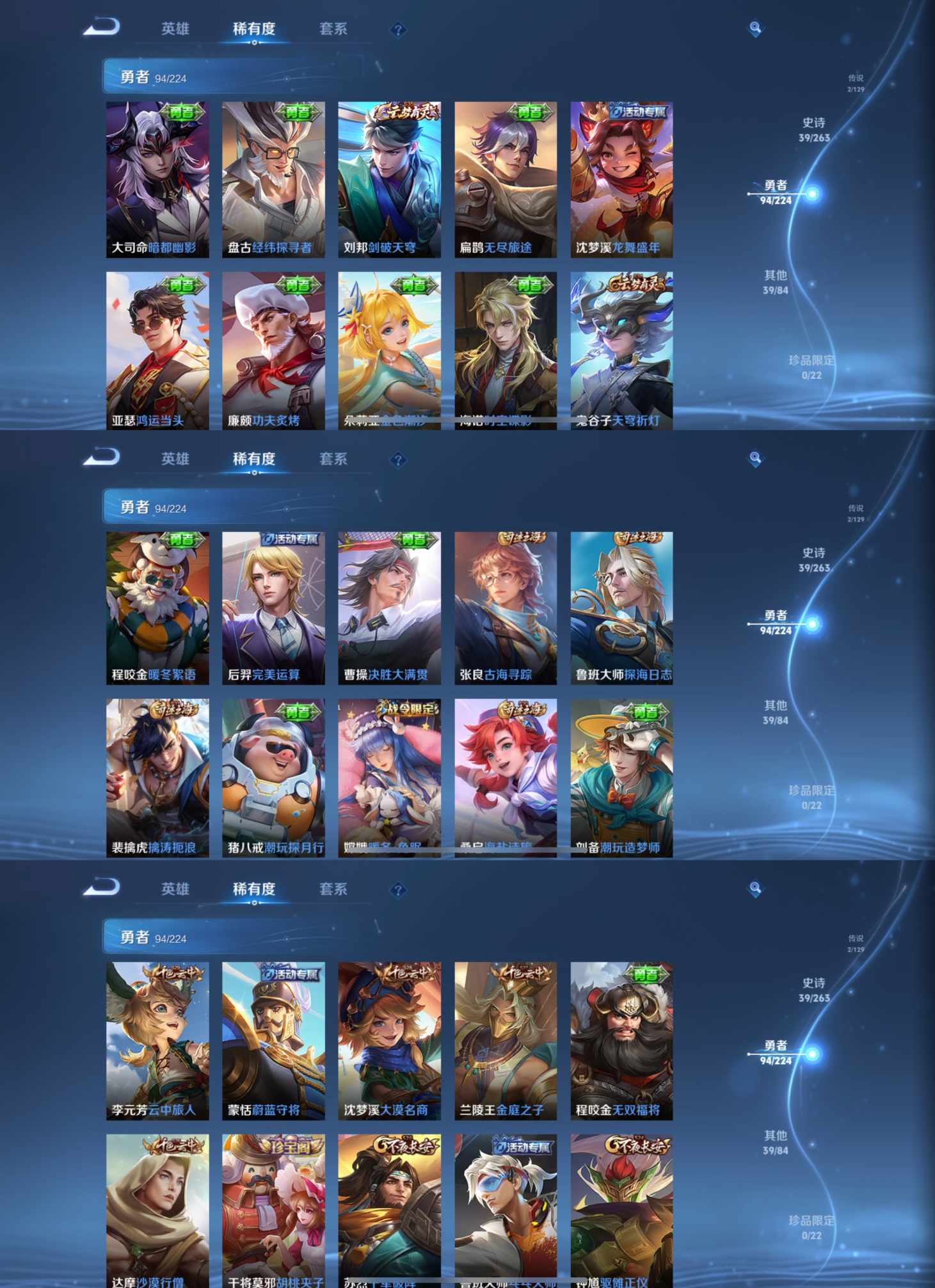 贵族等级:v5皮肤数:174生肖限定1 传说品质2 情人节限定1 英雄数:122