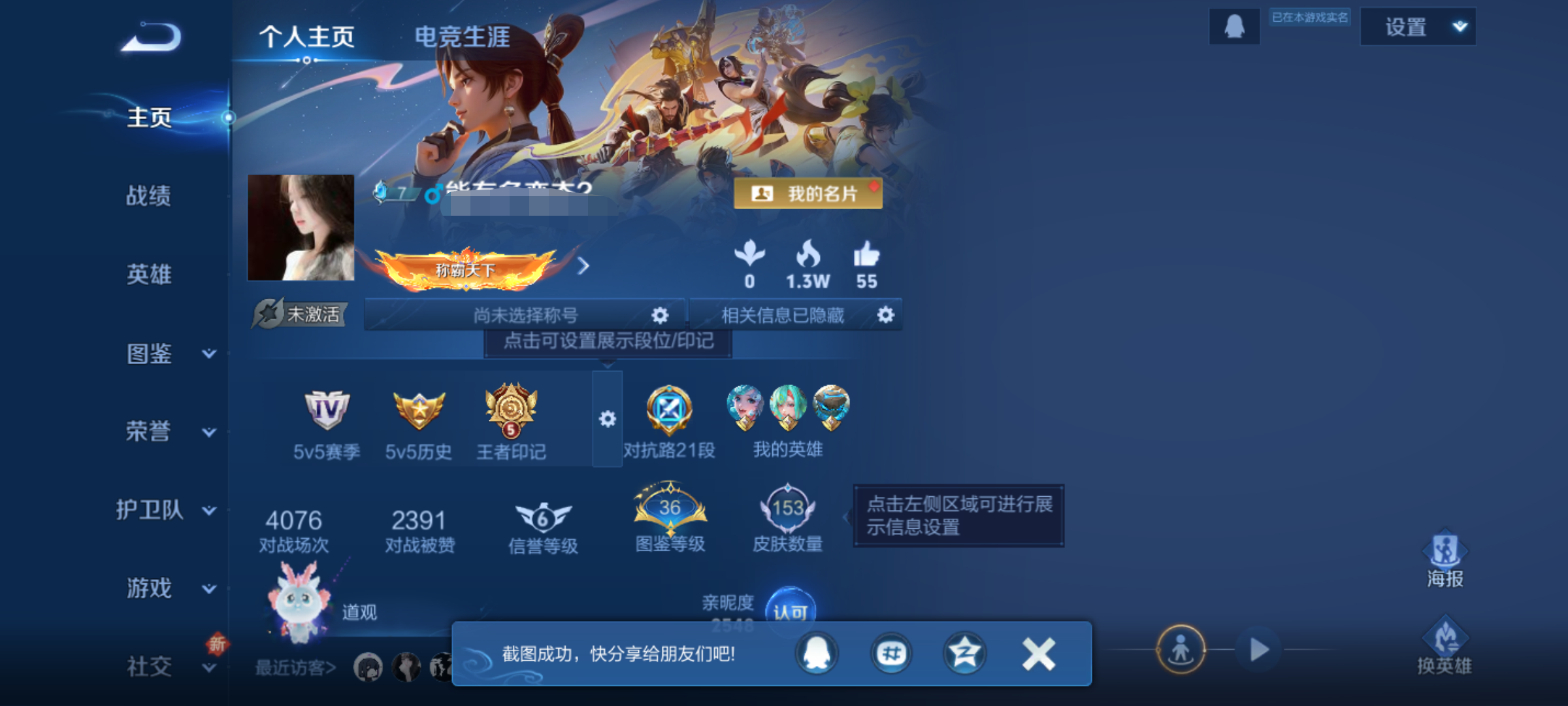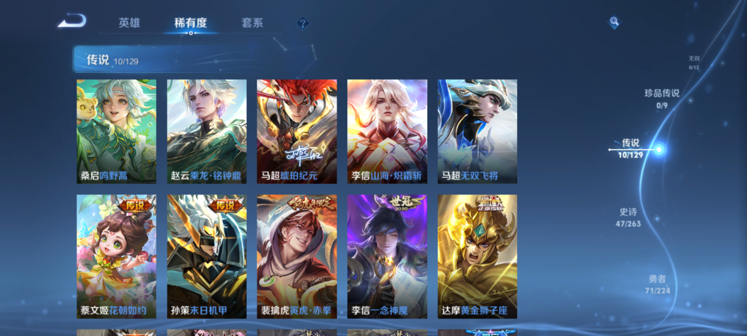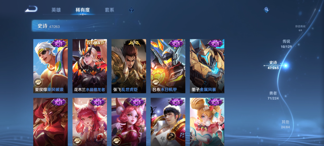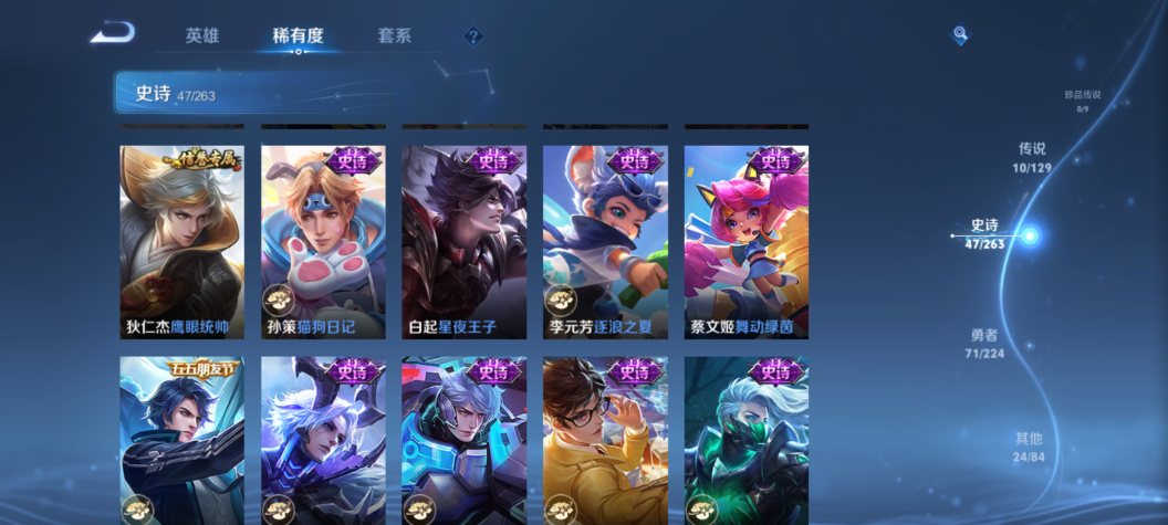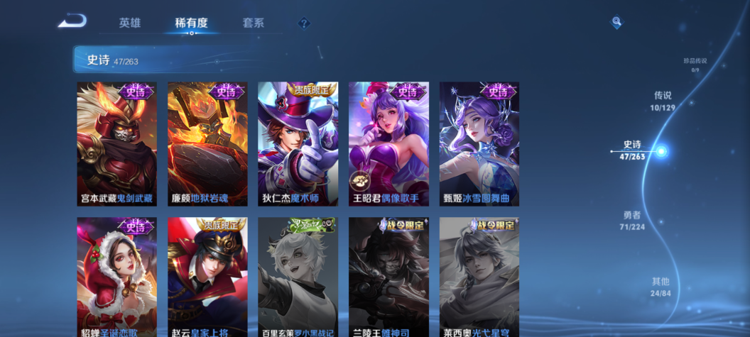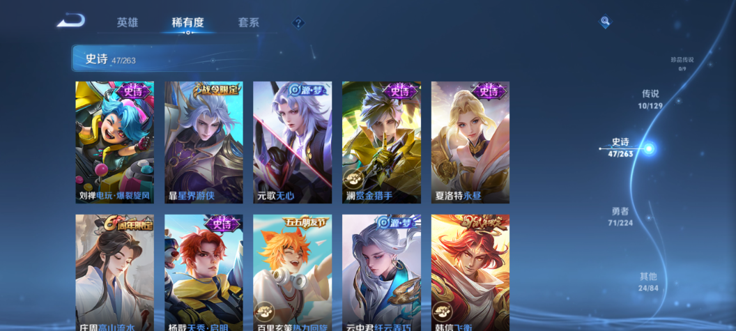 贵族等级:v6皮肤数:153传说品质10 荣耀典藏1 生肖限定4 英雄数:124