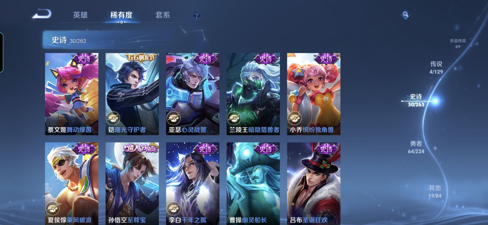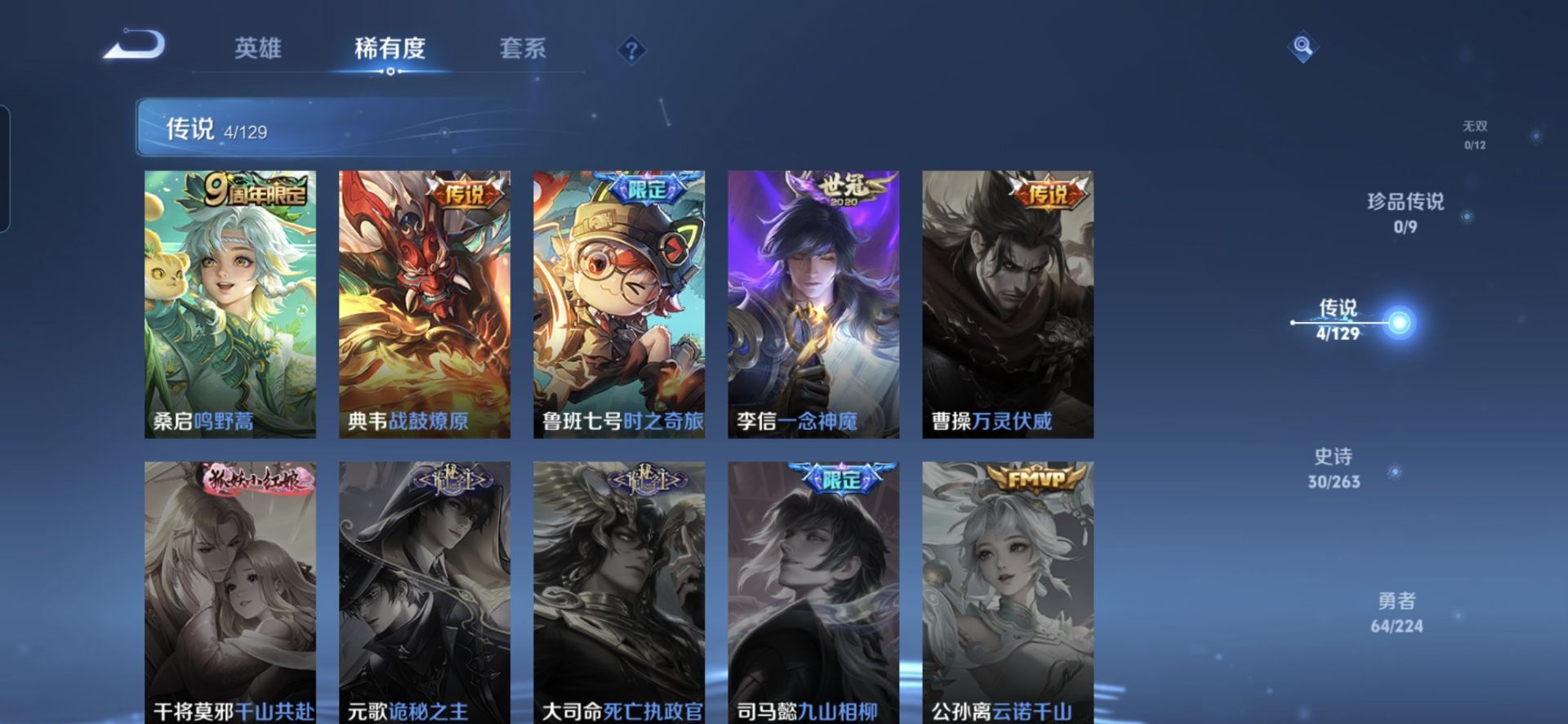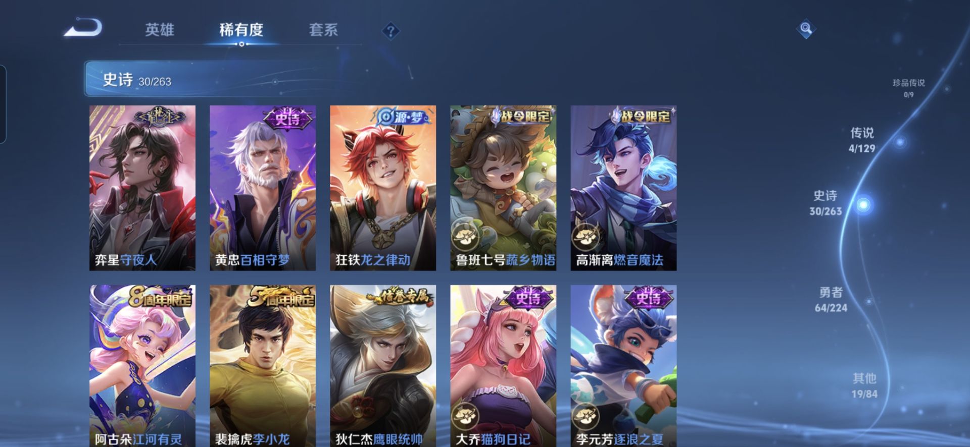 贵族等级:v5皮肤数:117传说品质4 情人节限定1 英雄数:122