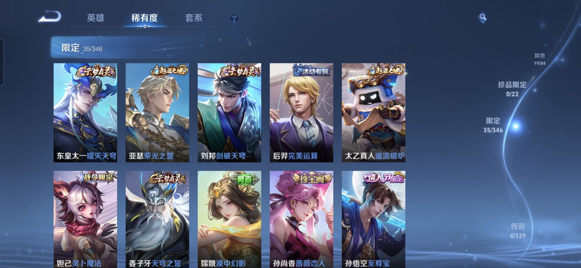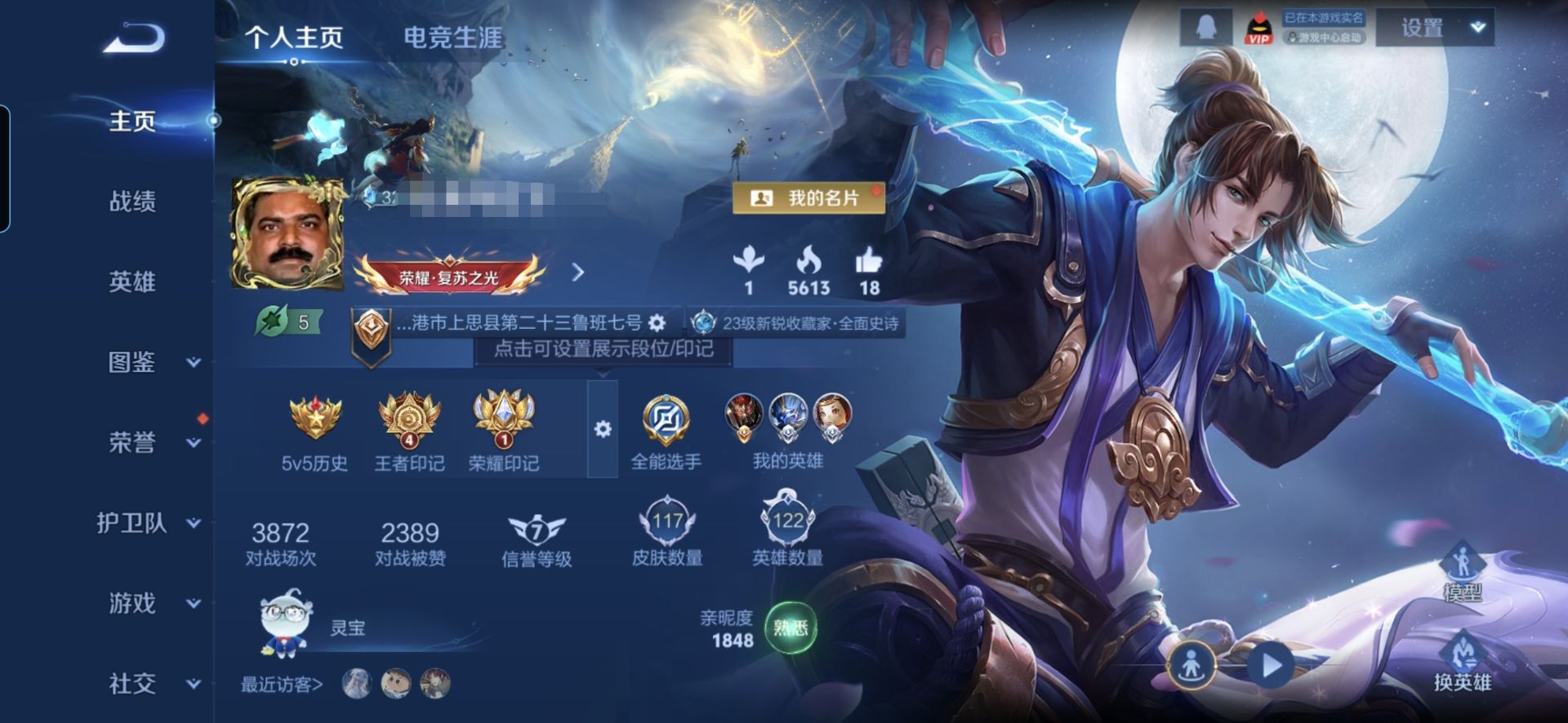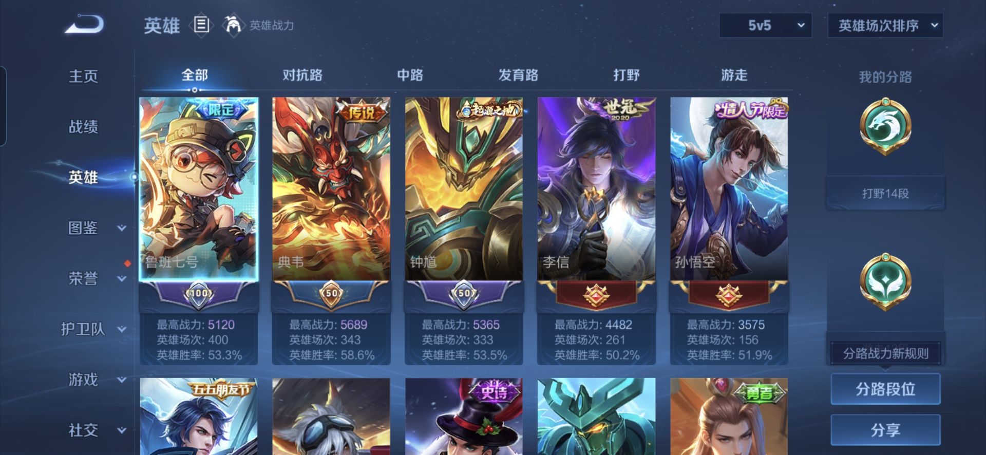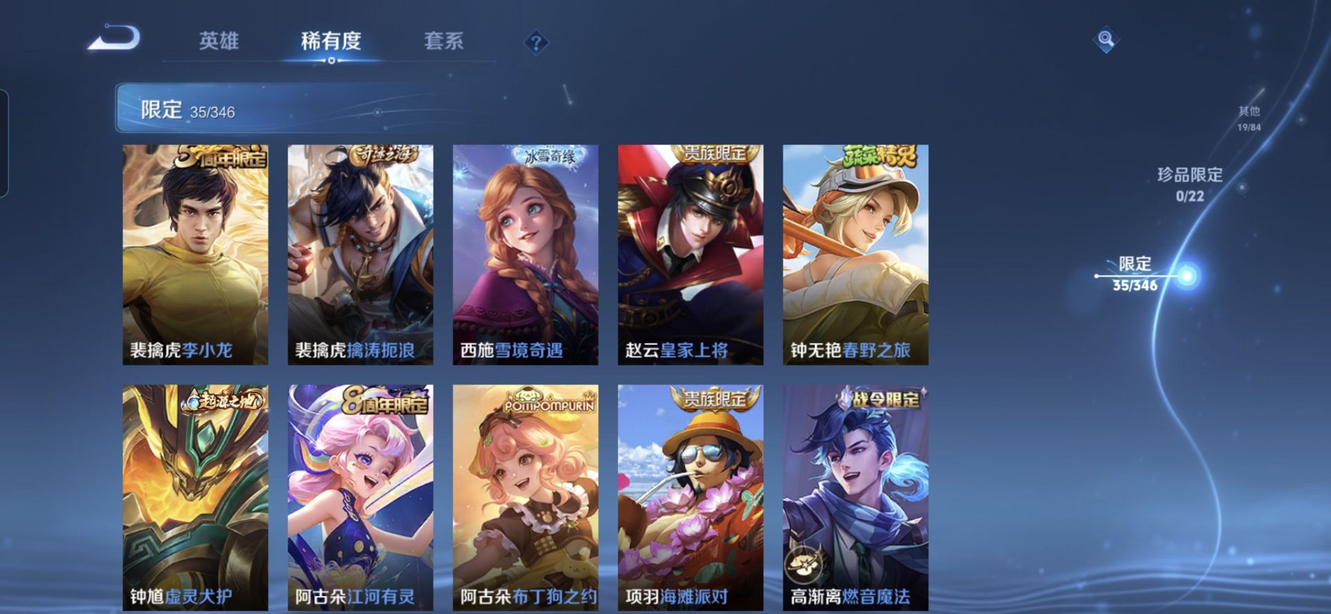 贵族等级:v5皮肤数:117传说品质4 情人节限定1 英雄数:122