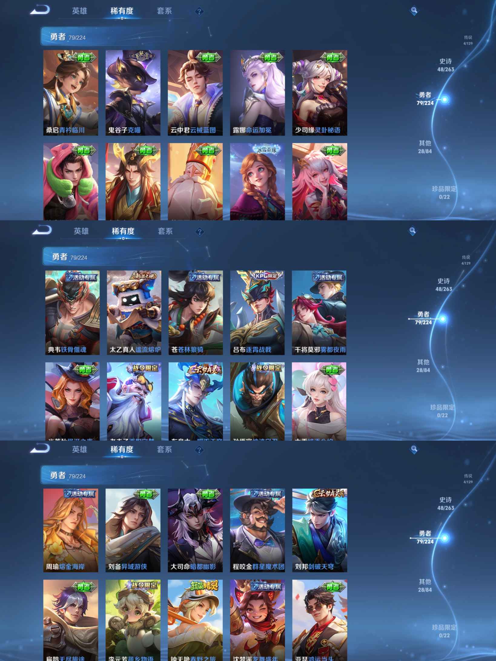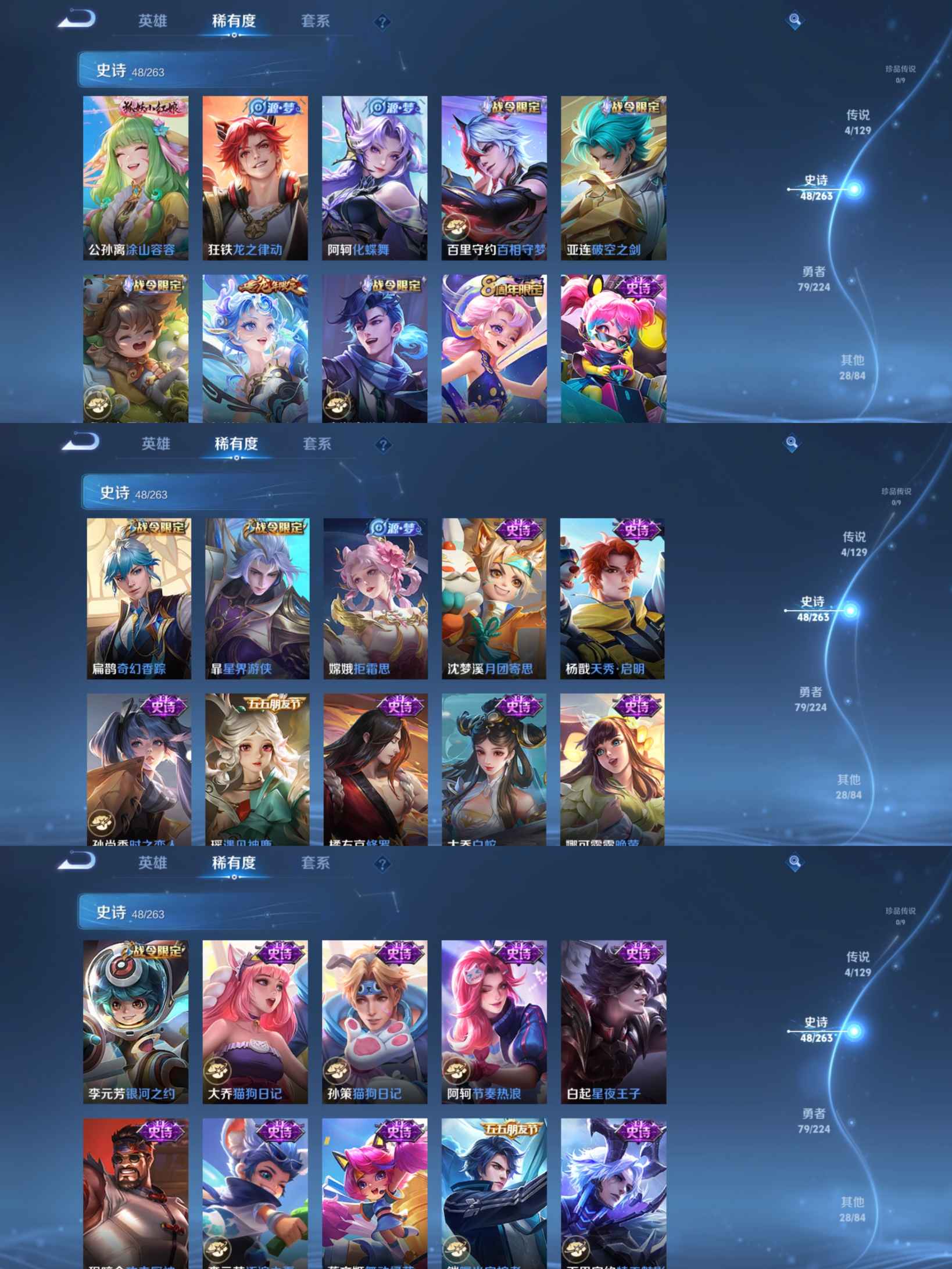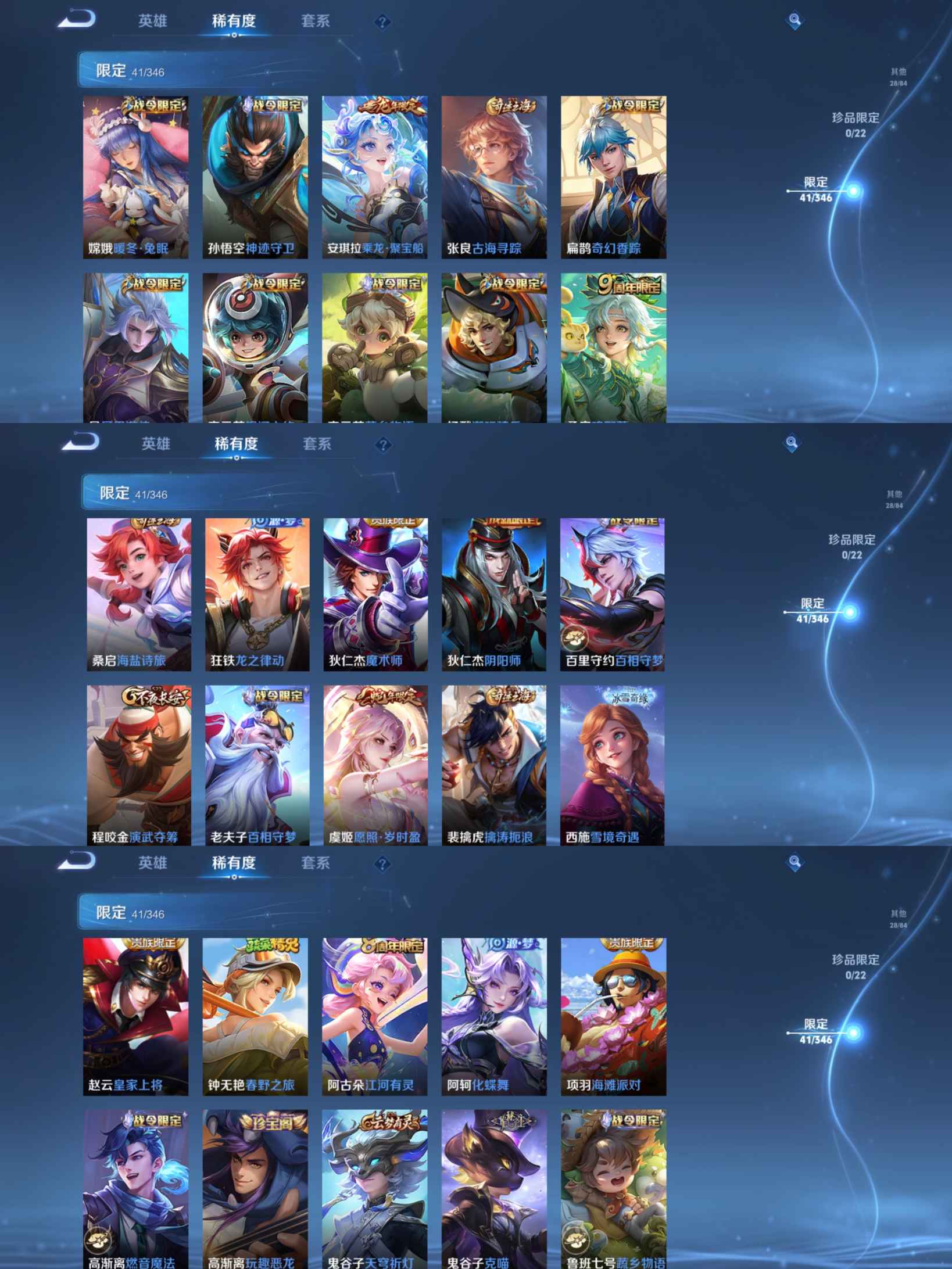 贵族等级:v7皮肤数:161生肖限定2 荣耀典藏1 传说品质4 英雄数:123