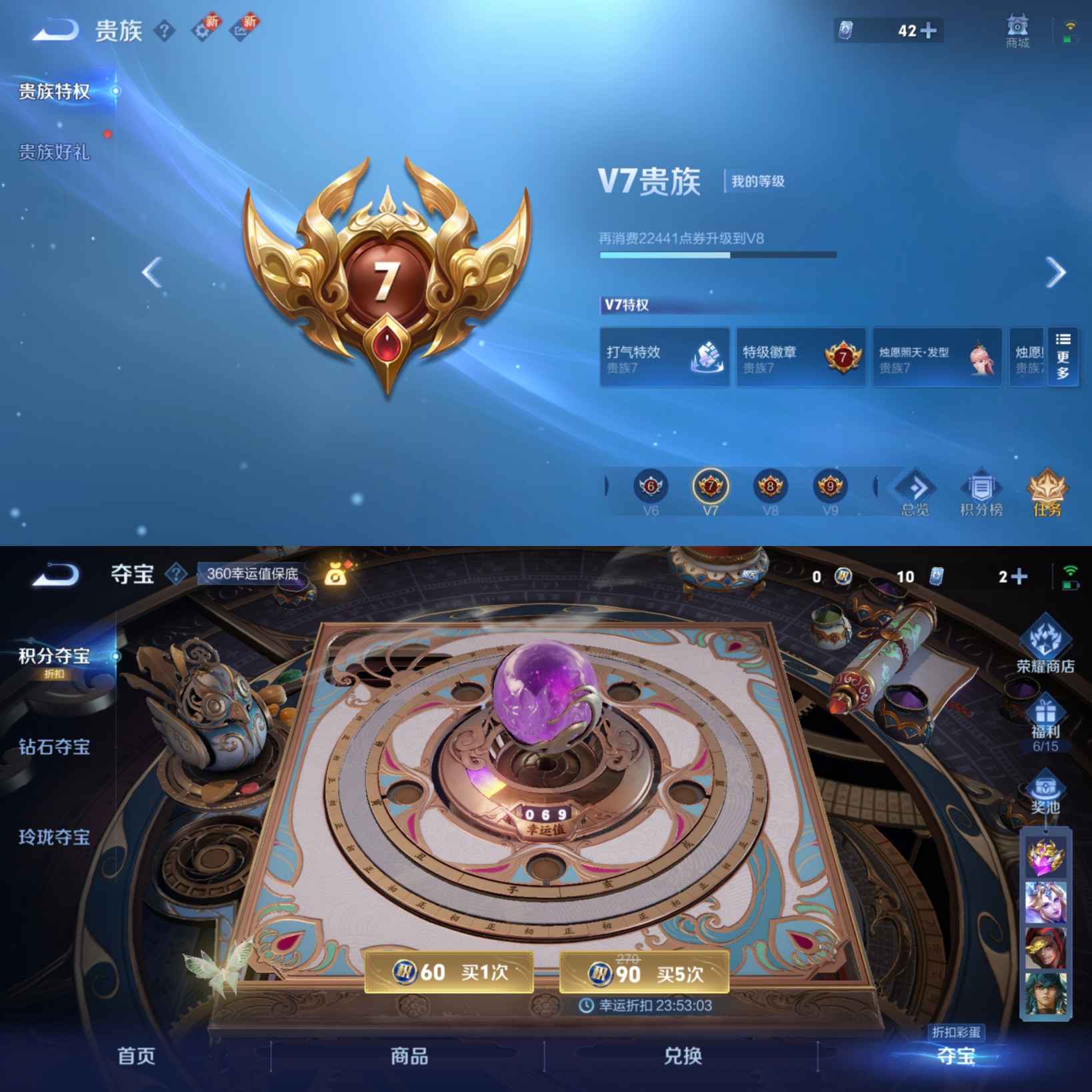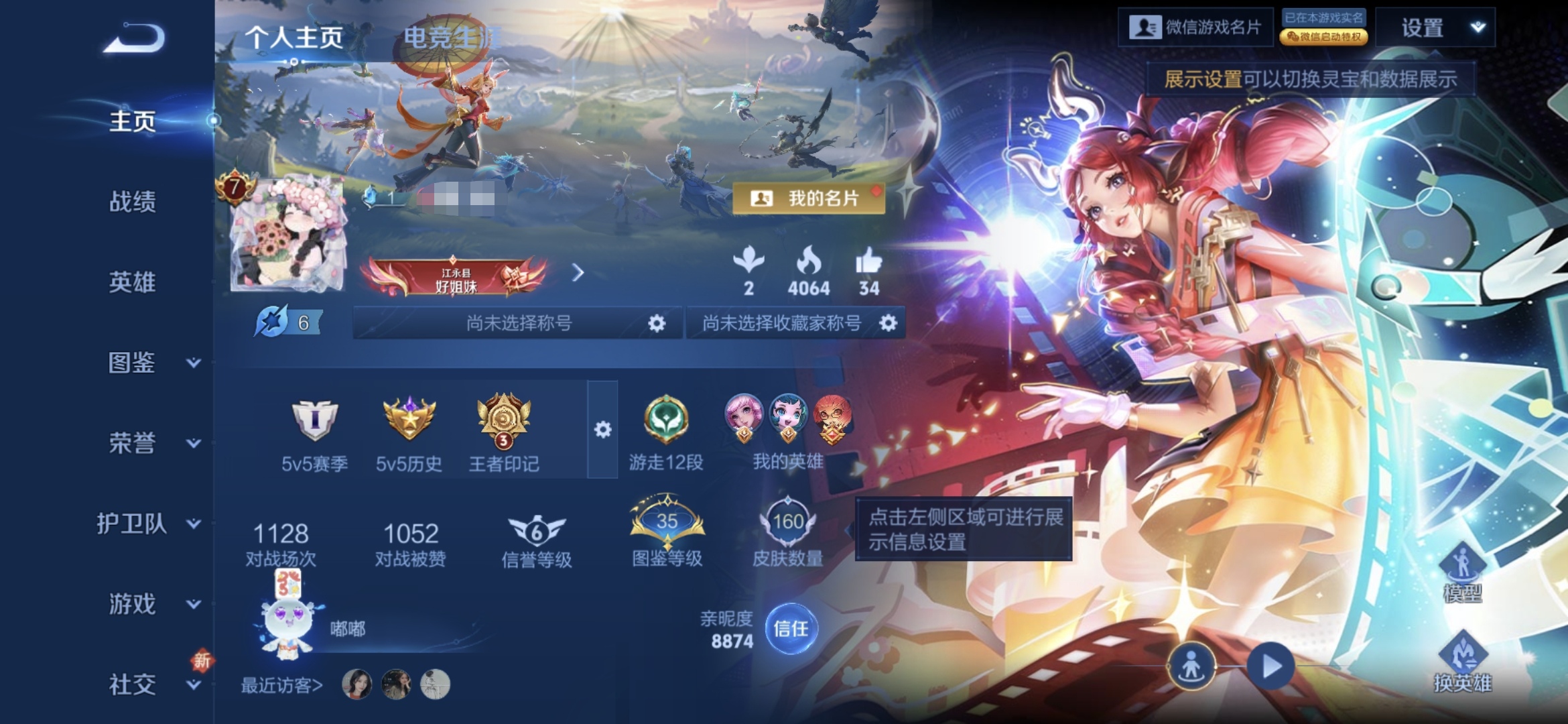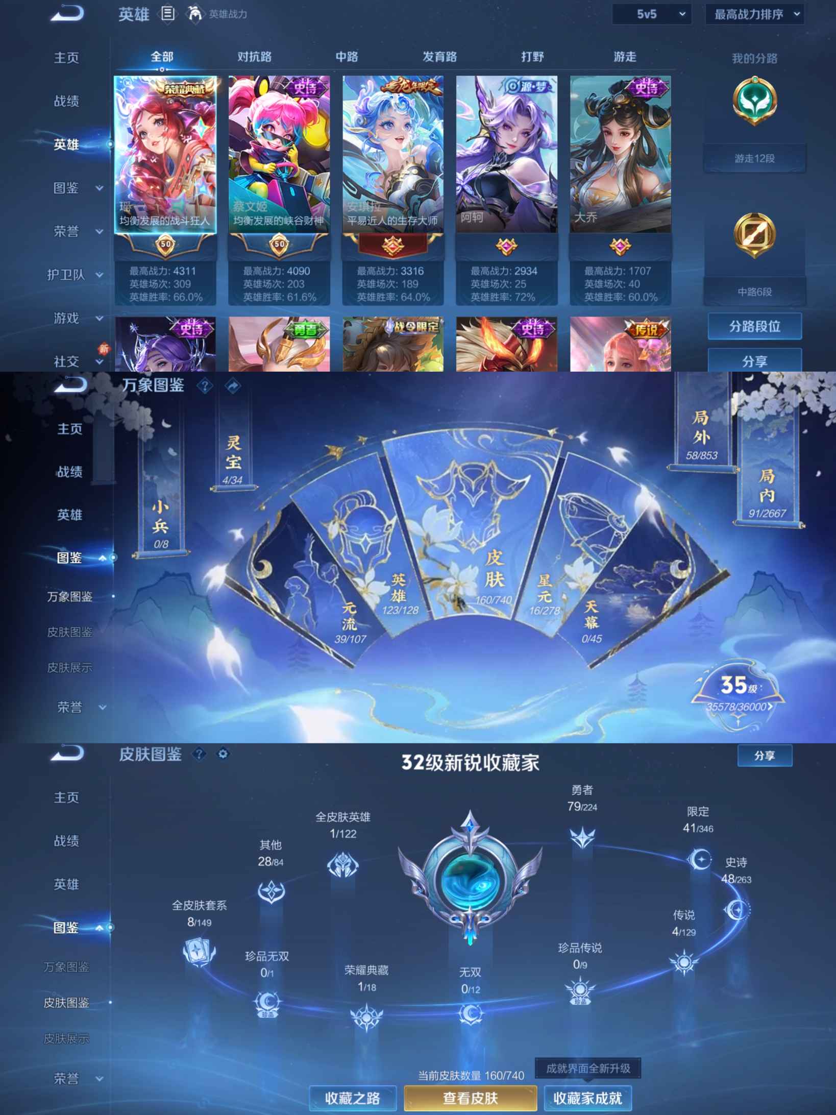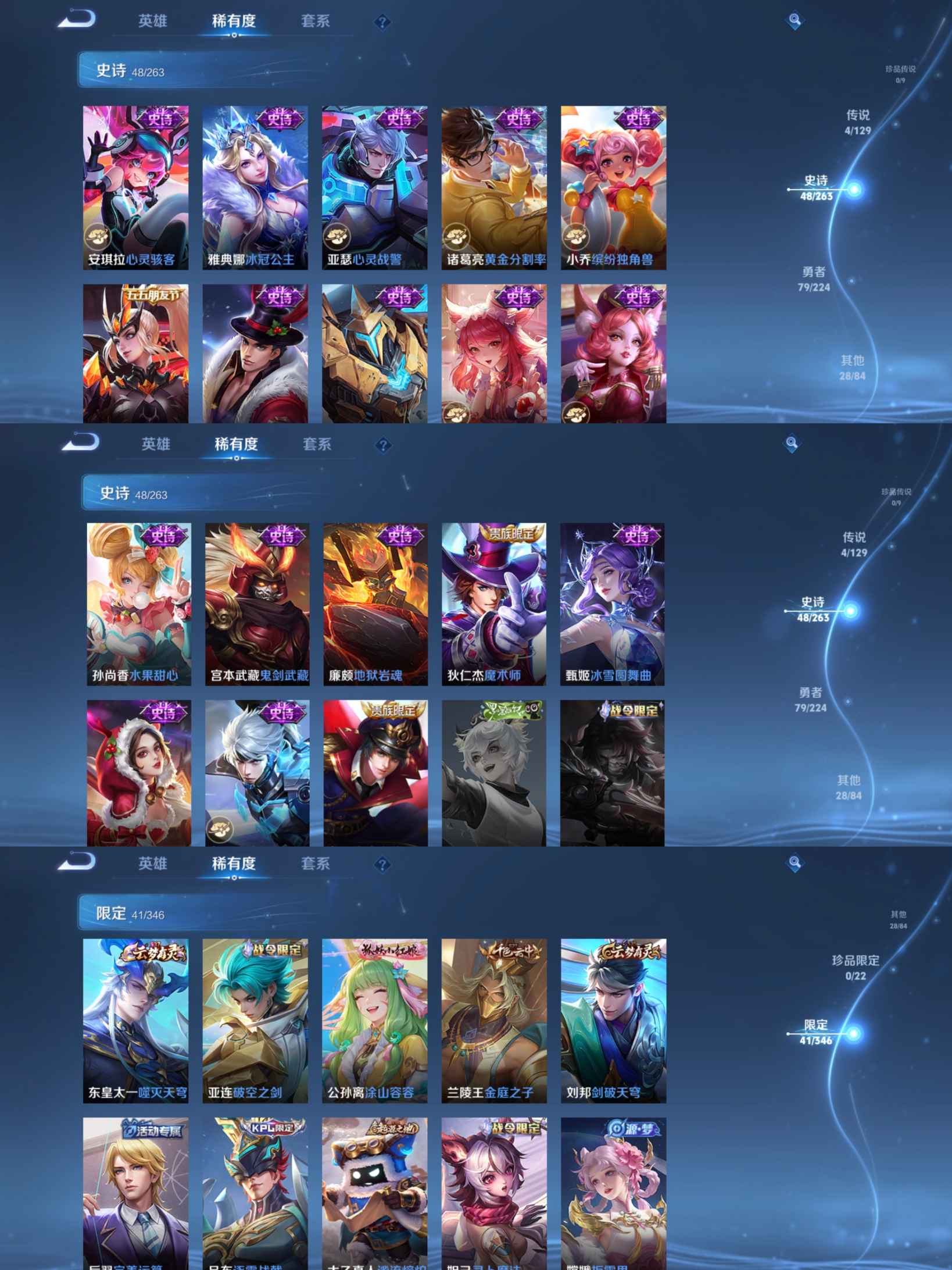 贵族等级:v7皮肤数:161生肖限定2 荣耀典藏1 传说品质4 英雄数:123