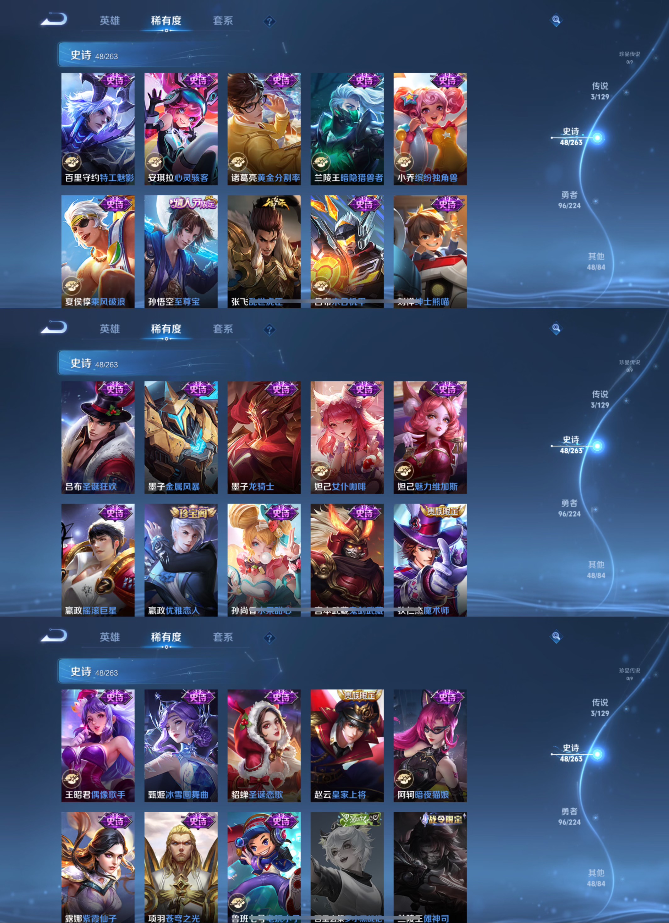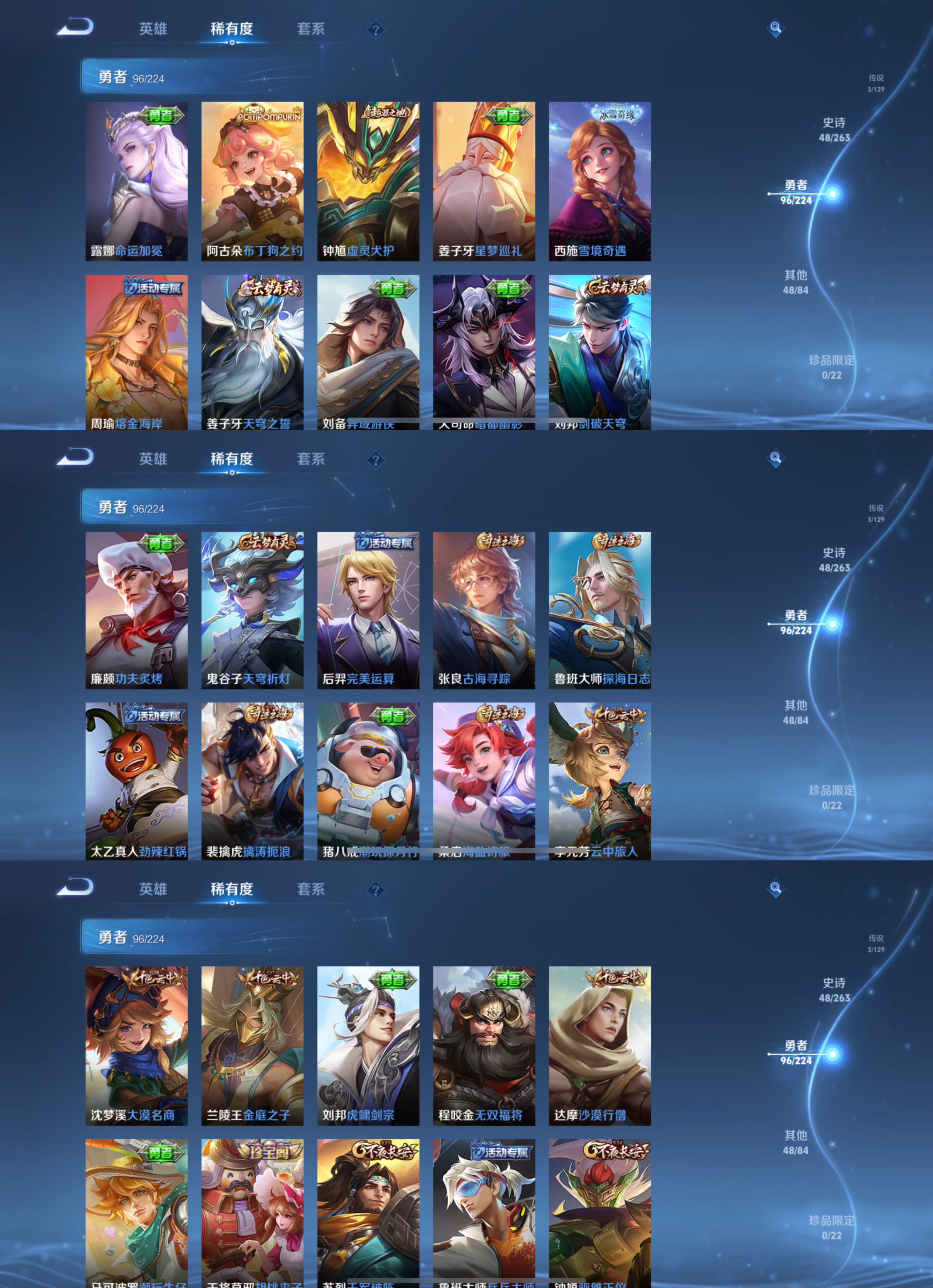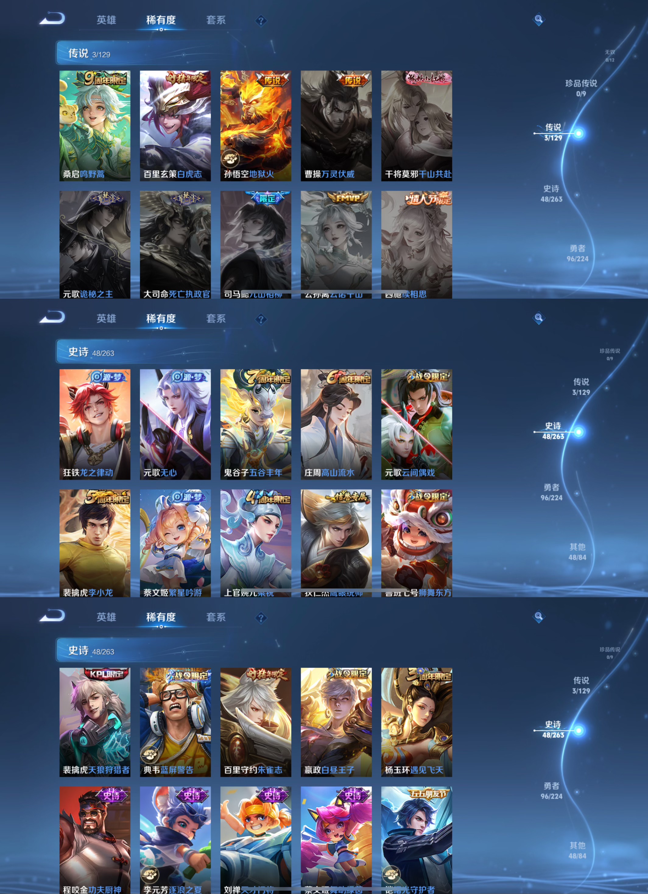 贵族等级:v7皮肤数:195传说品质3 情人节限定1 生肖限定2 英雄数:124