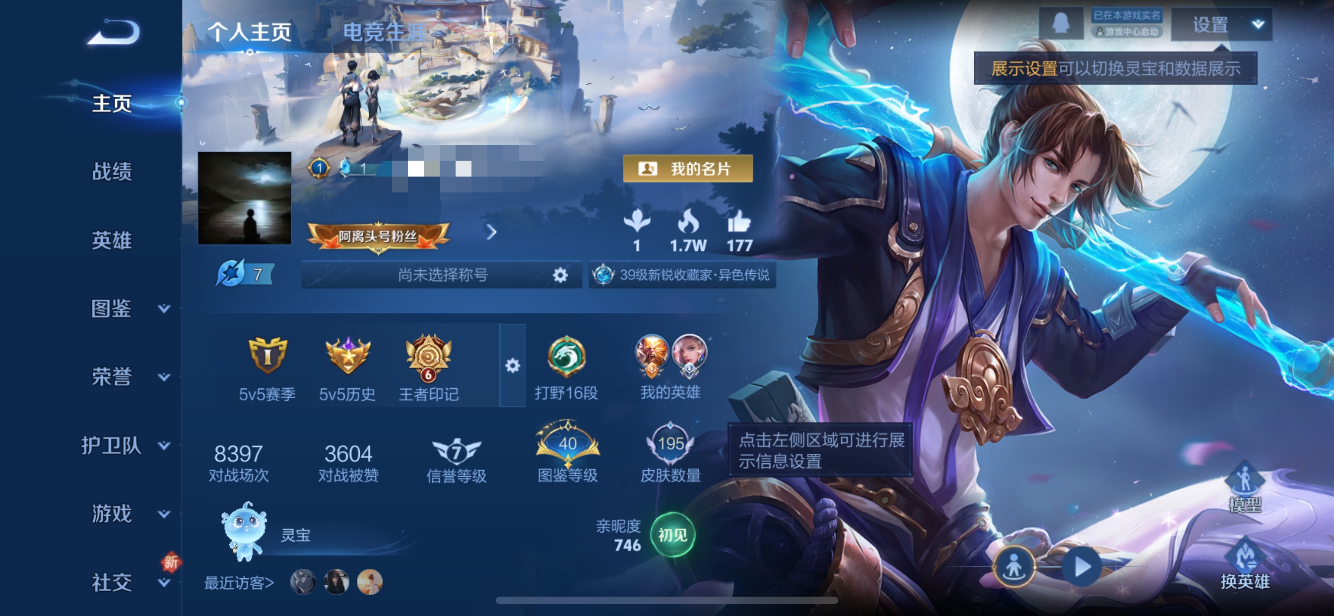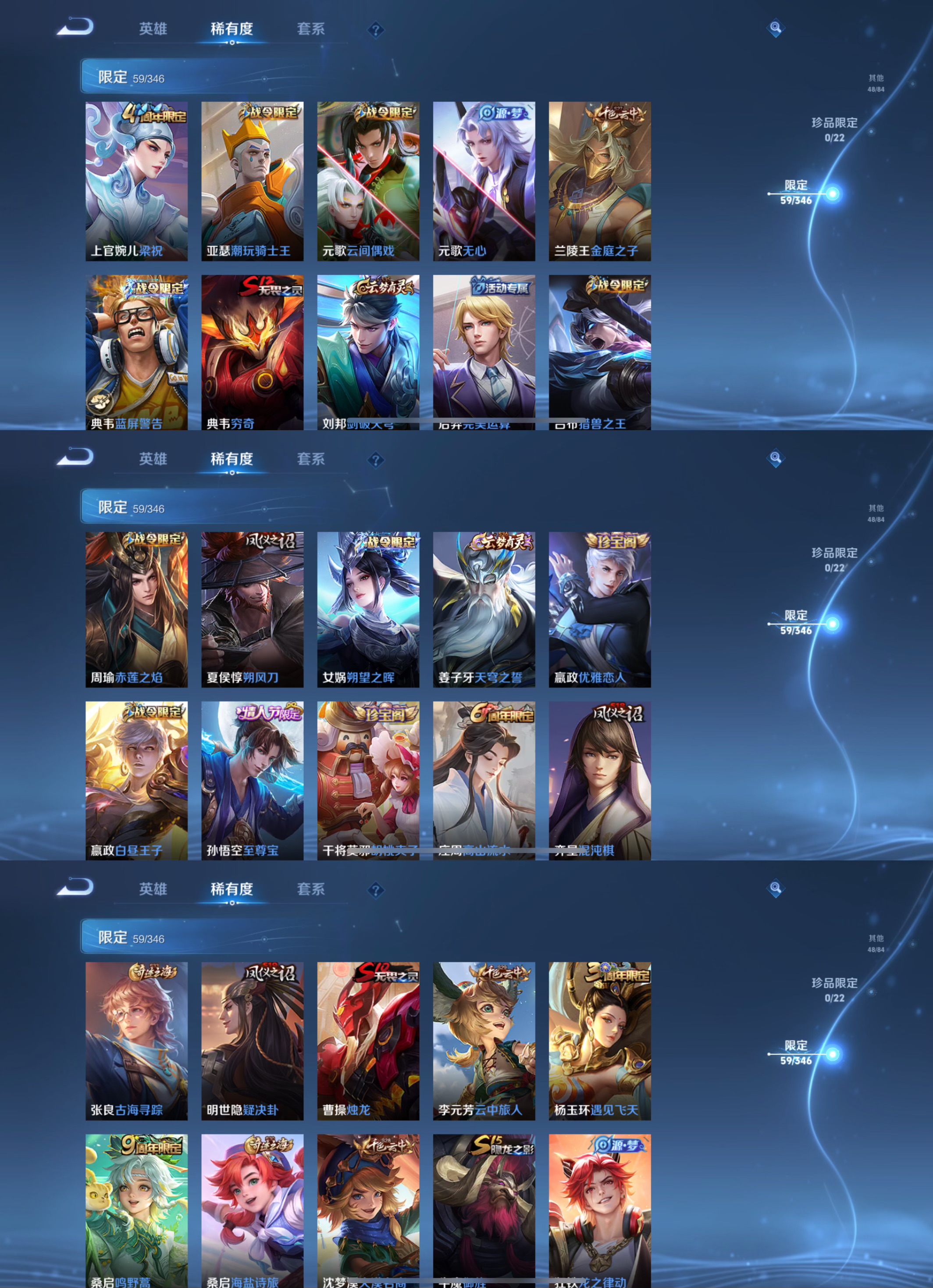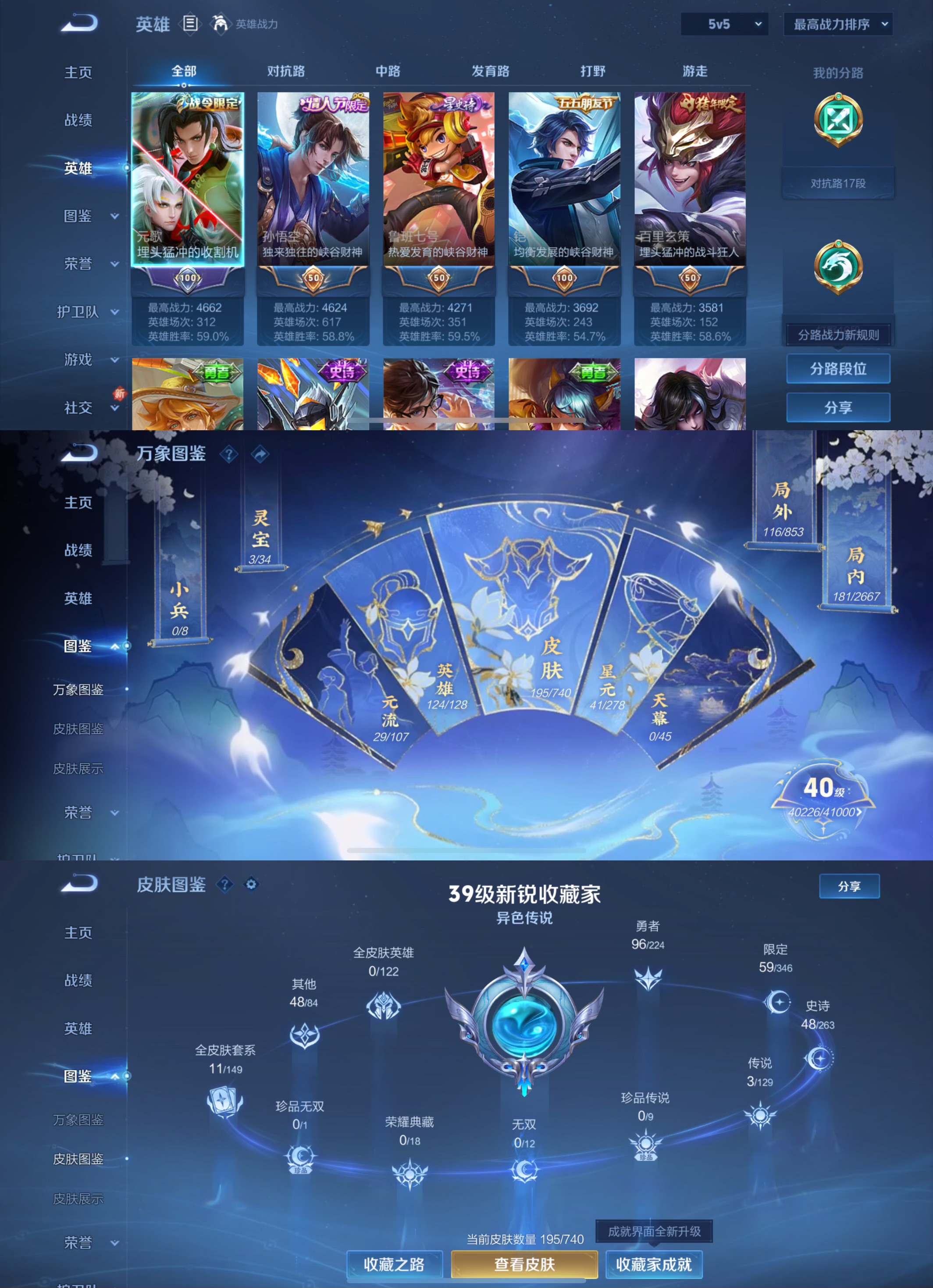 贵族等级:v7皮肤数:195传说品质3 情人节限定1 生肖限定2 英雄数:124
