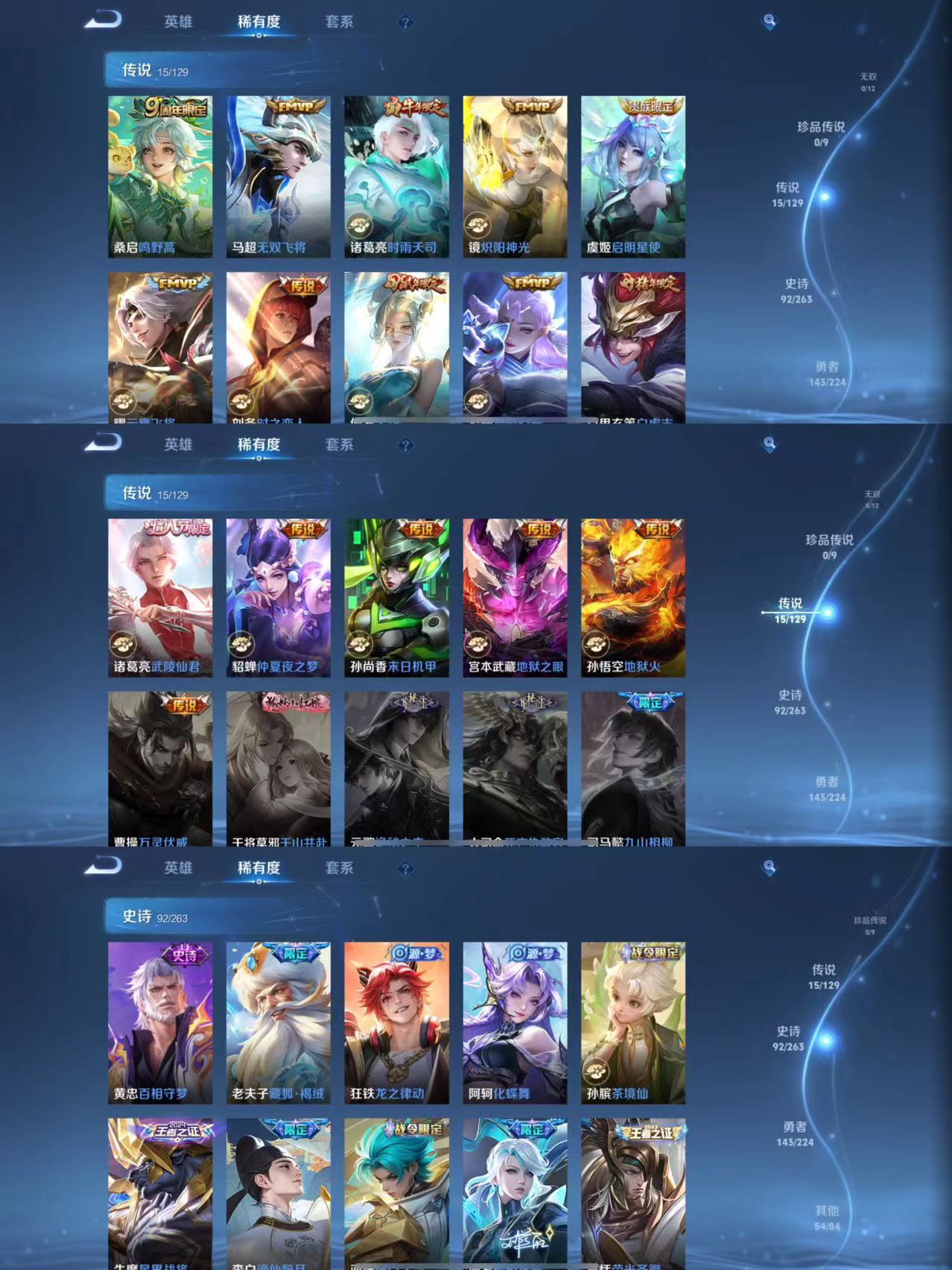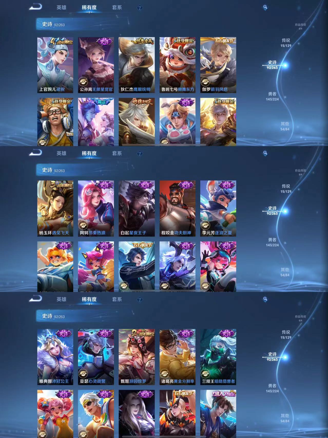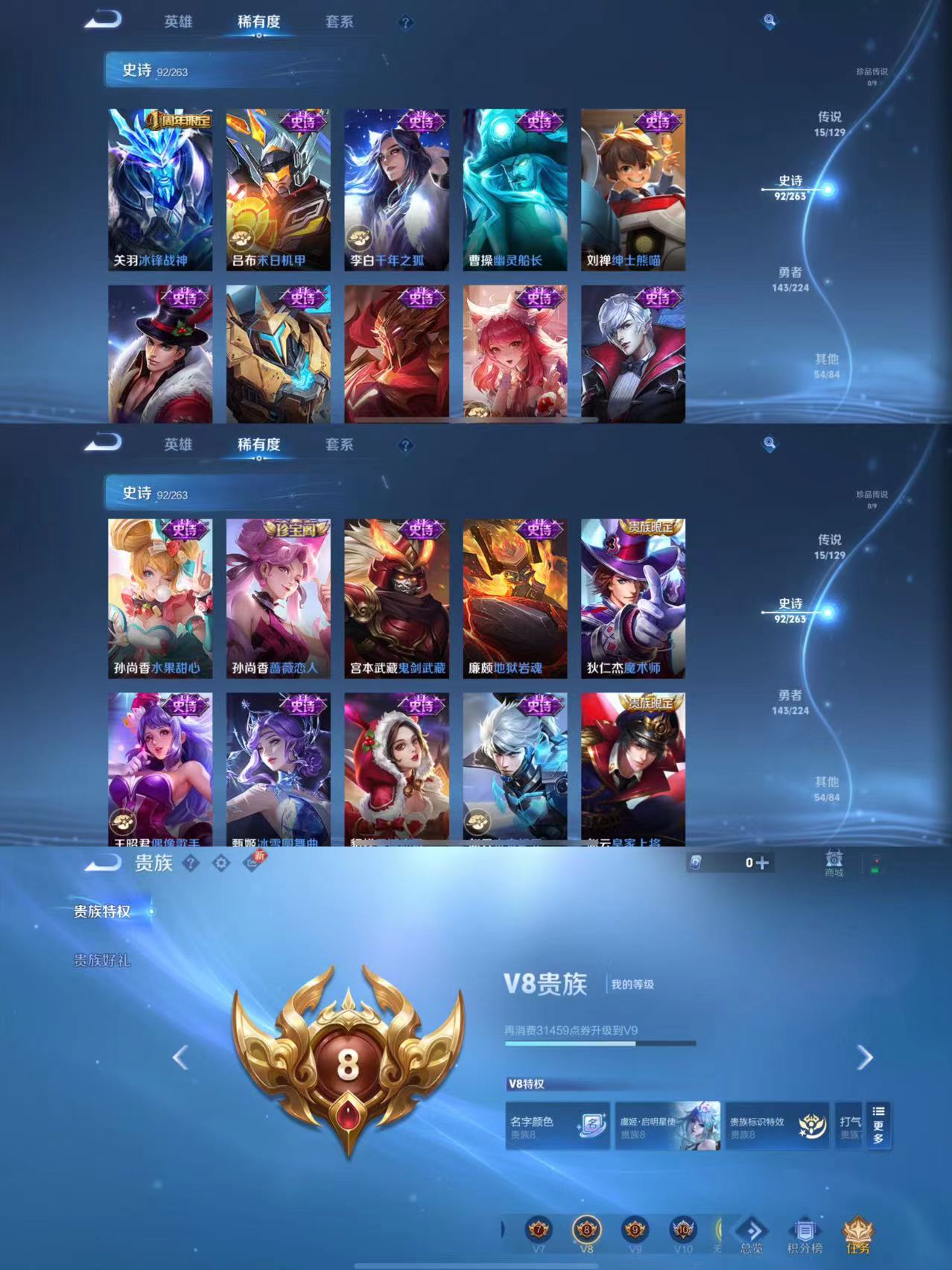 贵族等级:v8皮肤数:305生肖限定8 传说品质15 情人节限定2 荣耀典藏1 英雄数:126