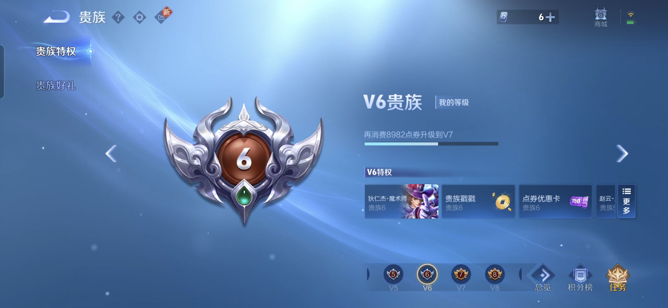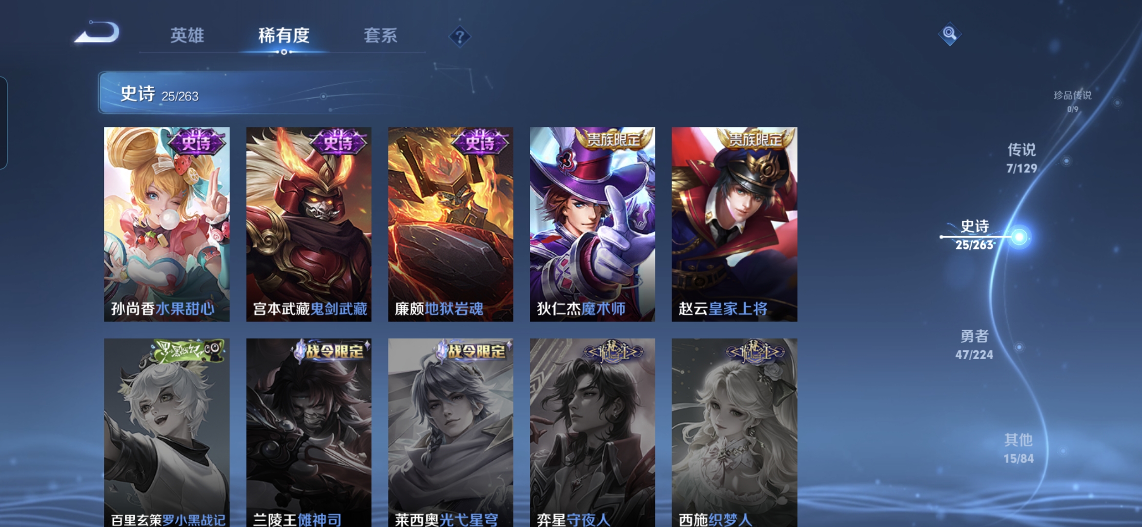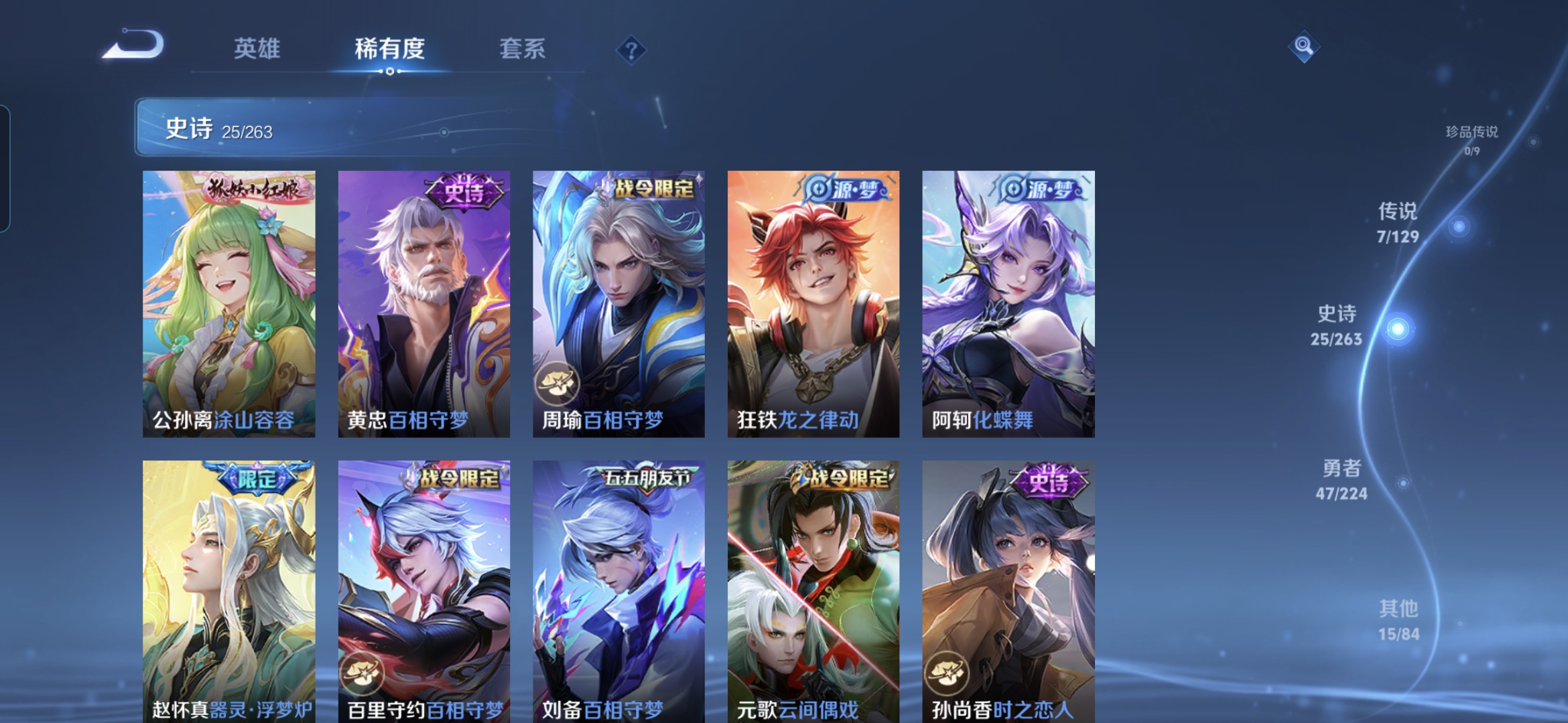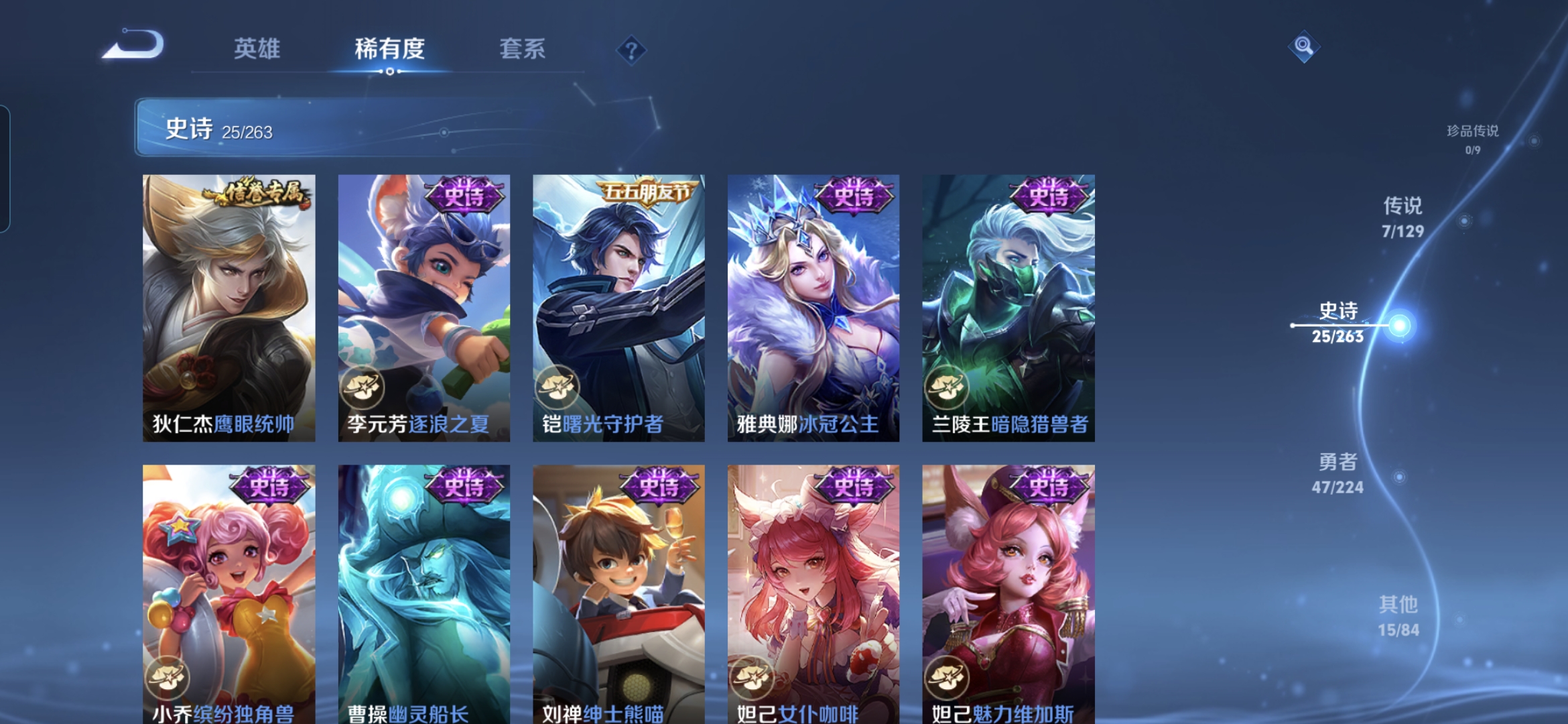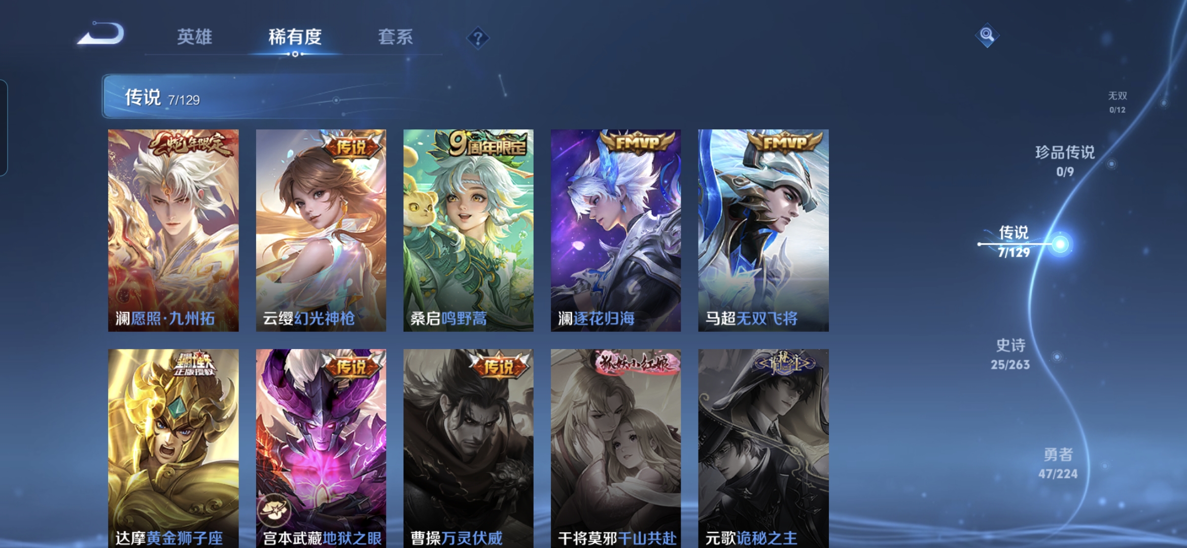 贵族等级:v6皮肤数:94传说品质7 生肖限定1 英雄数:108