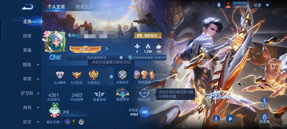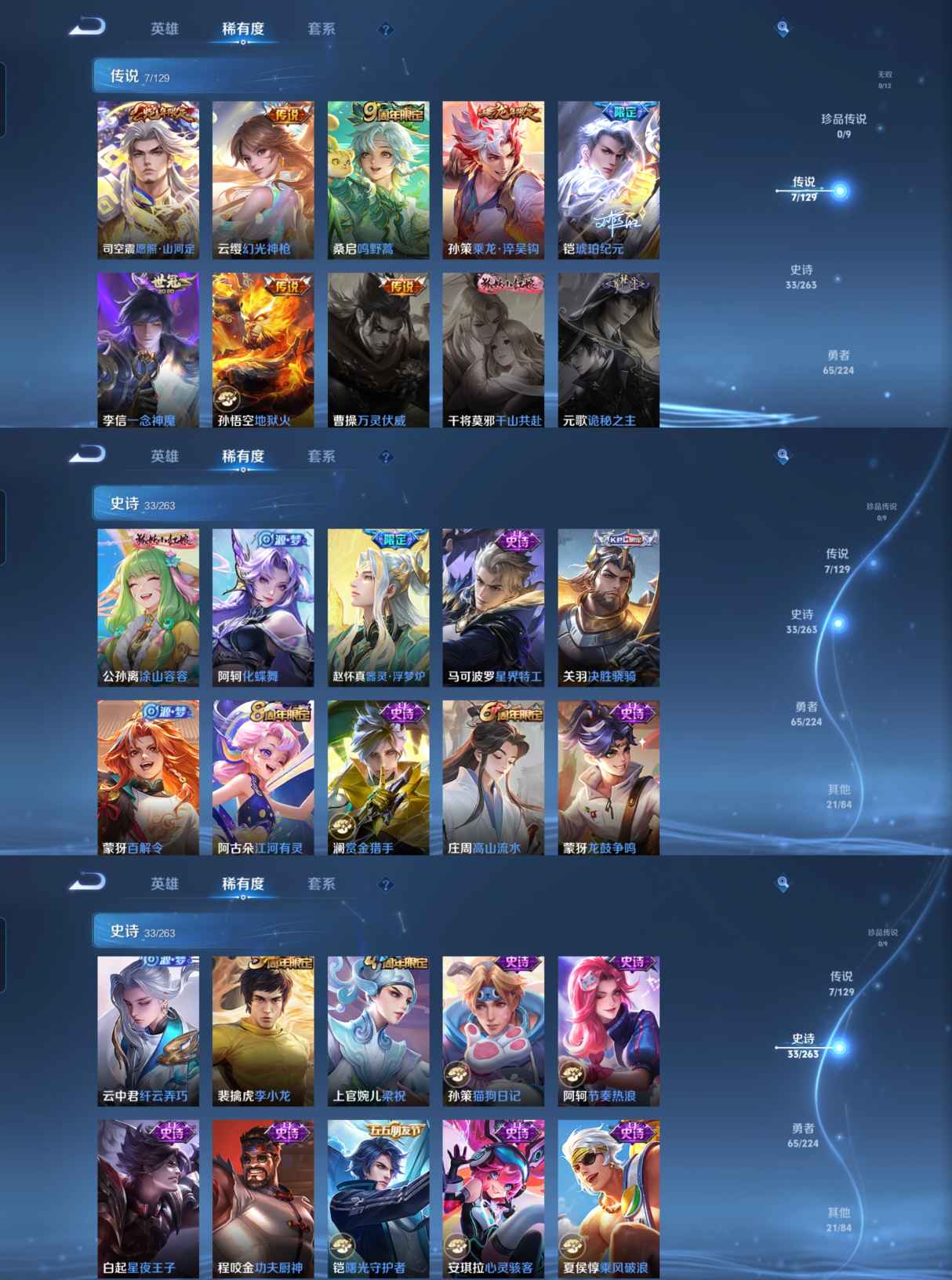 贵族等级:v4皮肤数:127传说品质7 生肖限定2 英雄数:120
