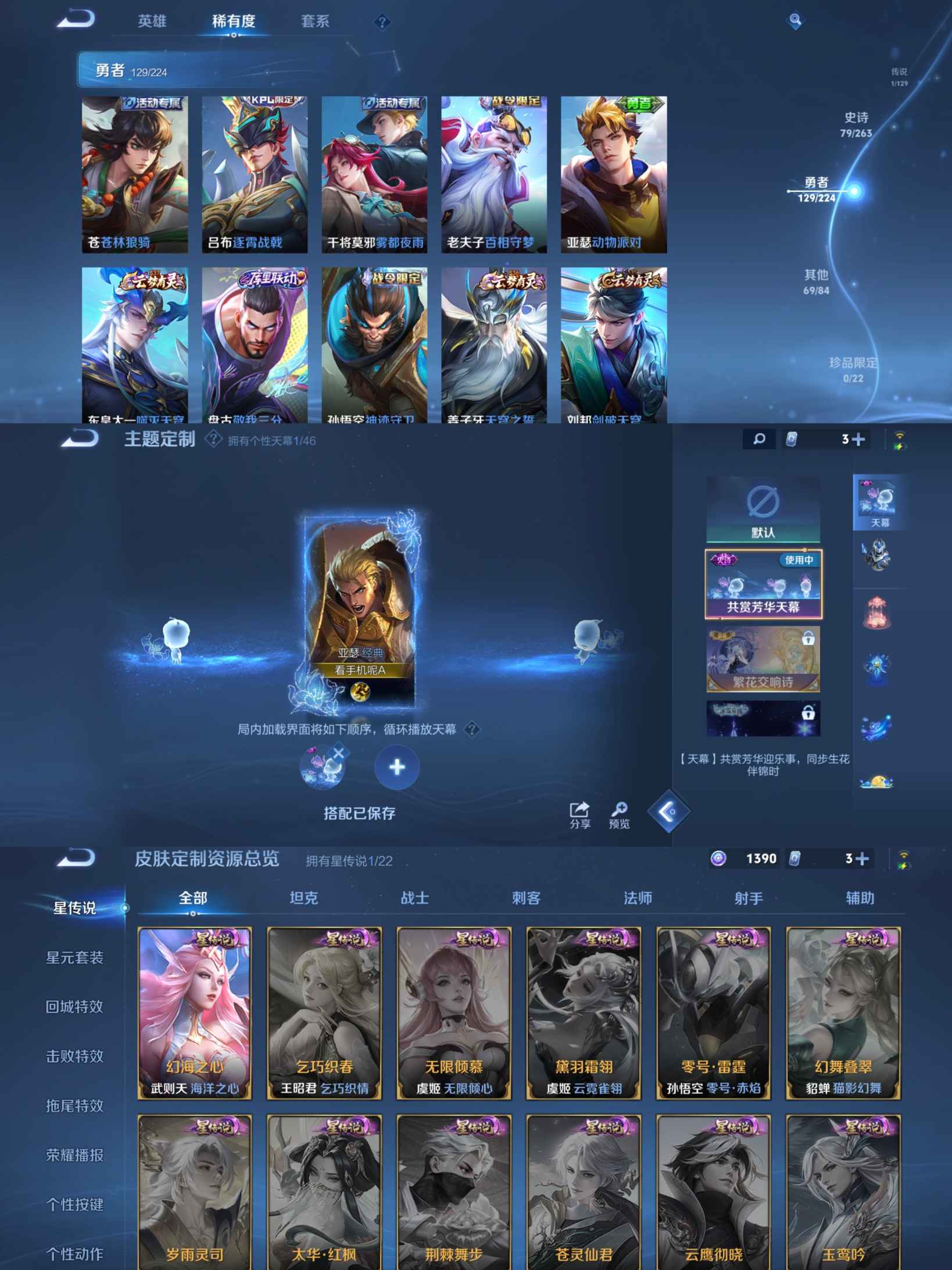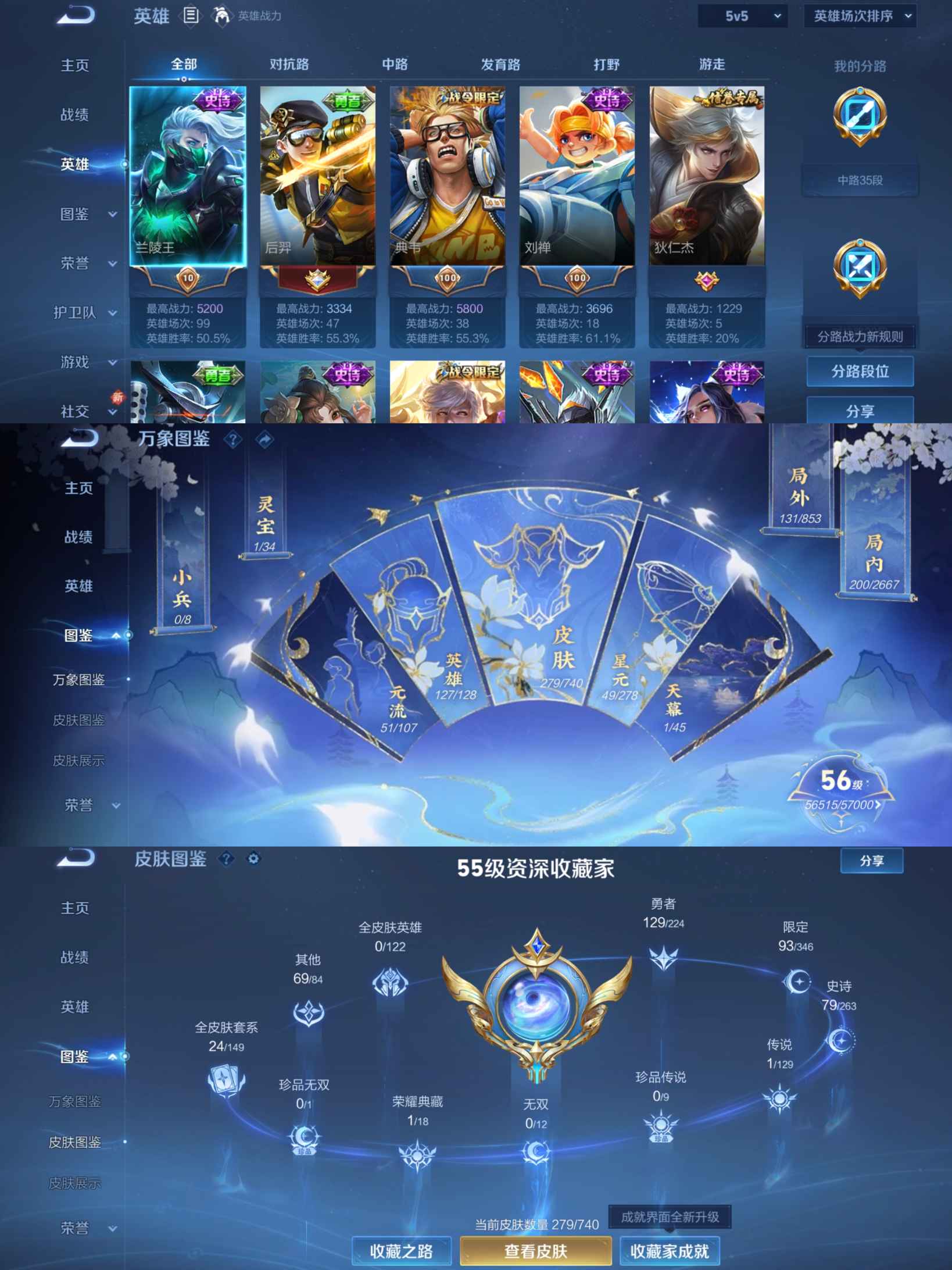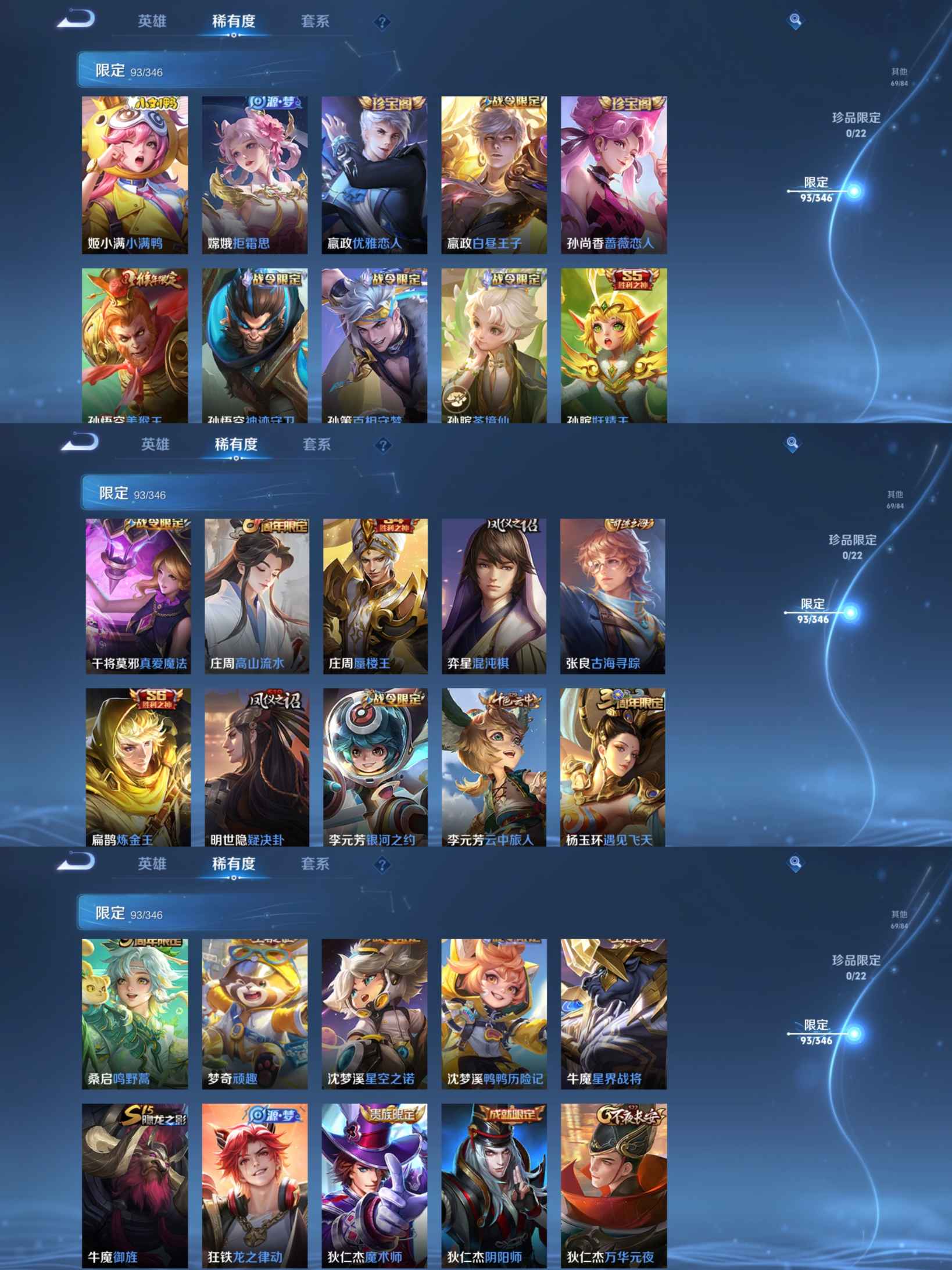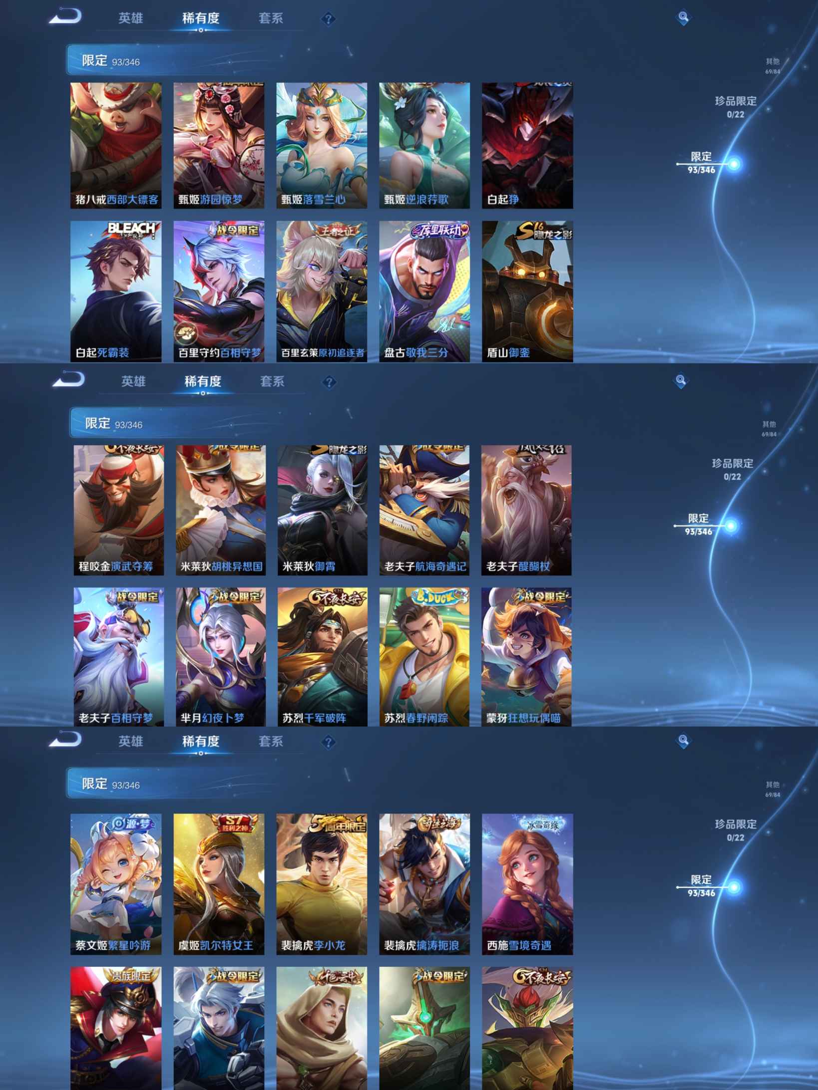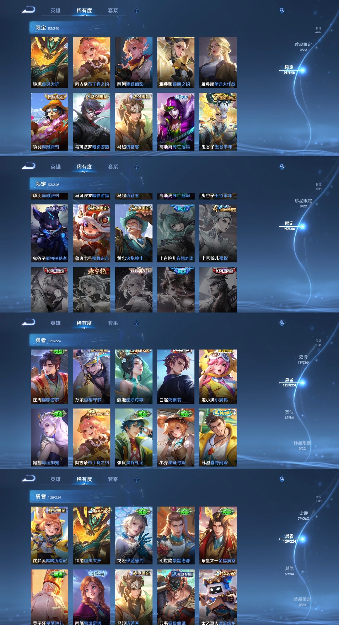 贵族等级:v7皮肤数:279生肖限定1 荣耀典藏1 传说品质1 英雄数:127