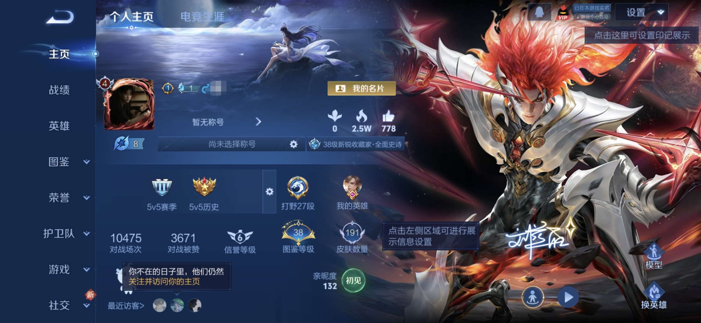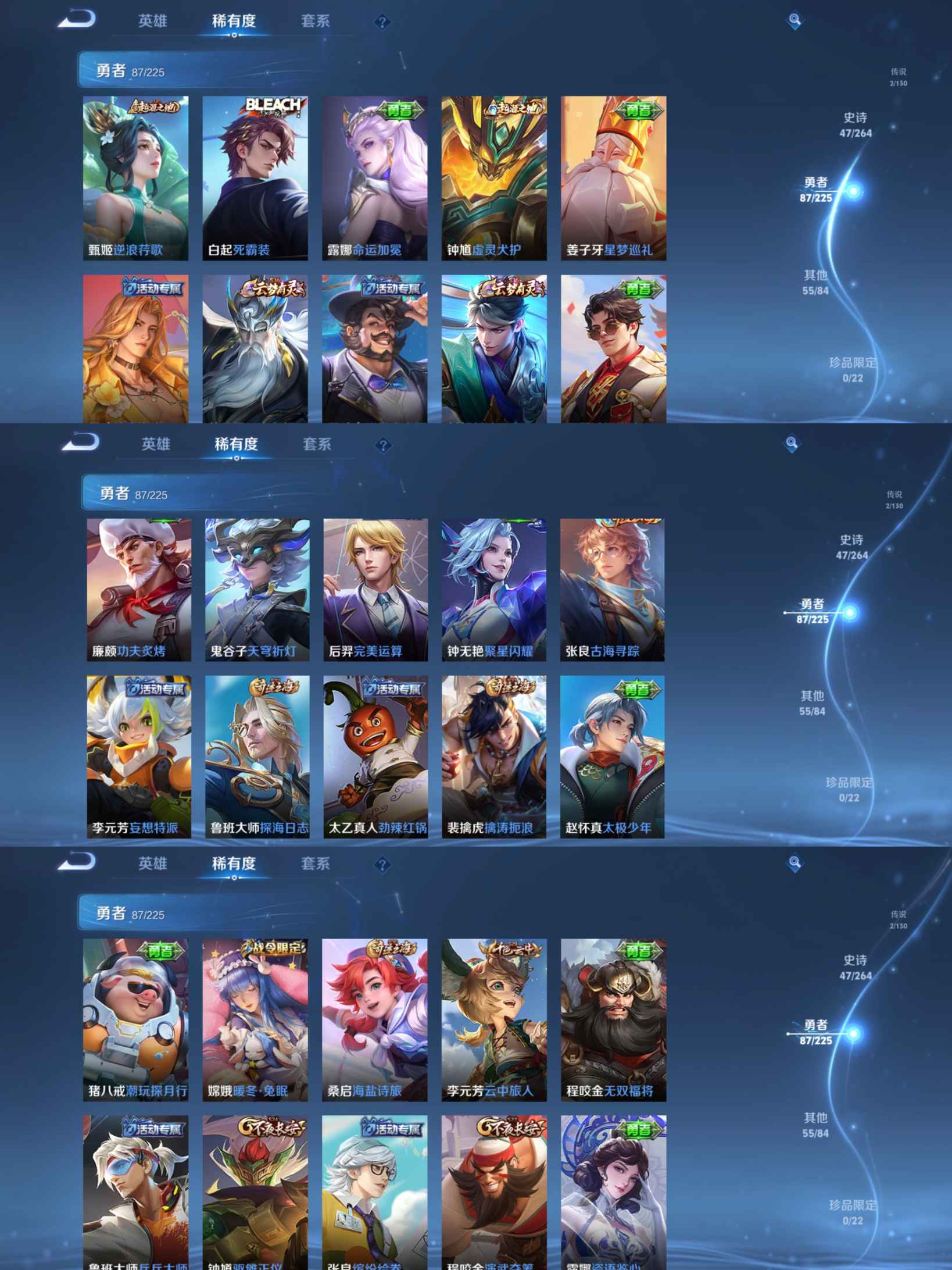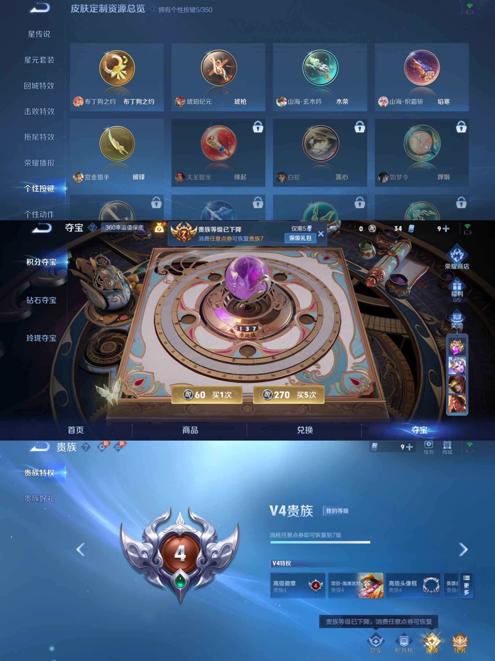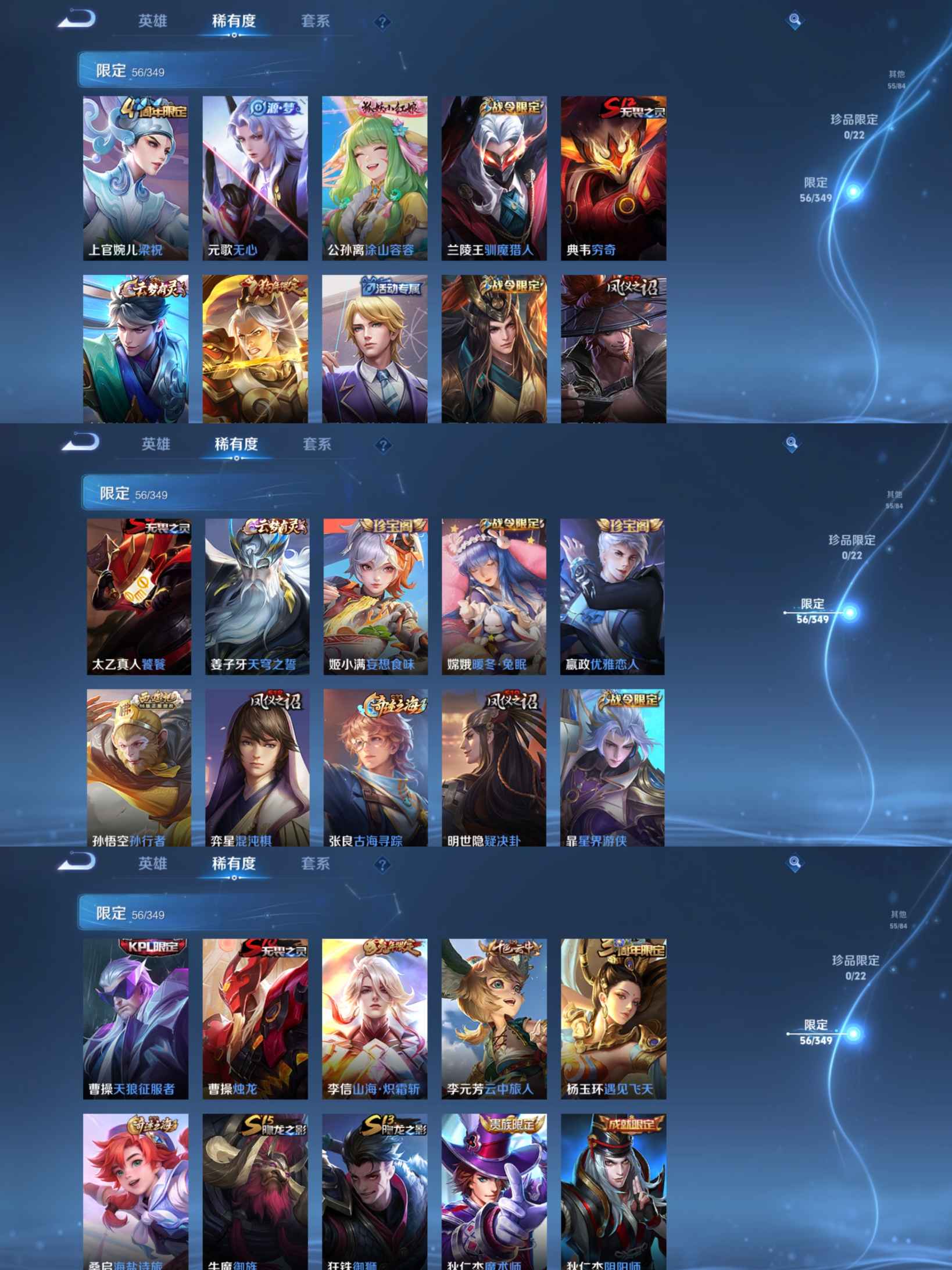 贵族等级:v4皮肤数:191生肖限定4 传说品质2 英雄数:124