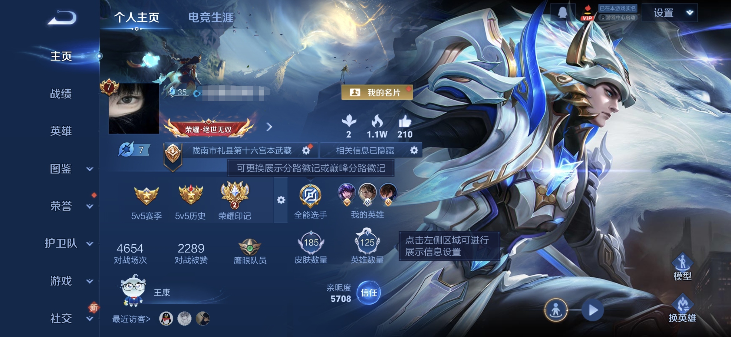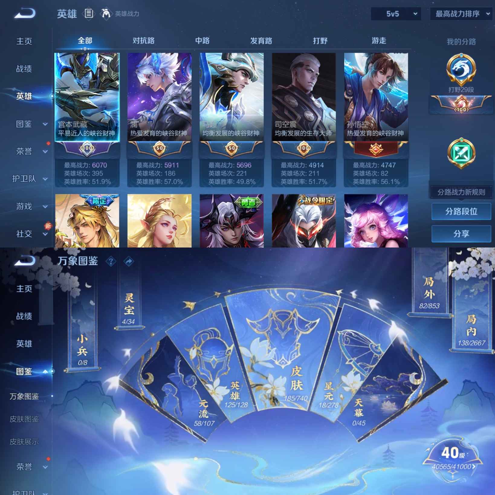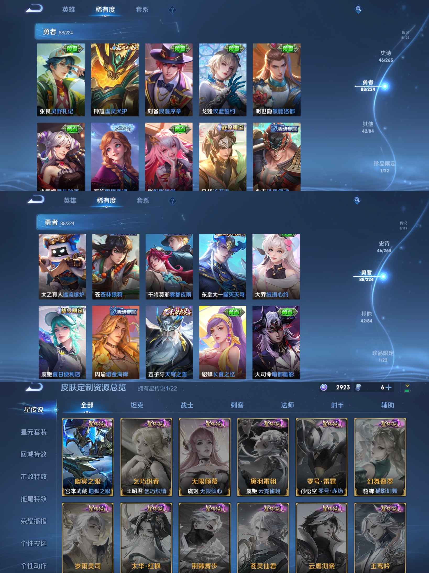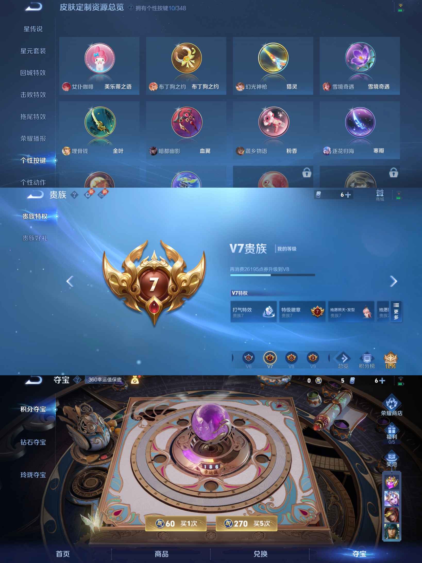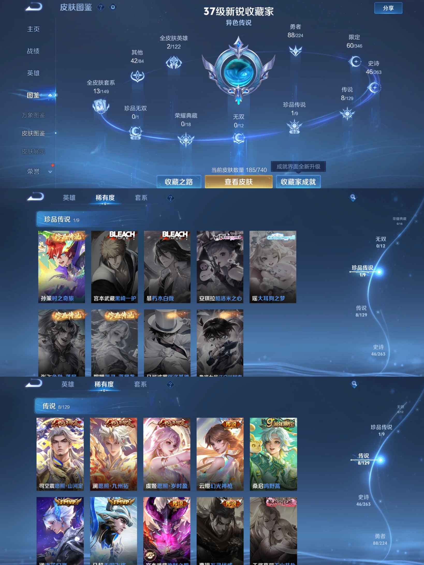 贵族等级:v7皮肤数:185传说品质8 生肖限定3 情人节限定1 珍品传说1 英雄数:125