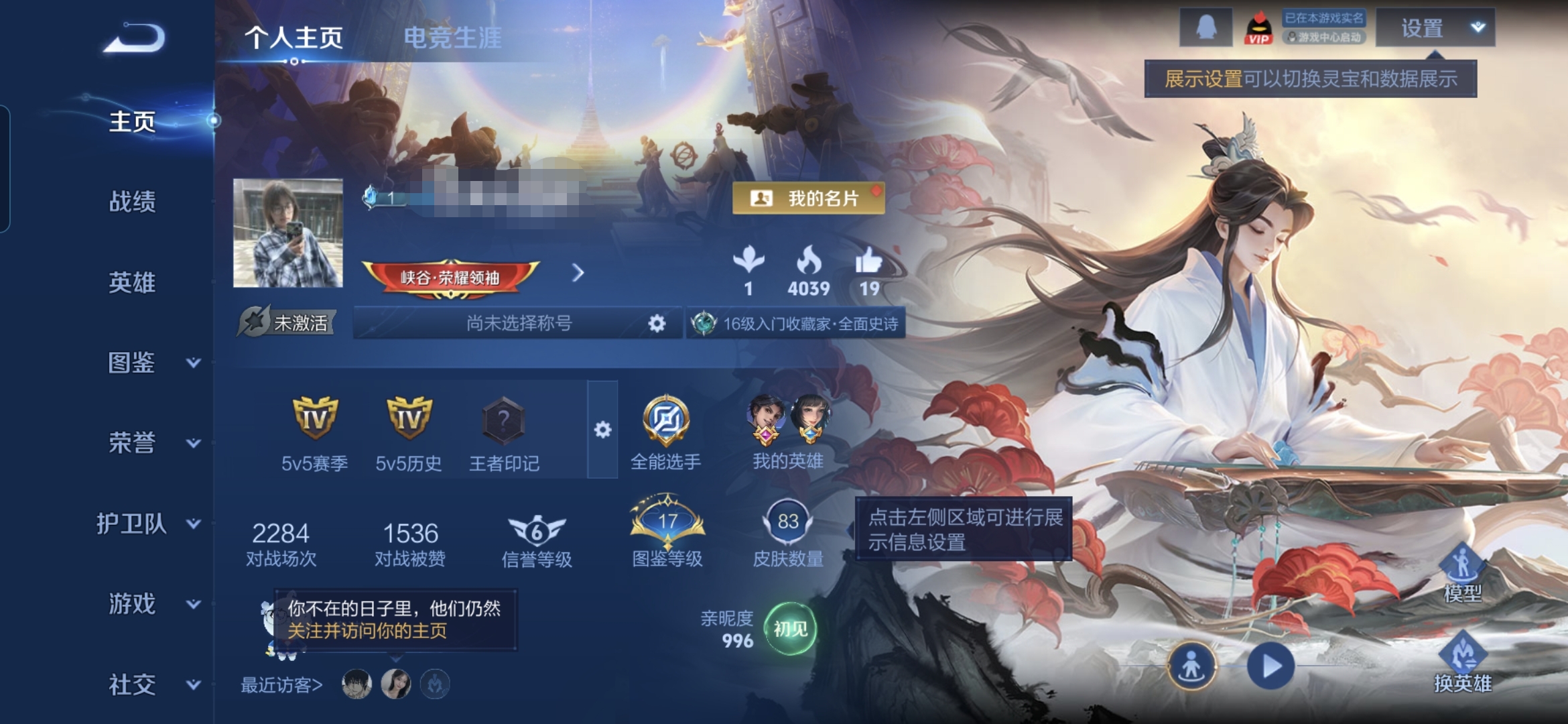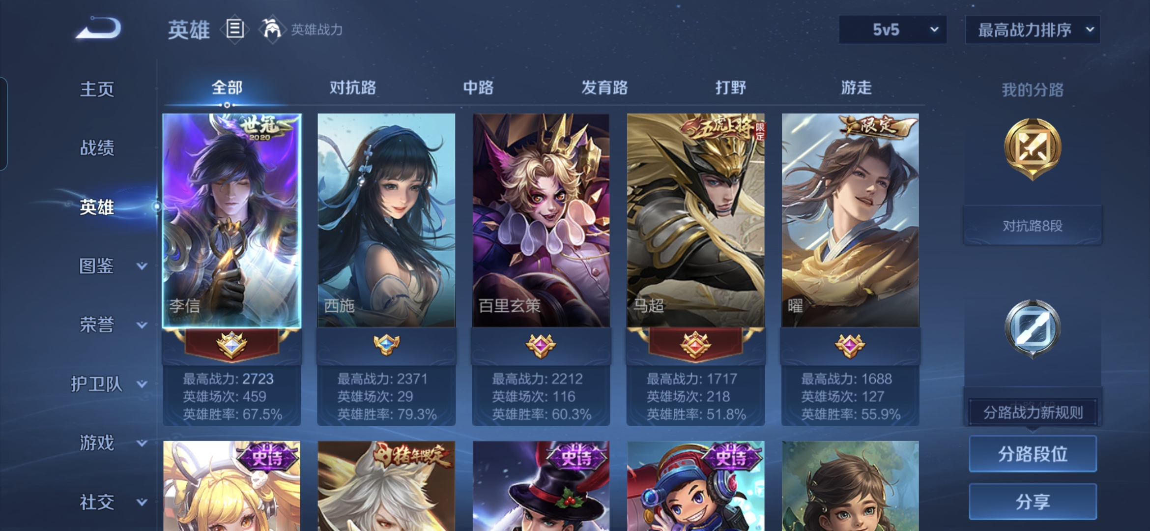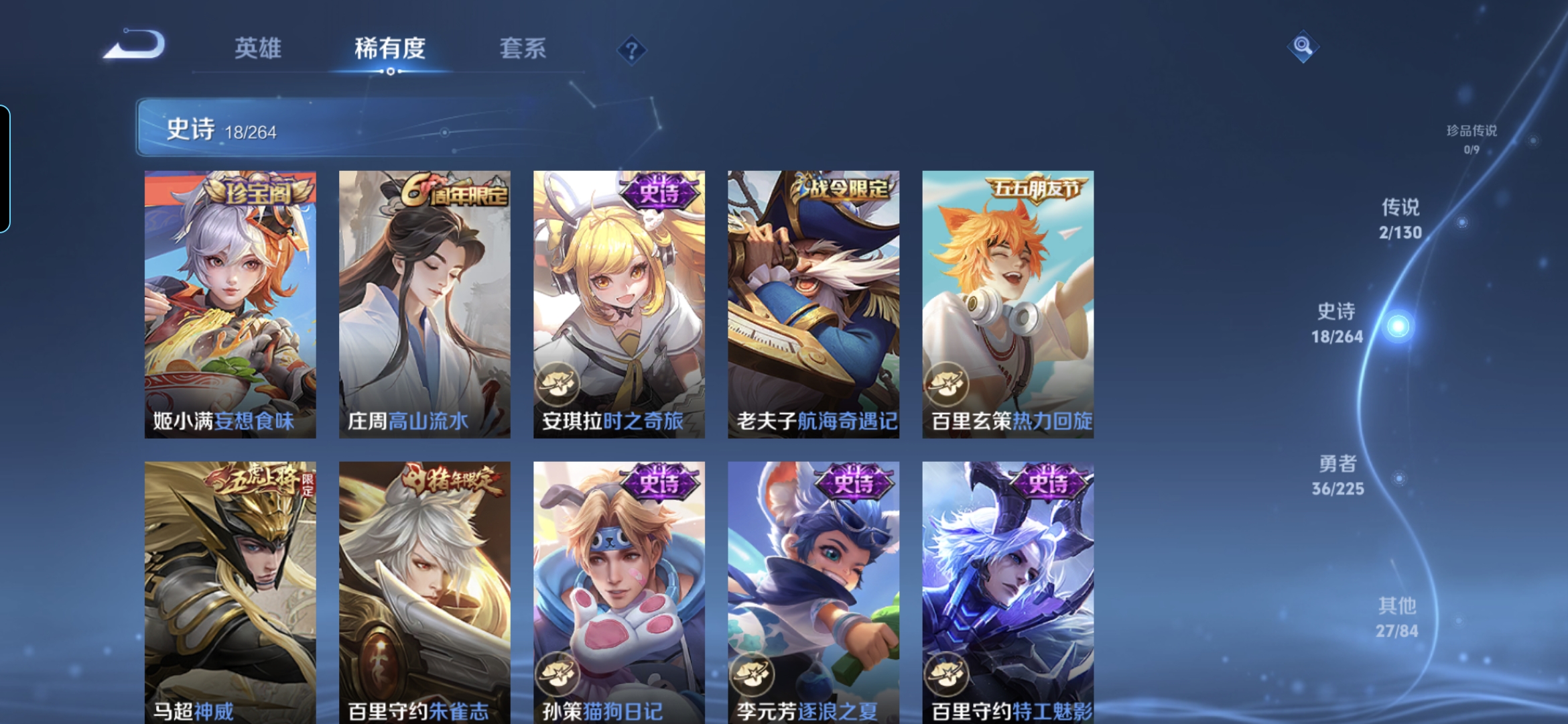 贵族等级:v6皮肤数:83生肖限定1 传说品质2 英雄数:103