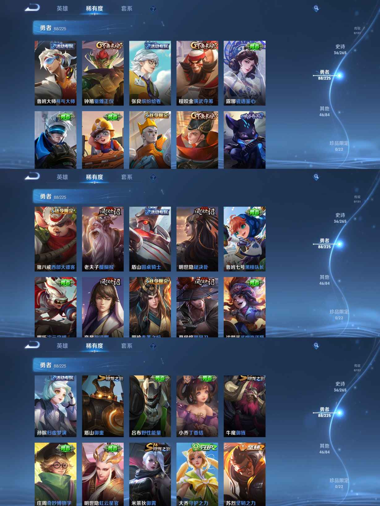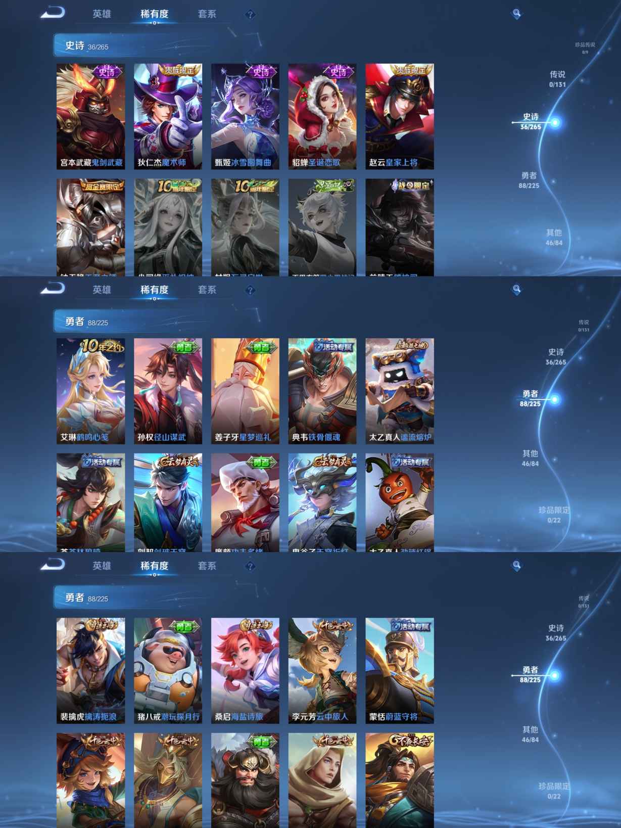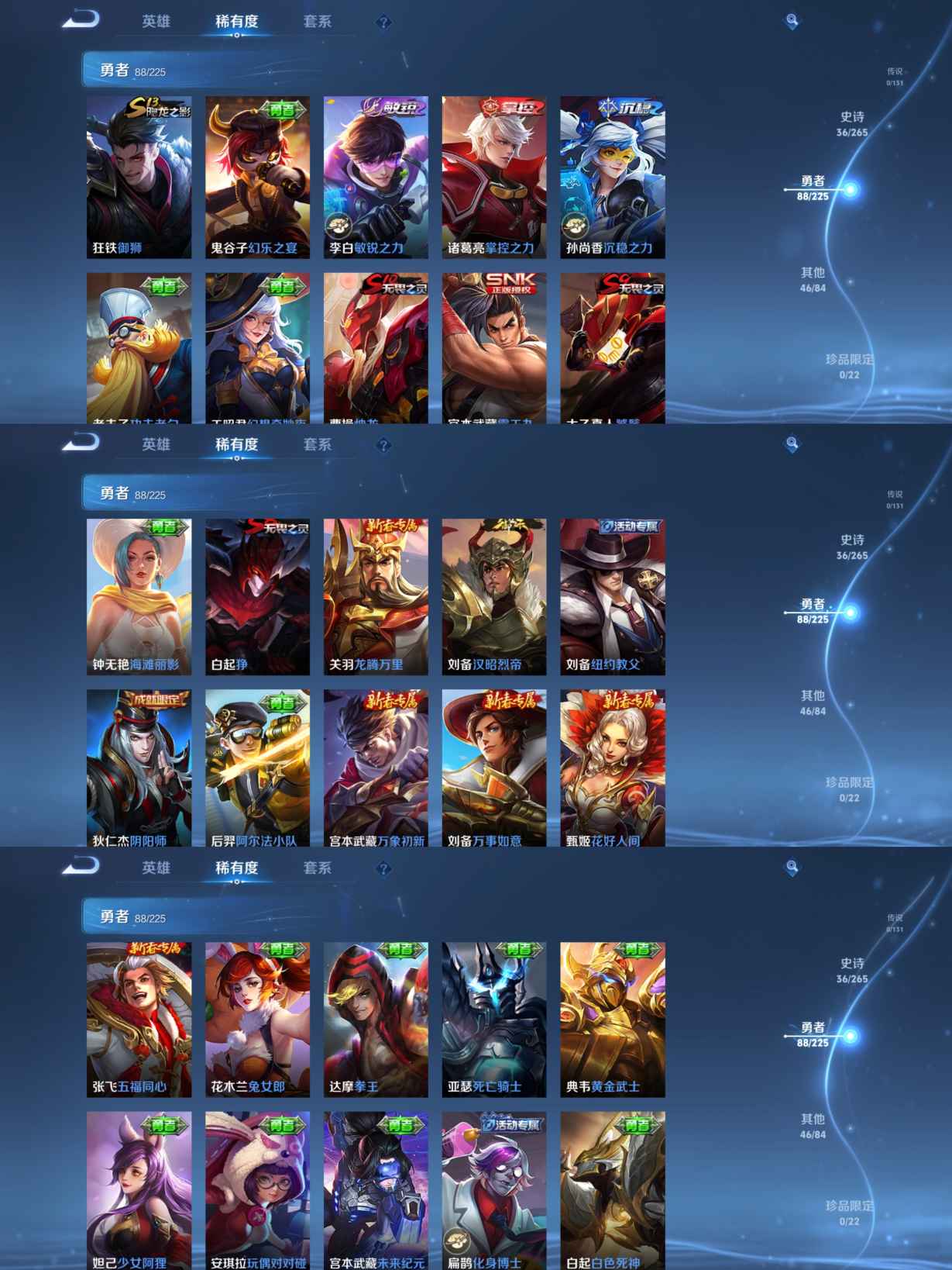 贵族等级:v6皮肤数:174情人节限定2 生肖限定1 英雄数:125