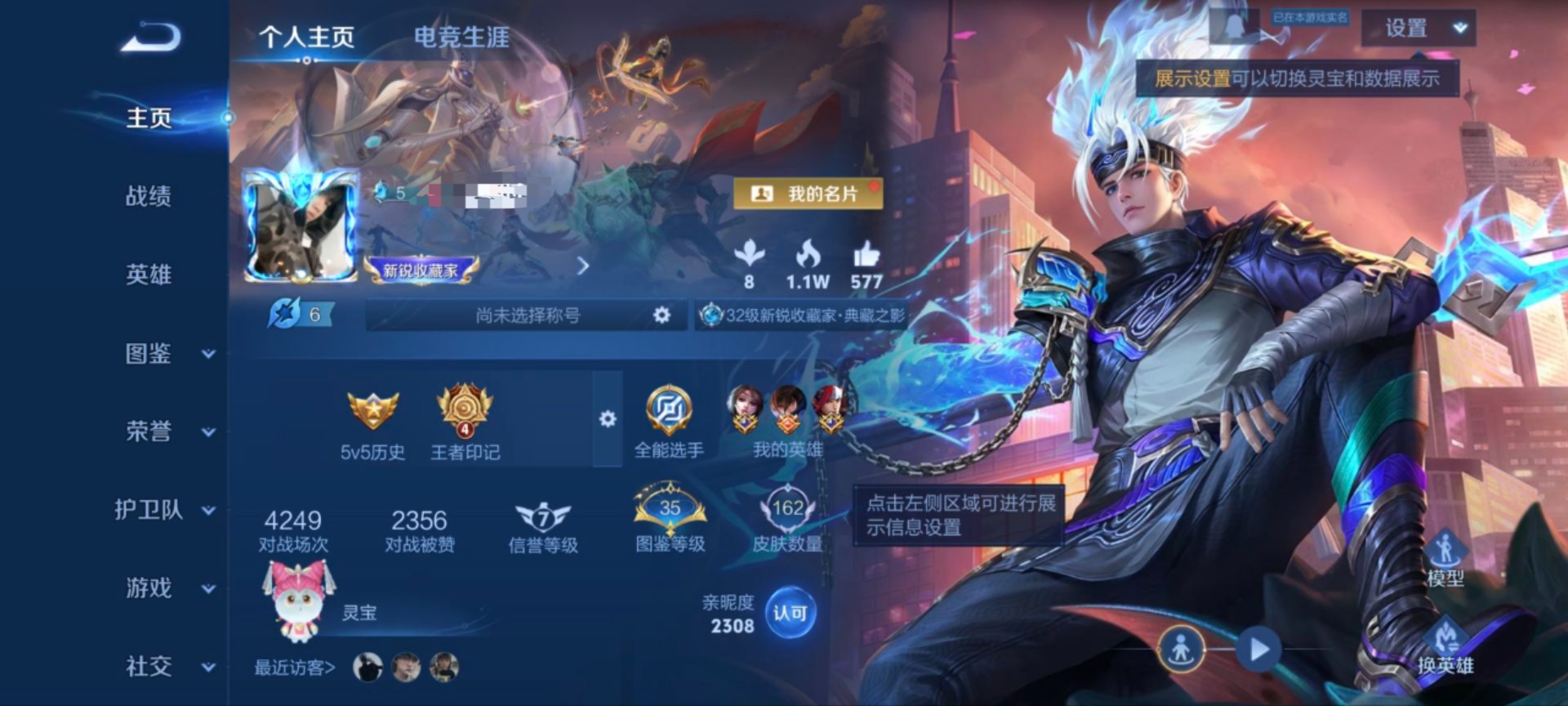 贵族等级:v6皮肤数:162传说品质4 生肖限定1 荣耀典藏1 英雄数:125