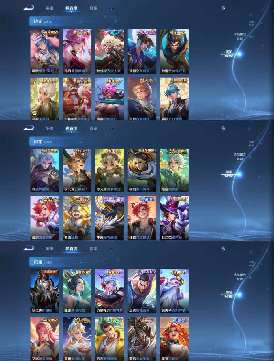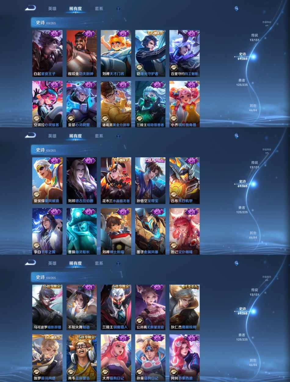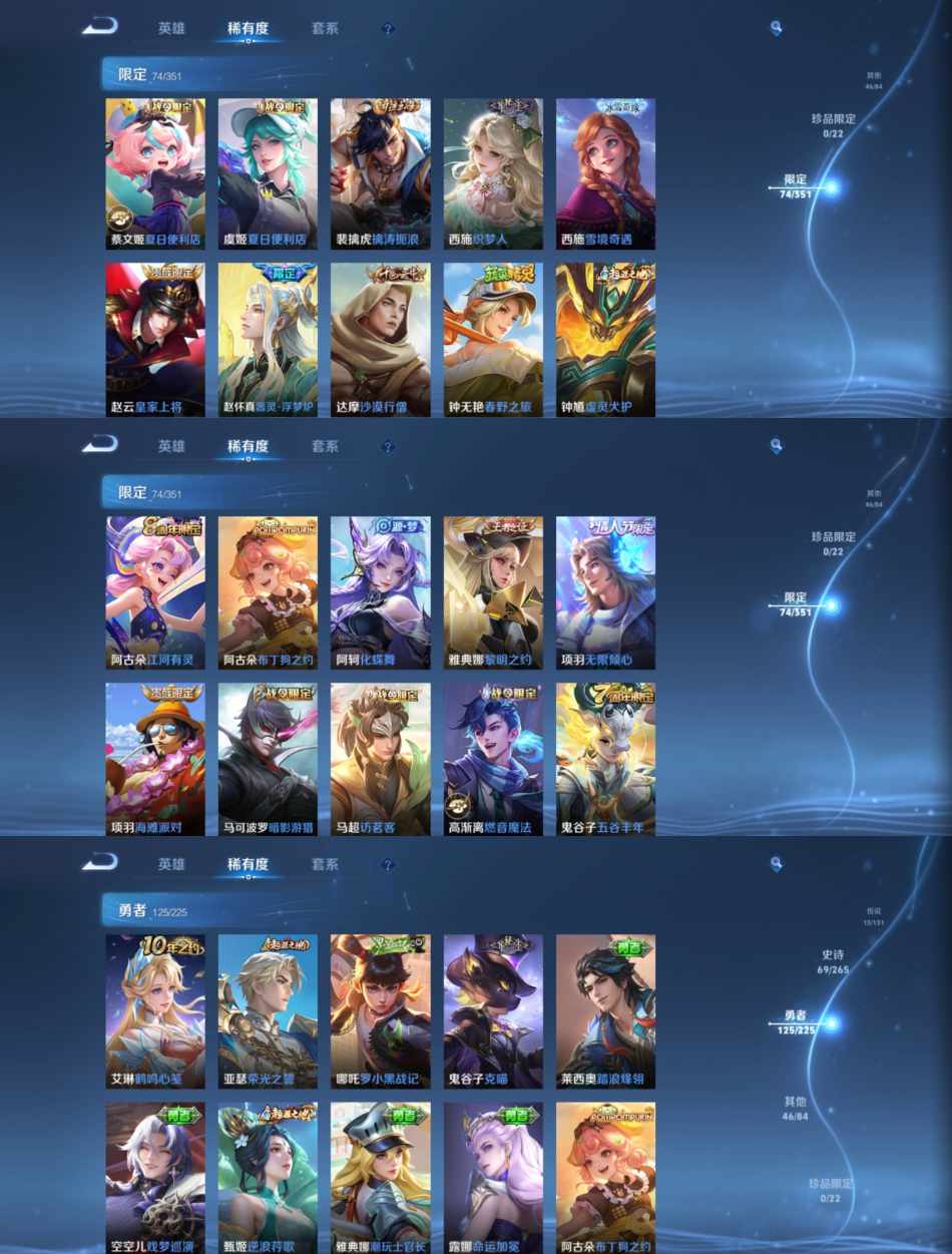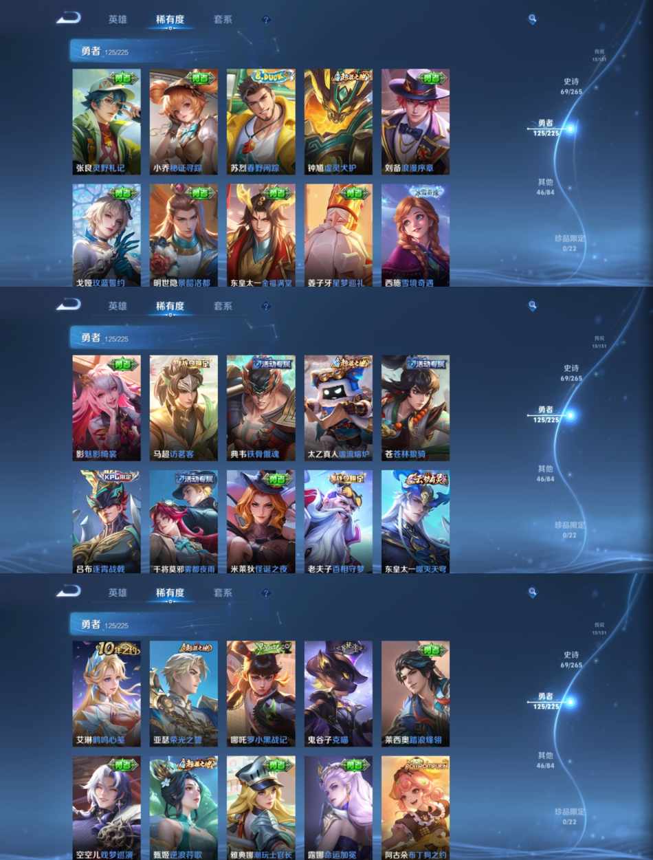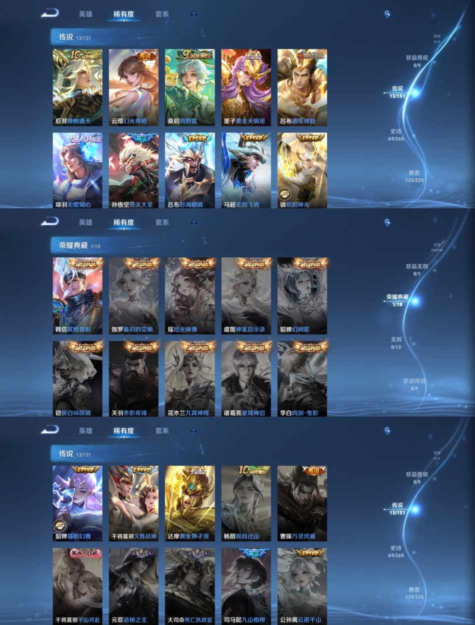 贵族等级:v7皮肤数:254传说品质13 情人节限定2 荣耀典藏1 英雄数:126