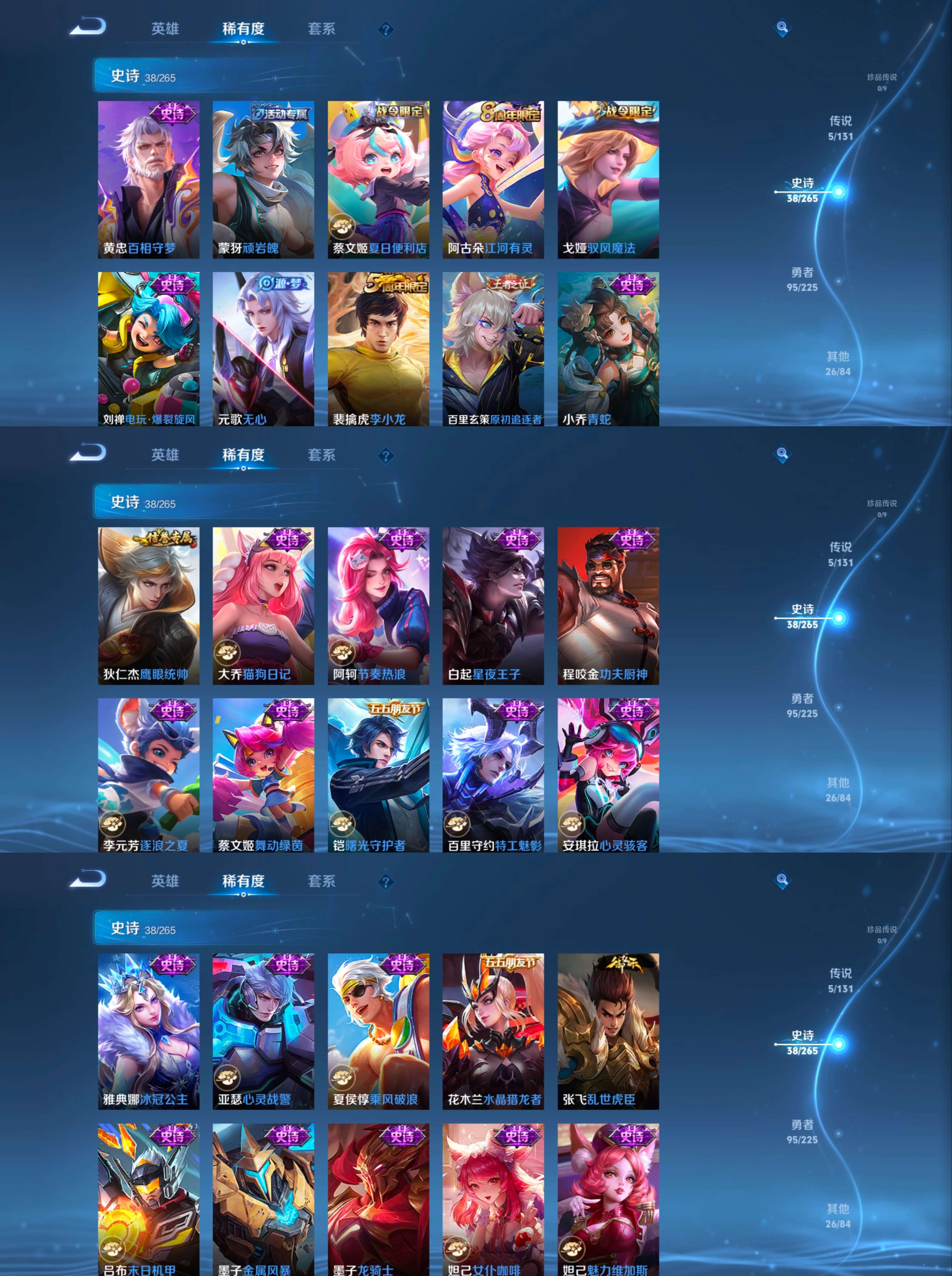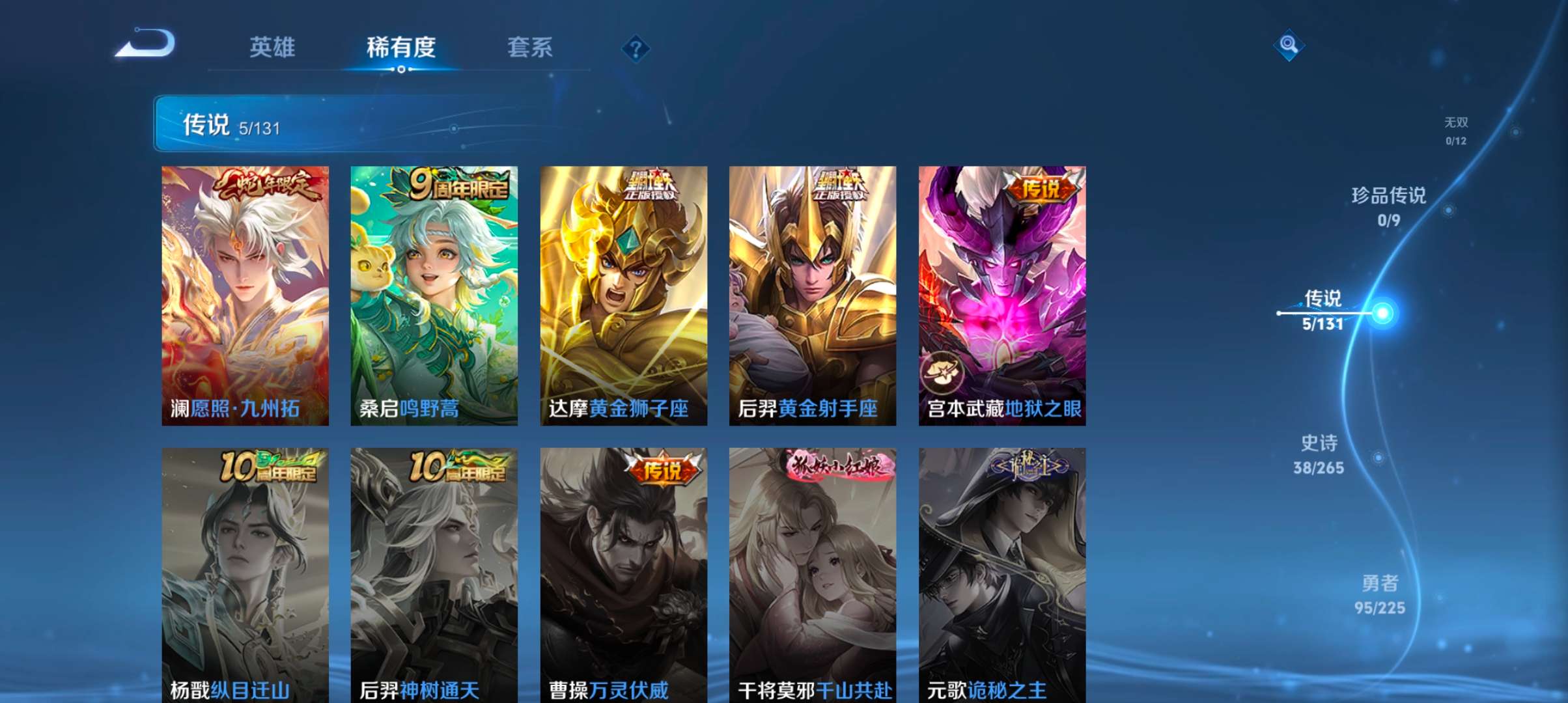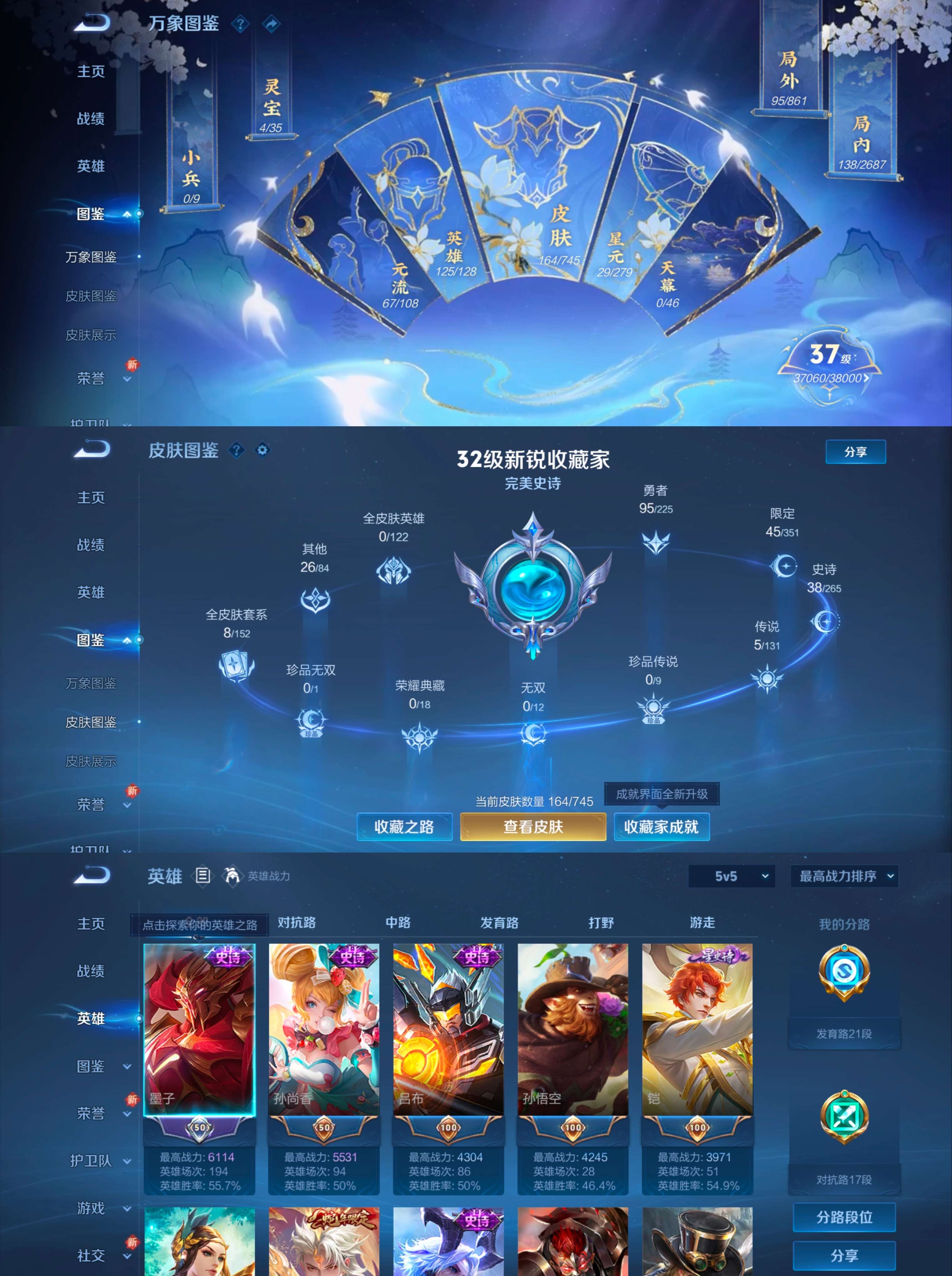 贵族等级:v5皮肤数:164传说品质5 生肖限定1 英雄数:125