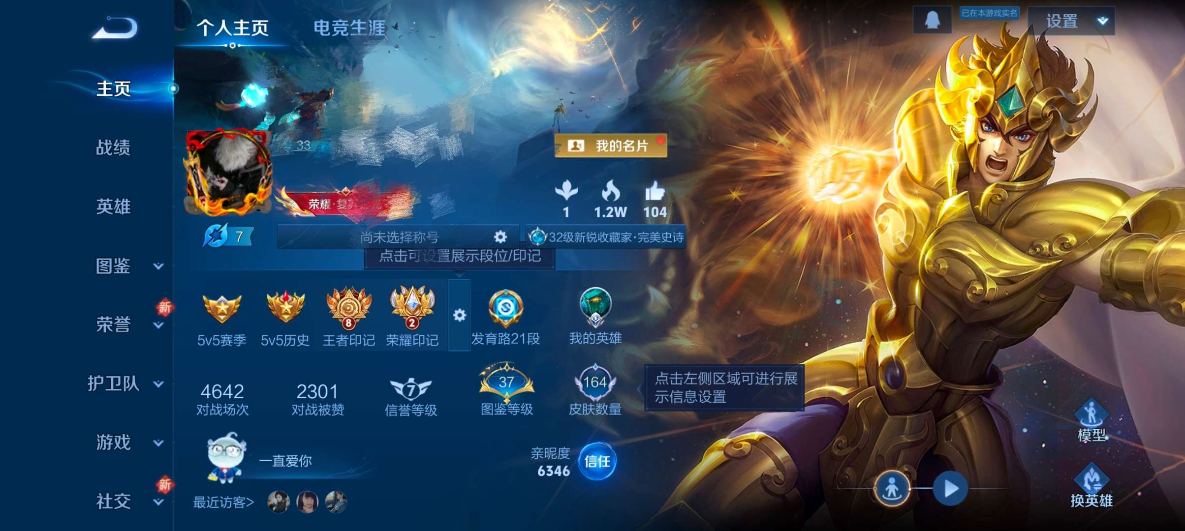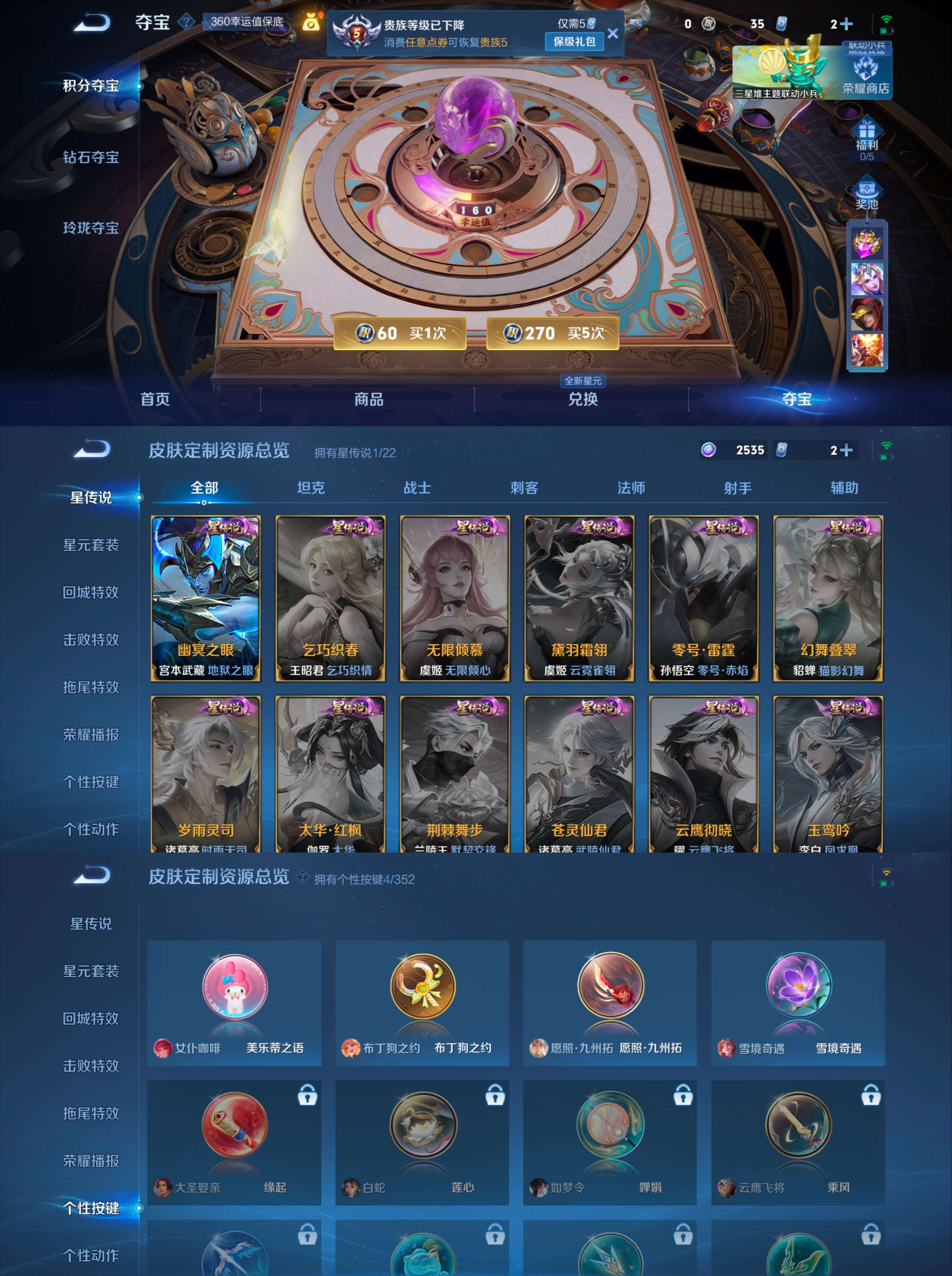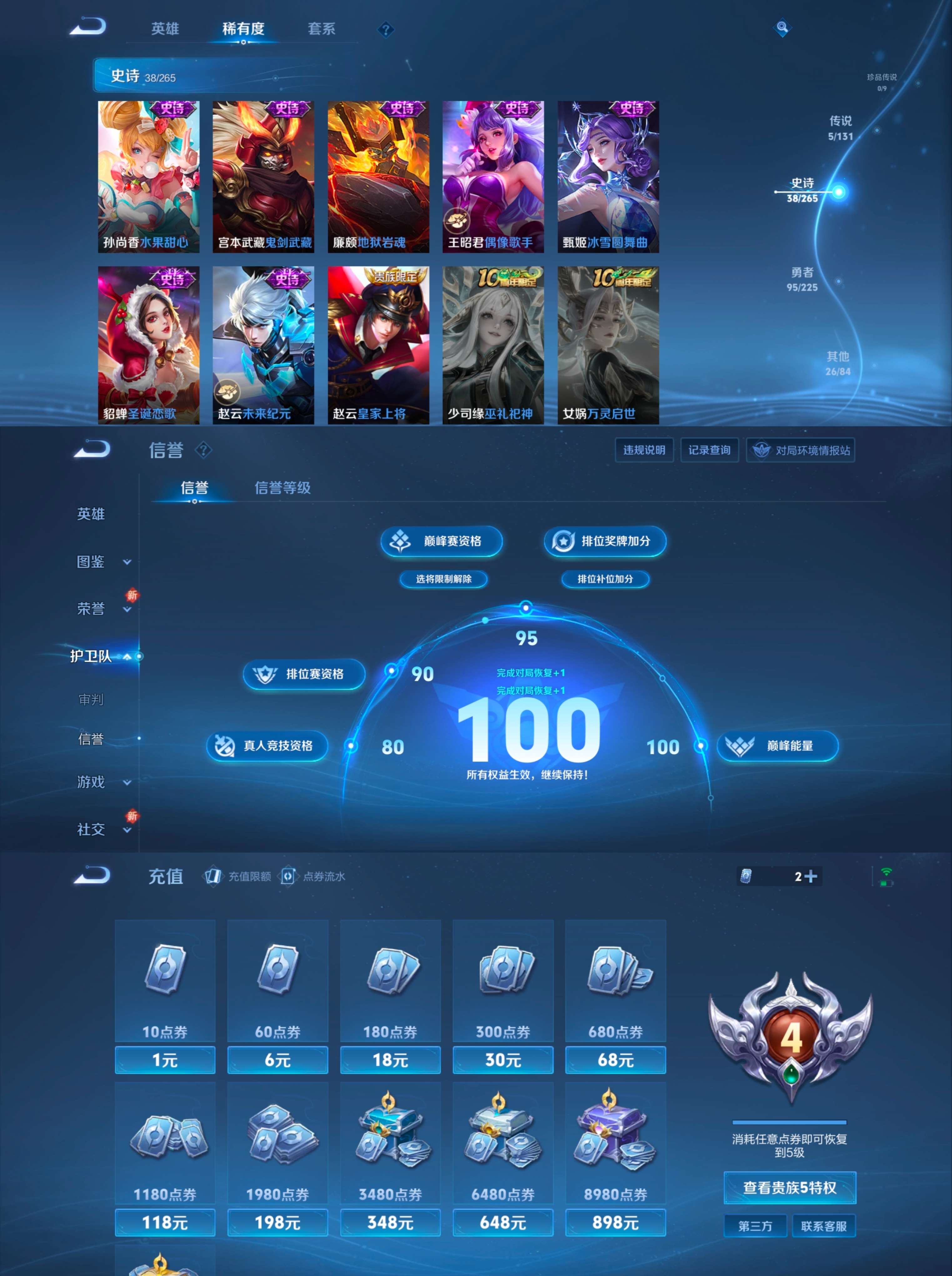 贵族等级:v5皮肤数:164传说品质5 生肖限定1 英雄数:125
