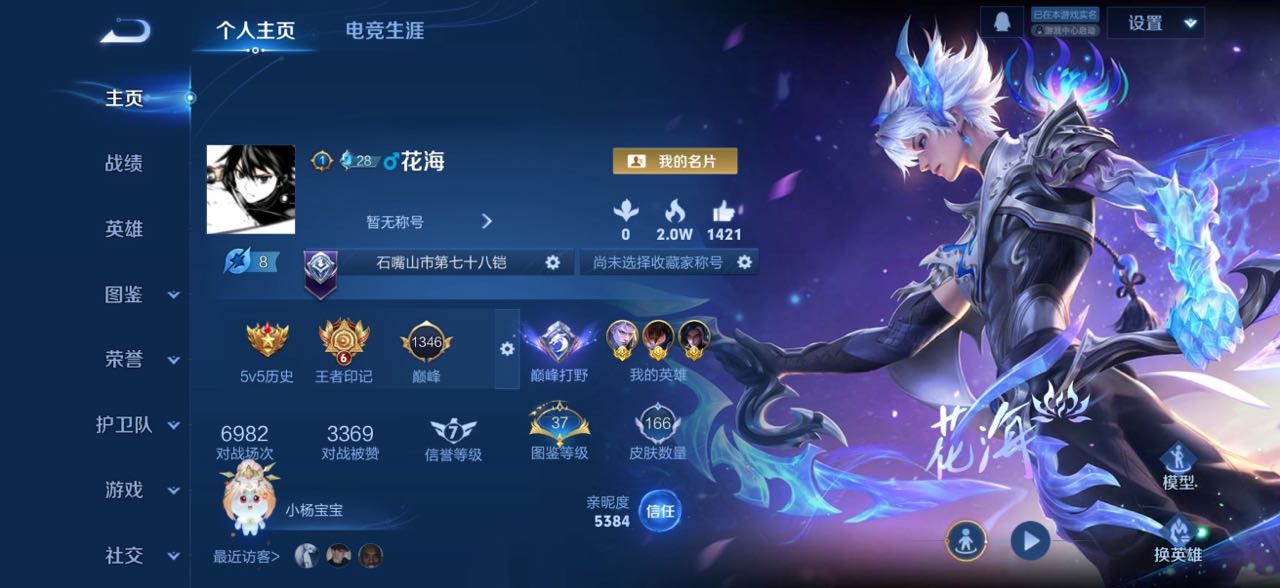 贵族等级:v6皮肤数:166传说品质6 情人节限定2 荣耀典藏1 英雄数:125