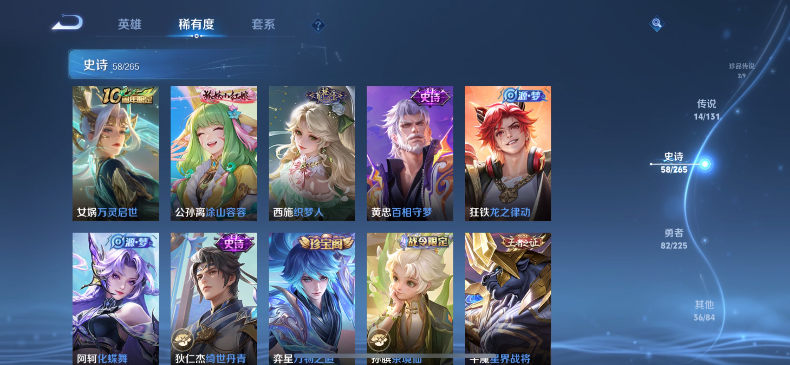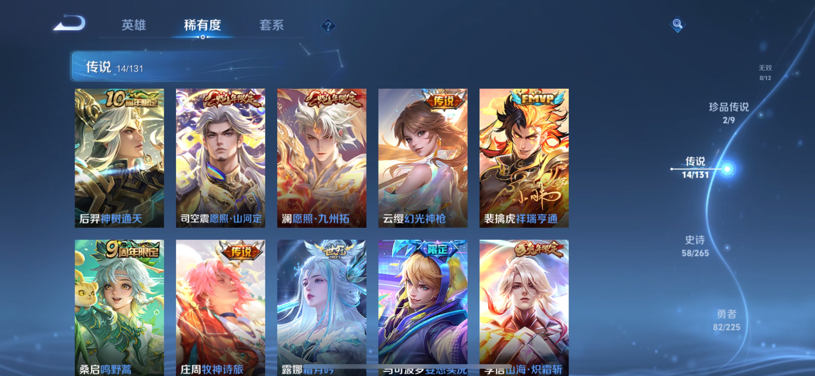 贵族等级:v7皮肤数:192传说品质14 生肖限定3 珍品传说2 英雄数:126