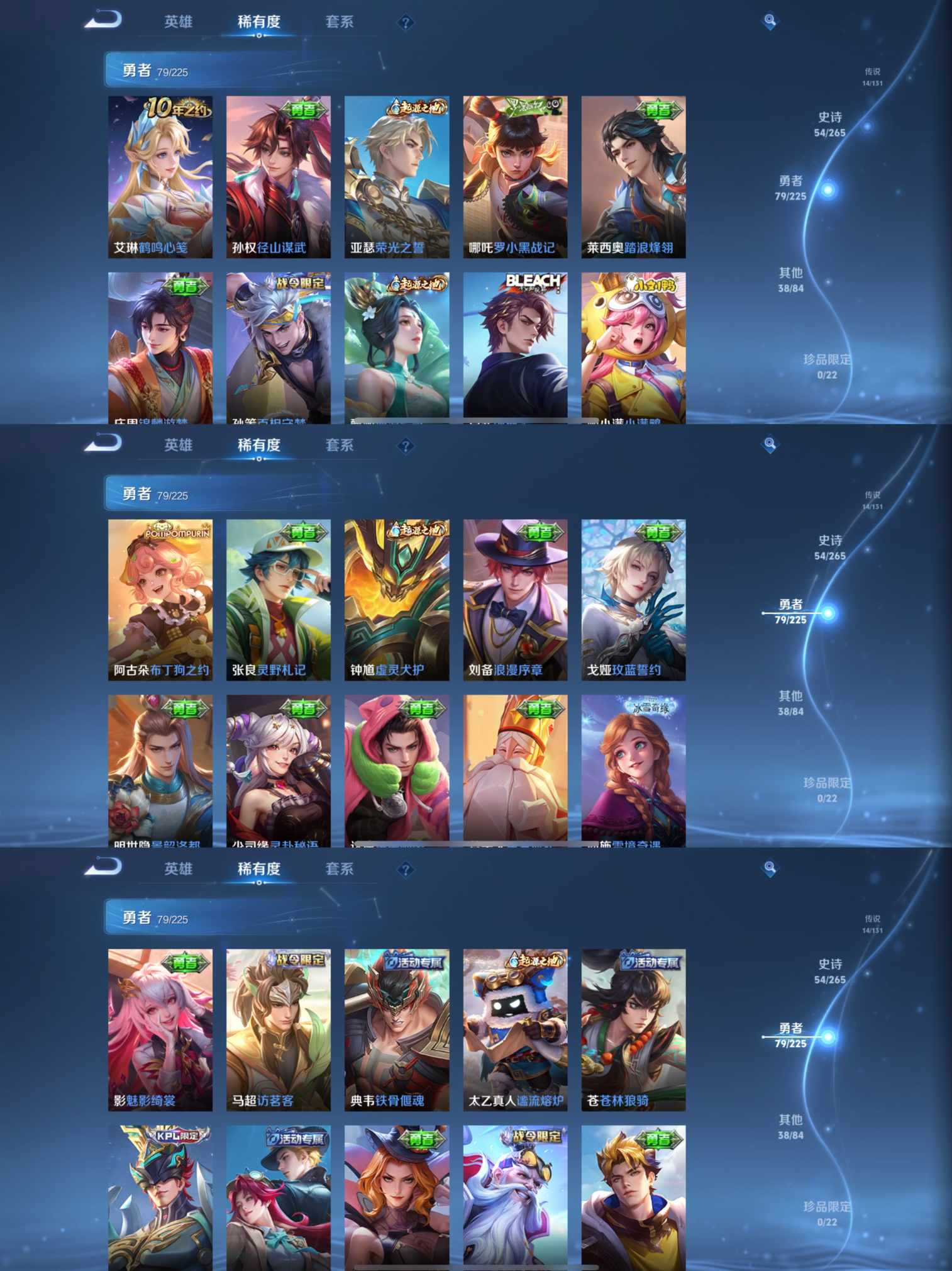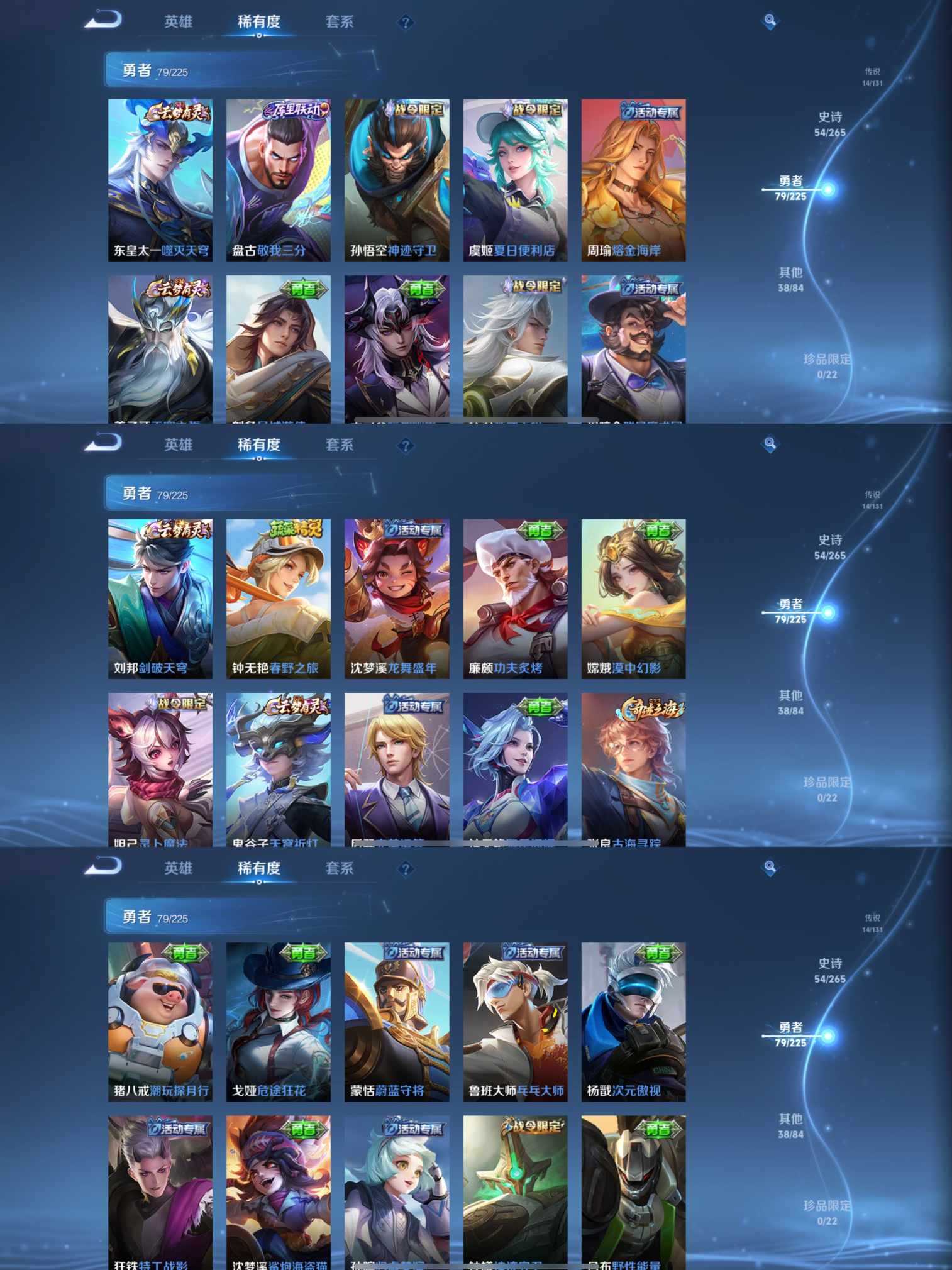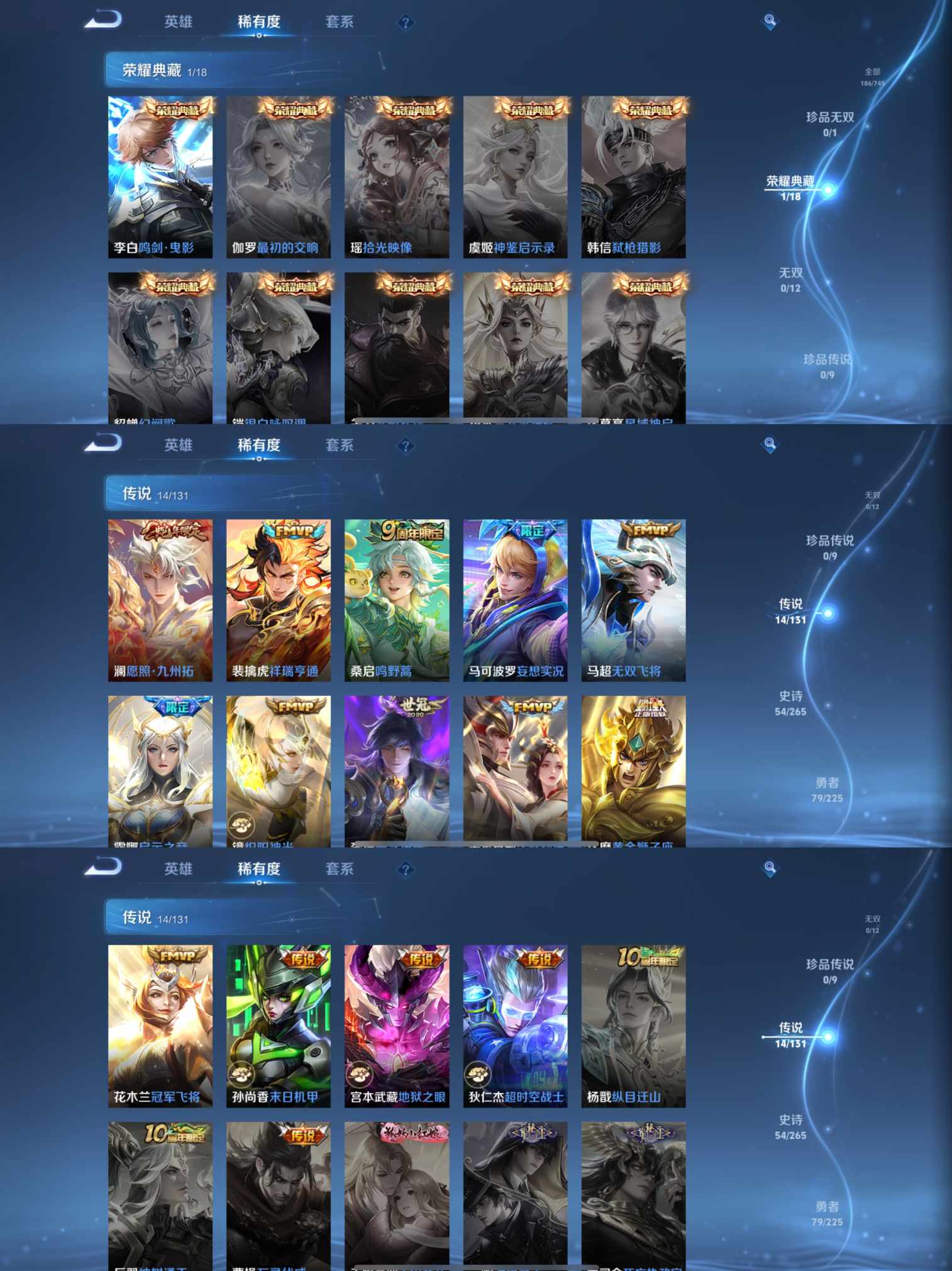 贵族等级:v7皮肤数:186传说品质14 生肖限定1 荣耀典藏1 英雄数:126